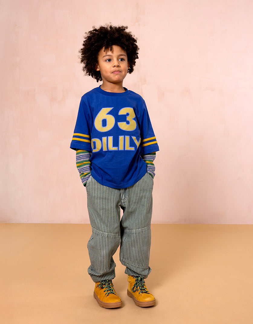 Het lijken twee lagen, maar eigenlijk draag je er maar eentje in dit sportieve lange mouwen shirt met vrolijke kleuren.