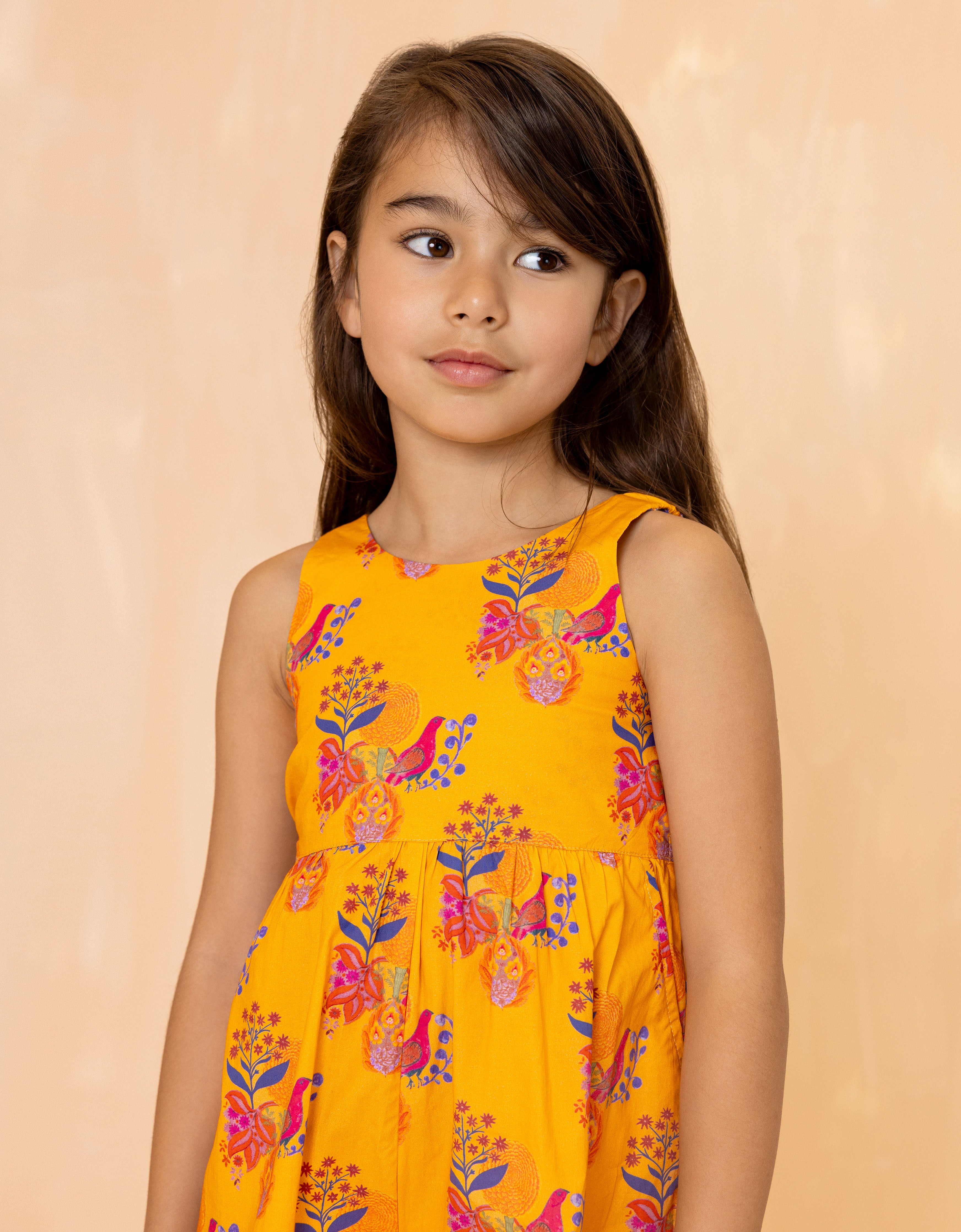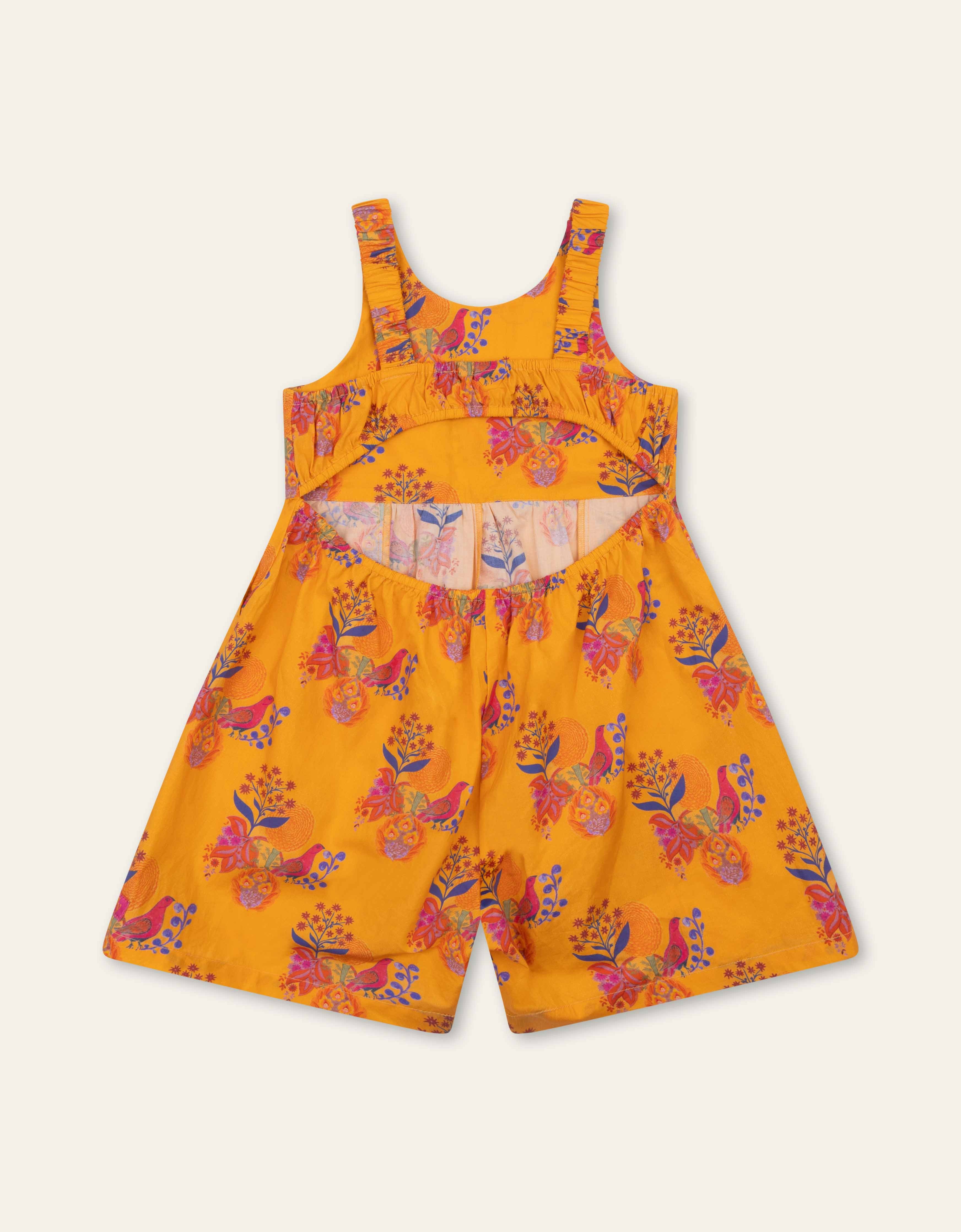 Deze playsuit is versierd met de Marigold Majesty print, geïnspireerd op de geluksbloem uit India. Met een open rug voor een luchtige, zomerse look.