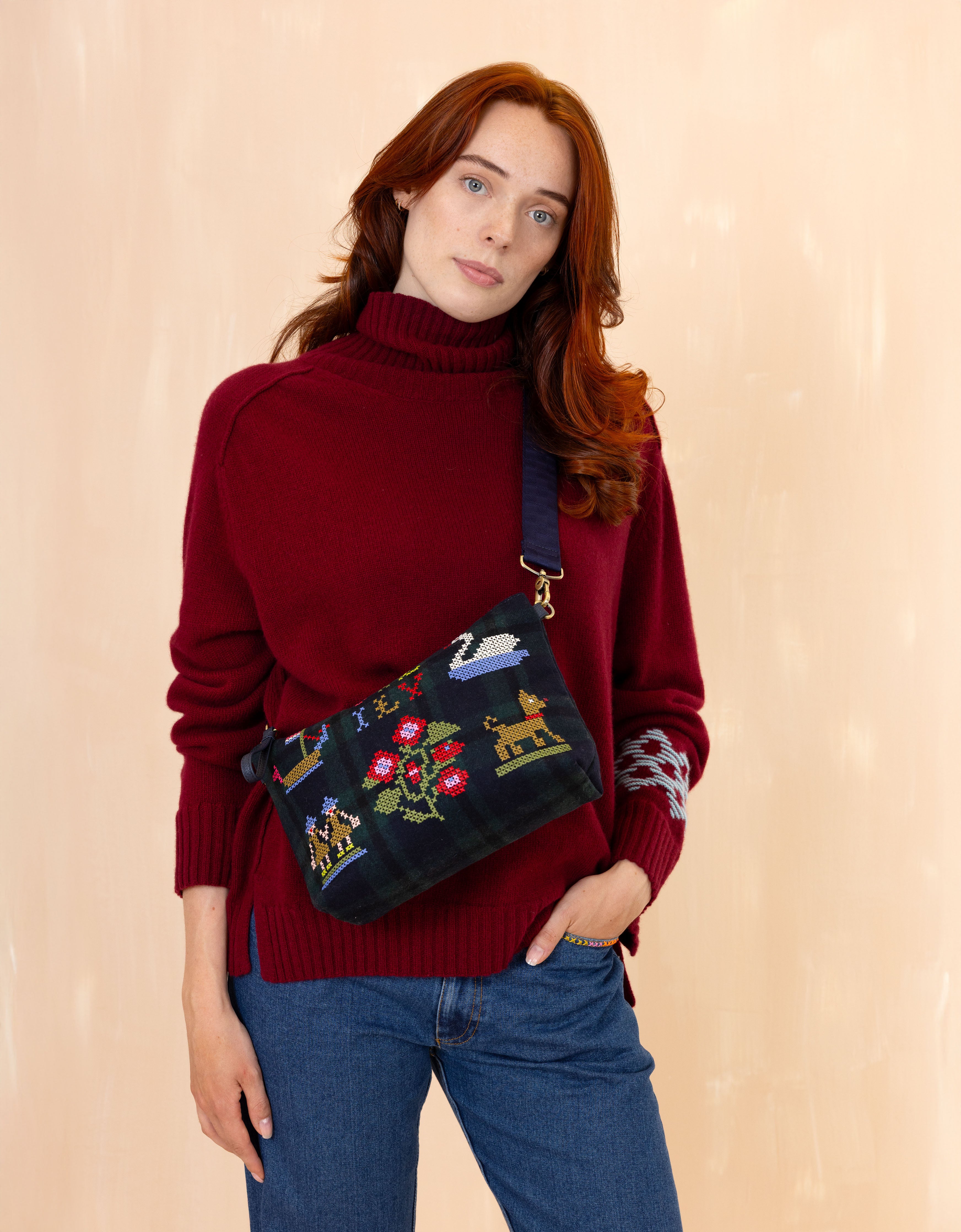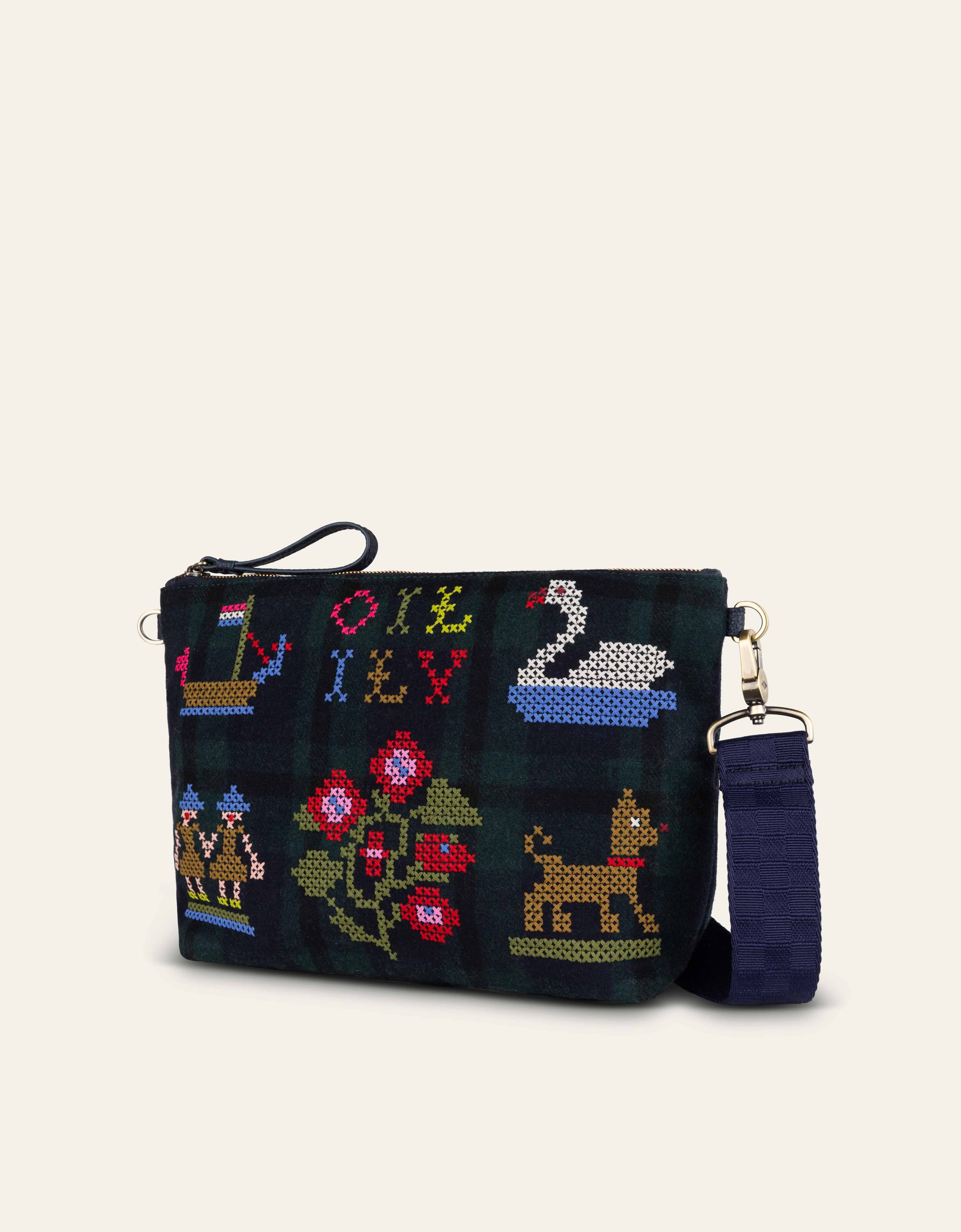 Op een antiekmarkt vonden we een merklap, een lap stof bedekt met visueel borduurwerk. Geïnspireerd door dit handwerk ontwierpen we de kleurrijke details van de Millie crossbody.