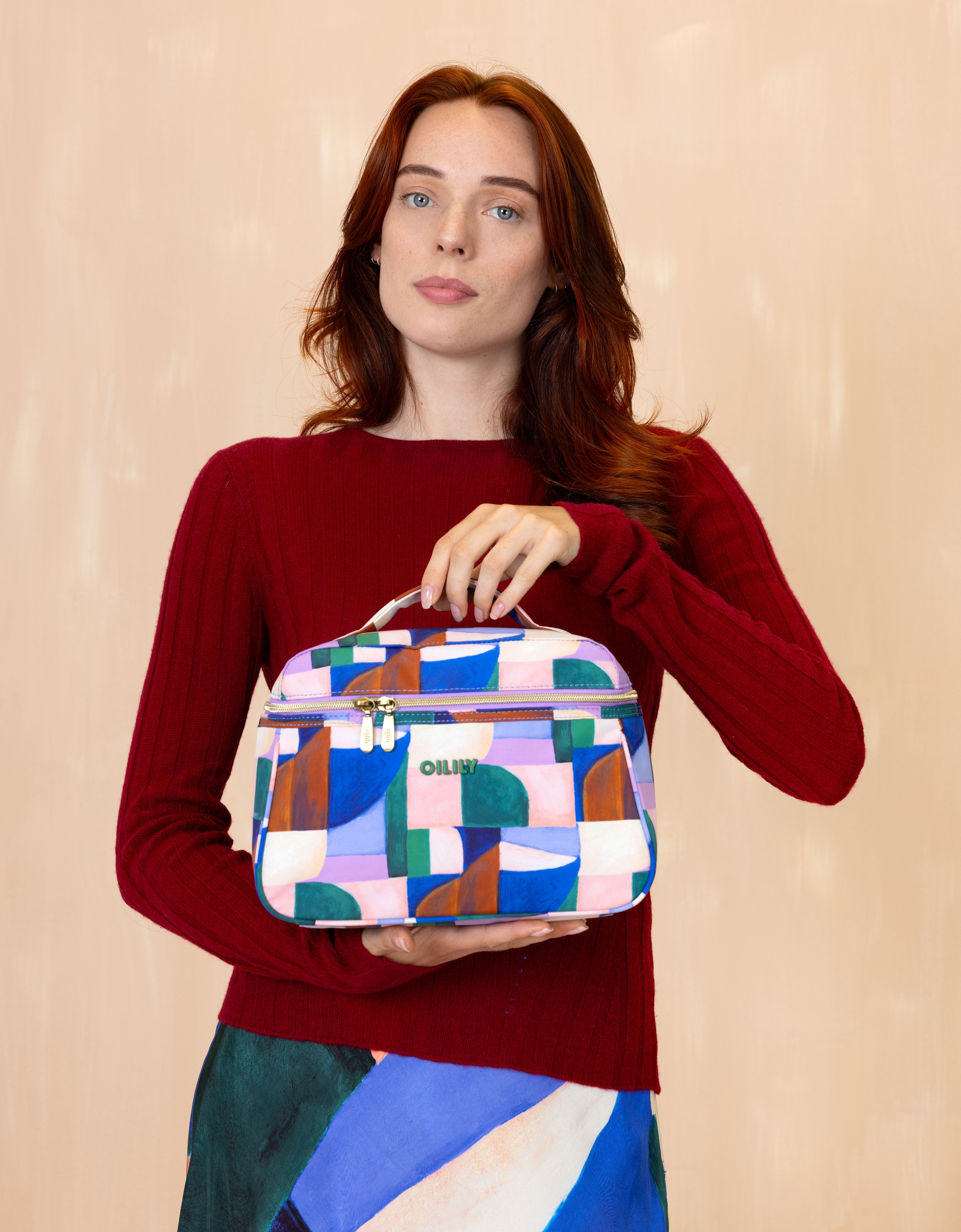 De Cocos Beauty Case in Highland Hues print is ruim, overzichtelijk en gemaakt om al je beauty-essentials stijlvol mee te nemen. Het stevige handvat bovenop maakt haar makkelijk draagbaar, terwijl het hoofdvak met rits slim is ingedeeld zodat alles netjes op zijn plek blijft.
