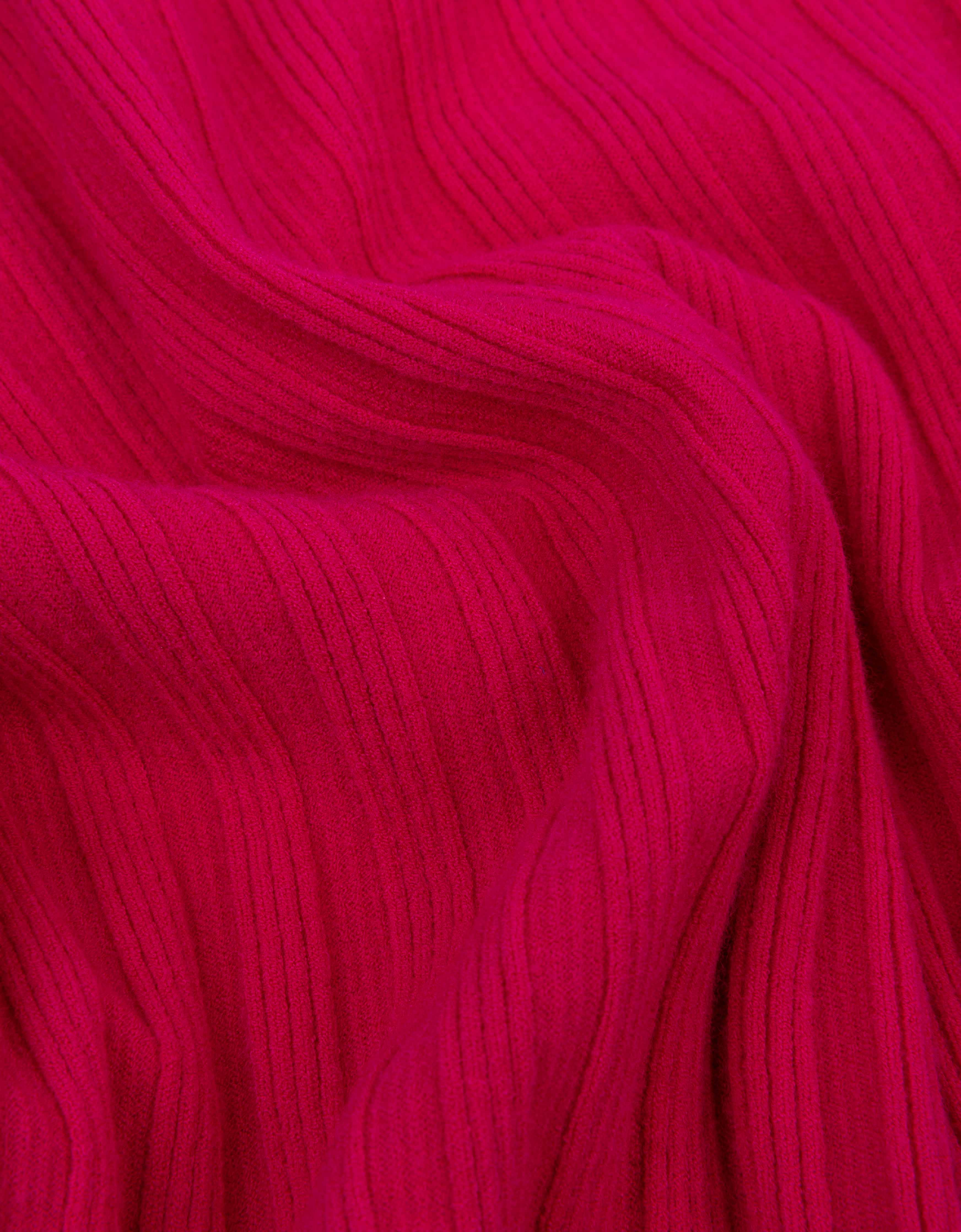 Slim fit truitje van stretchy Ecovero met elastan, perfect als layering piece maar ook mooi op zichzelf. De mouwen zijn omgeslagen met handstitch, zodat je de steekjes kunt loshalen. Delicaat ribstructuur geeft een subtiele textuur en een elegante uitstraling.