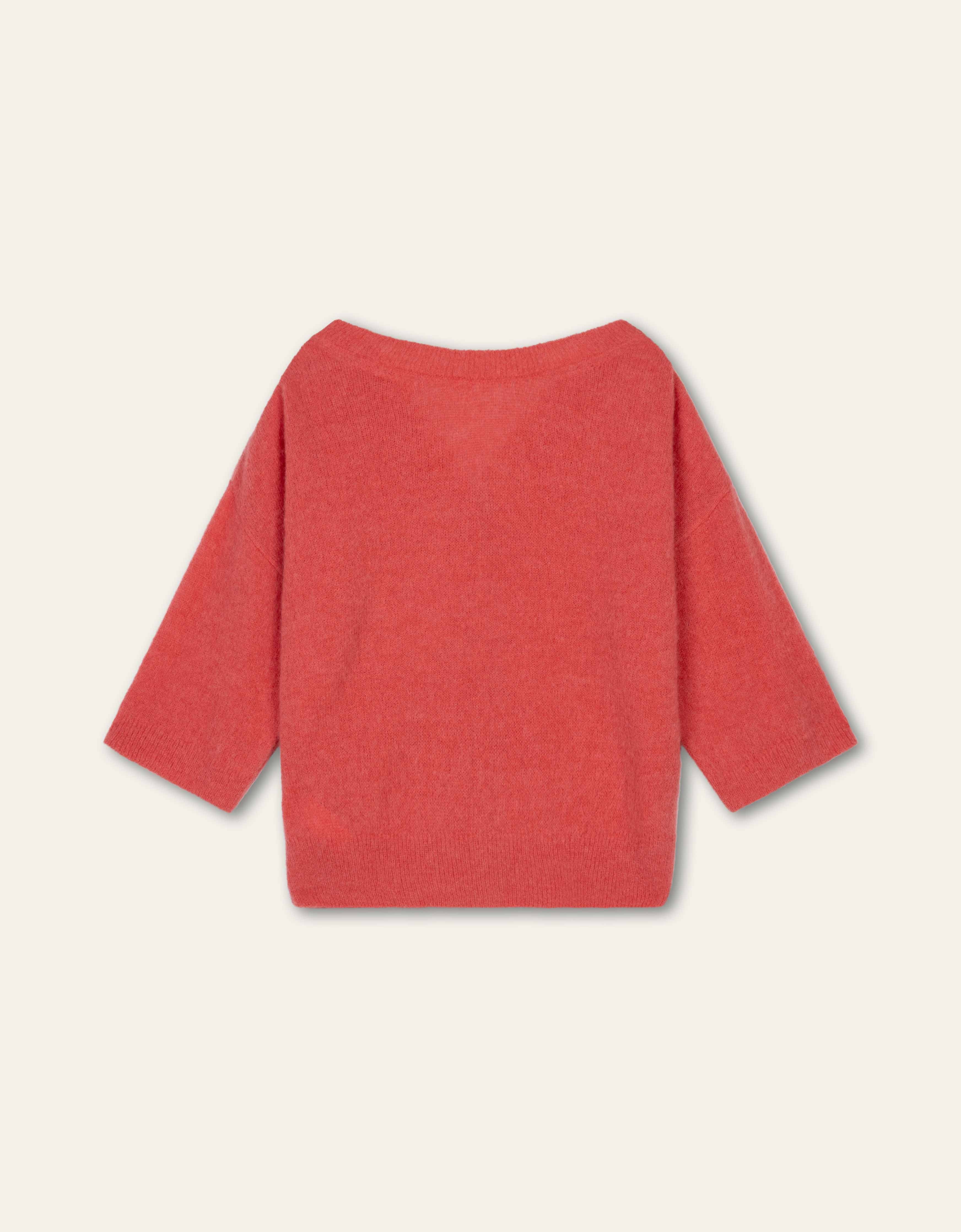 Deze knit kan op twee manieren gedragen worden dankzij de stoffen knoopjes langs de necktrim. De bovenste twee knoopjes zijn decoratief voor een subtiel stijlaccent. Met 5/6-mouwen, drop shoulder en een klein kleurcontrast op de schouder voor een speelse touch. Gemaakt van een luxe mix.