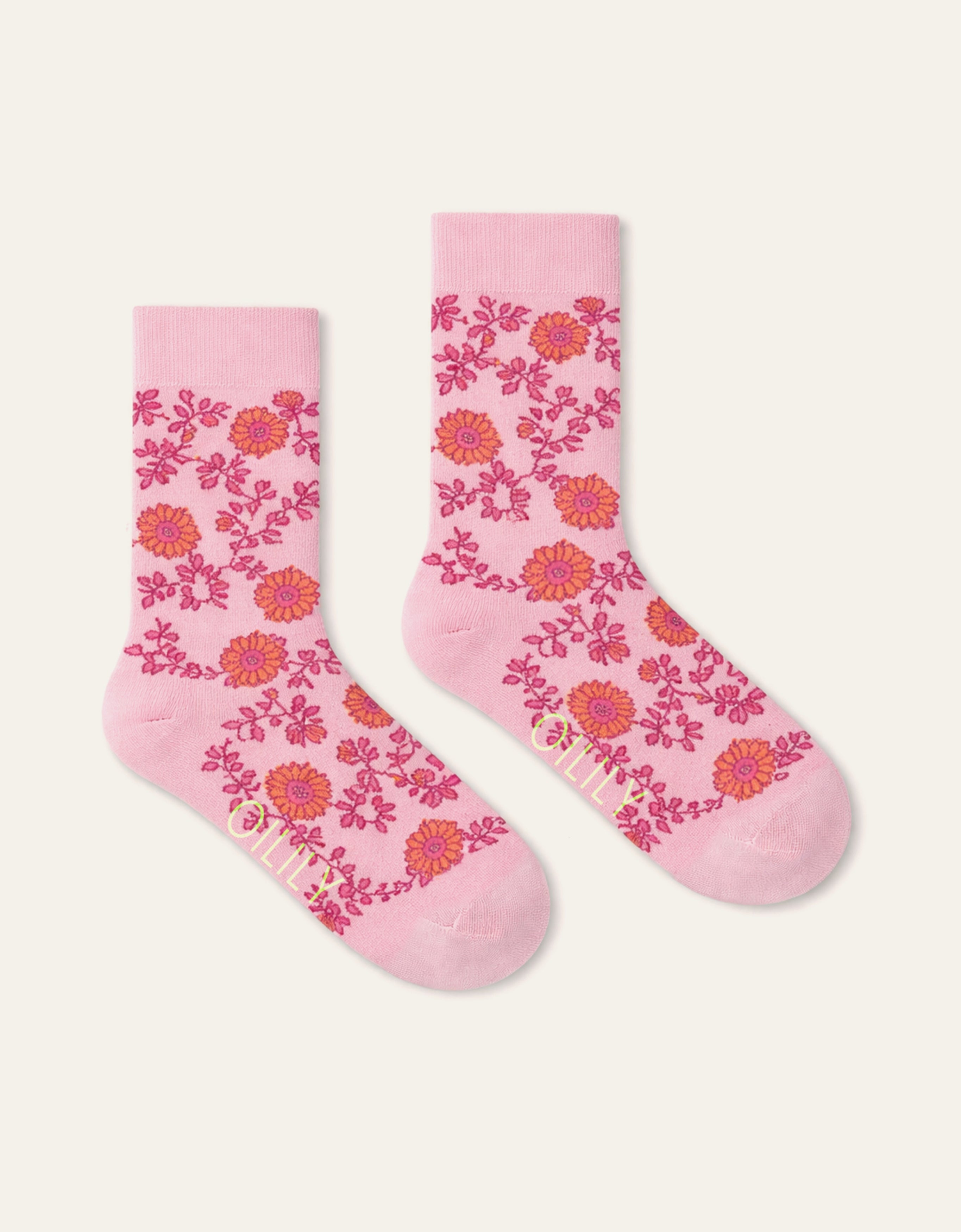 Sokken met een subtiele glans dankzij de viscose. Versierd met een speelse print van bloemetjes en een pauw – perfect om elke outfit een kleurrijk accent te geven.