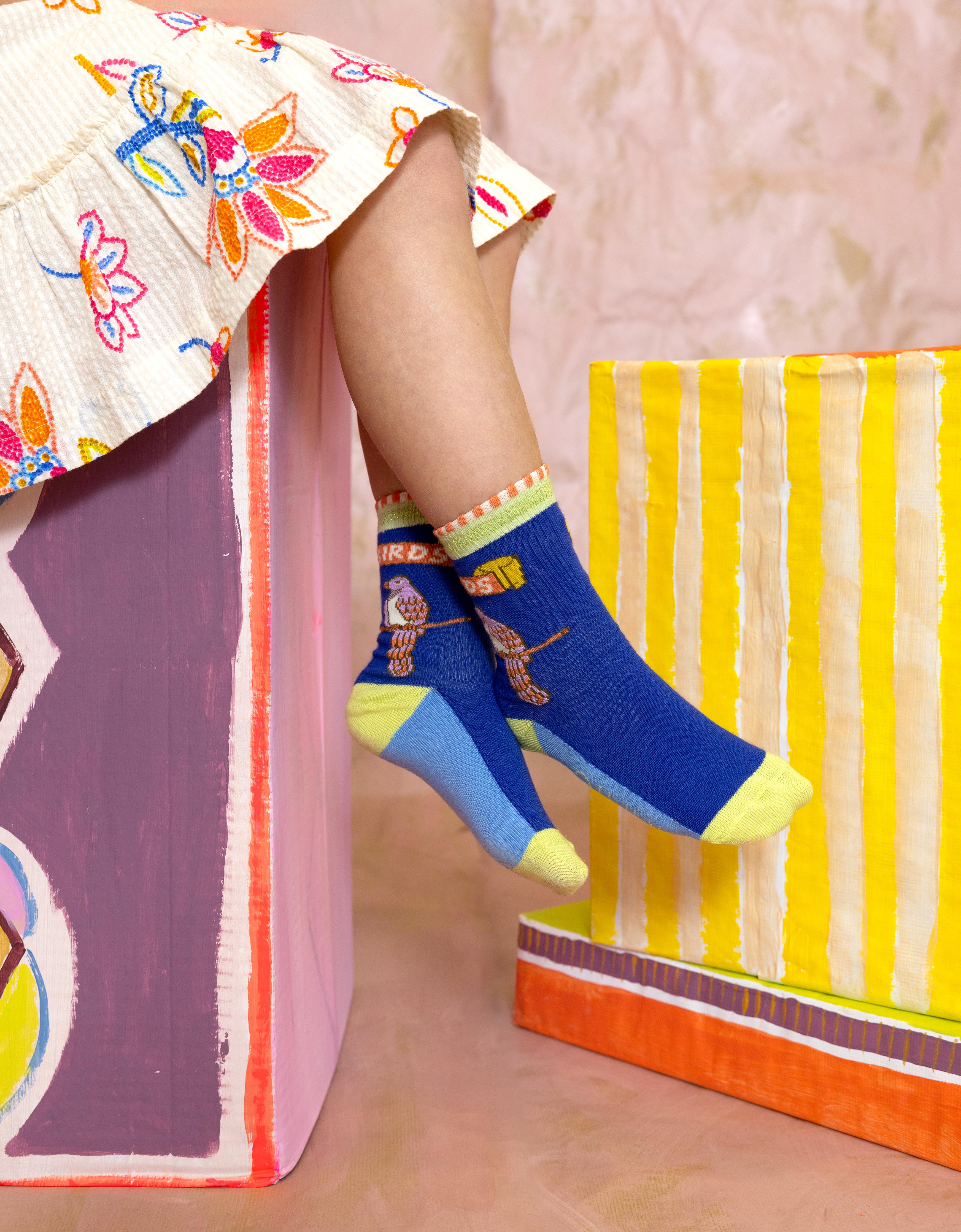 Deze meisjessokken zijn versierd met vrolijke vogels uit onze Flaming Symbols print.
