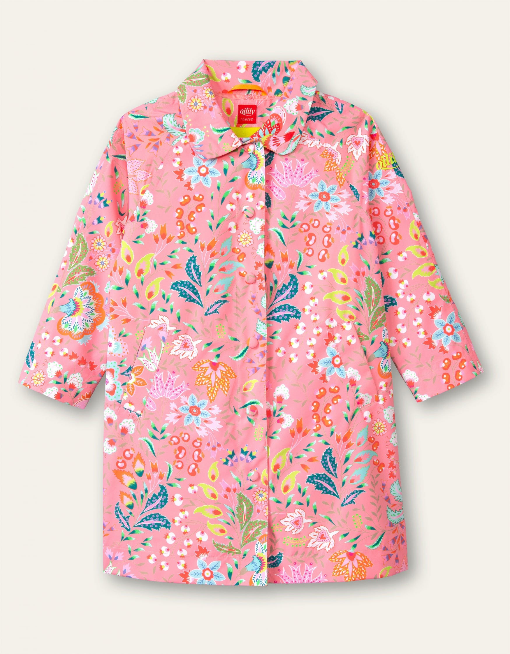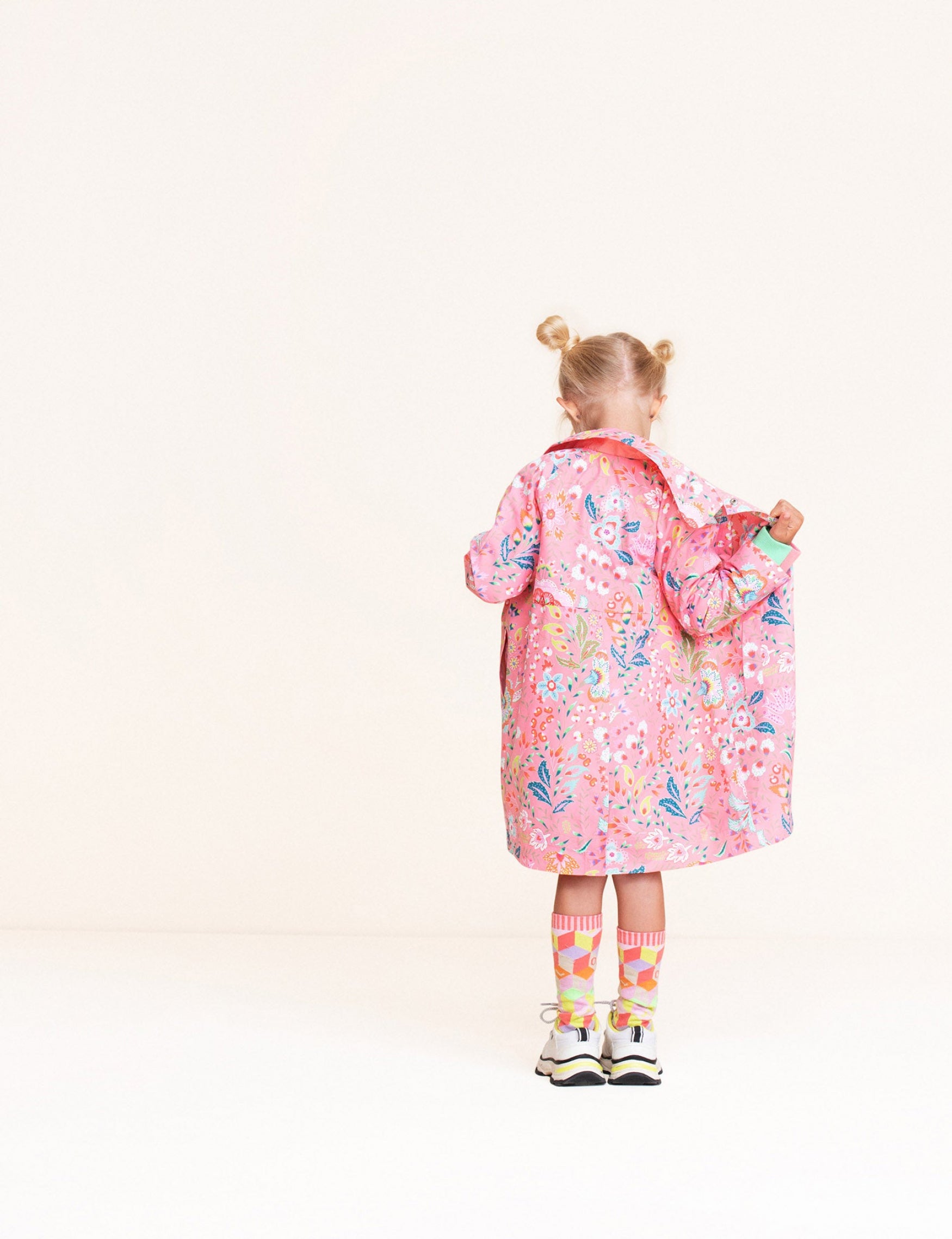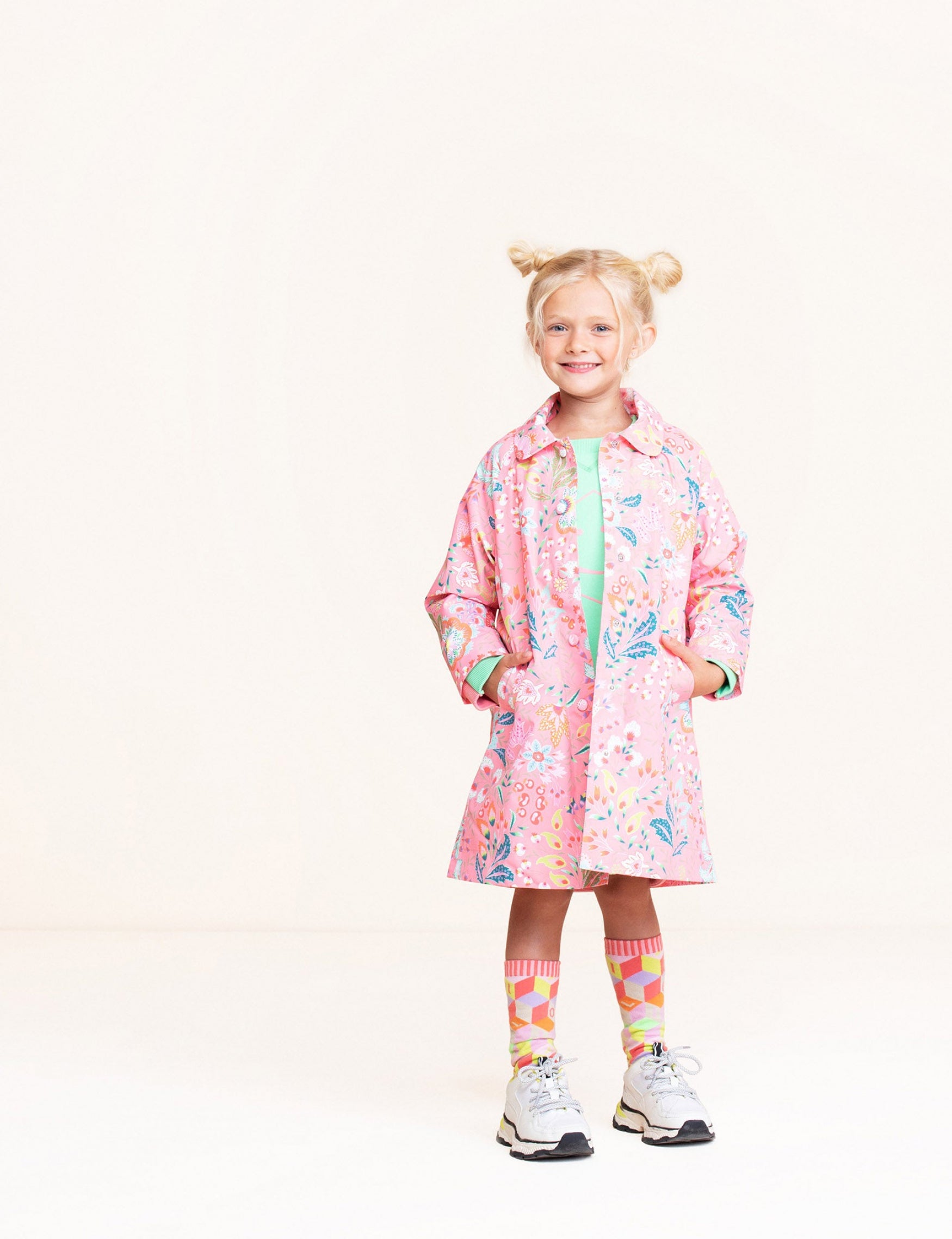 Kleine Lady, was schwebt dir vor? Du willst doch bestimmt in deinem Lieblingsmantel draußen spielen. Bedruckt mit wunderschönen großen Blumen auf einem freundlichen Pink und mit dazu passenden Knöpfen – dieser Mantel ist einfach bezaubernd. Kremple die Ärmel hoch, damit etwas von dem zarten Rosa auf der Innenseite zu sehen ist, oder trage ihn offen, damit das Limettengrün zum Vorschein kommt.