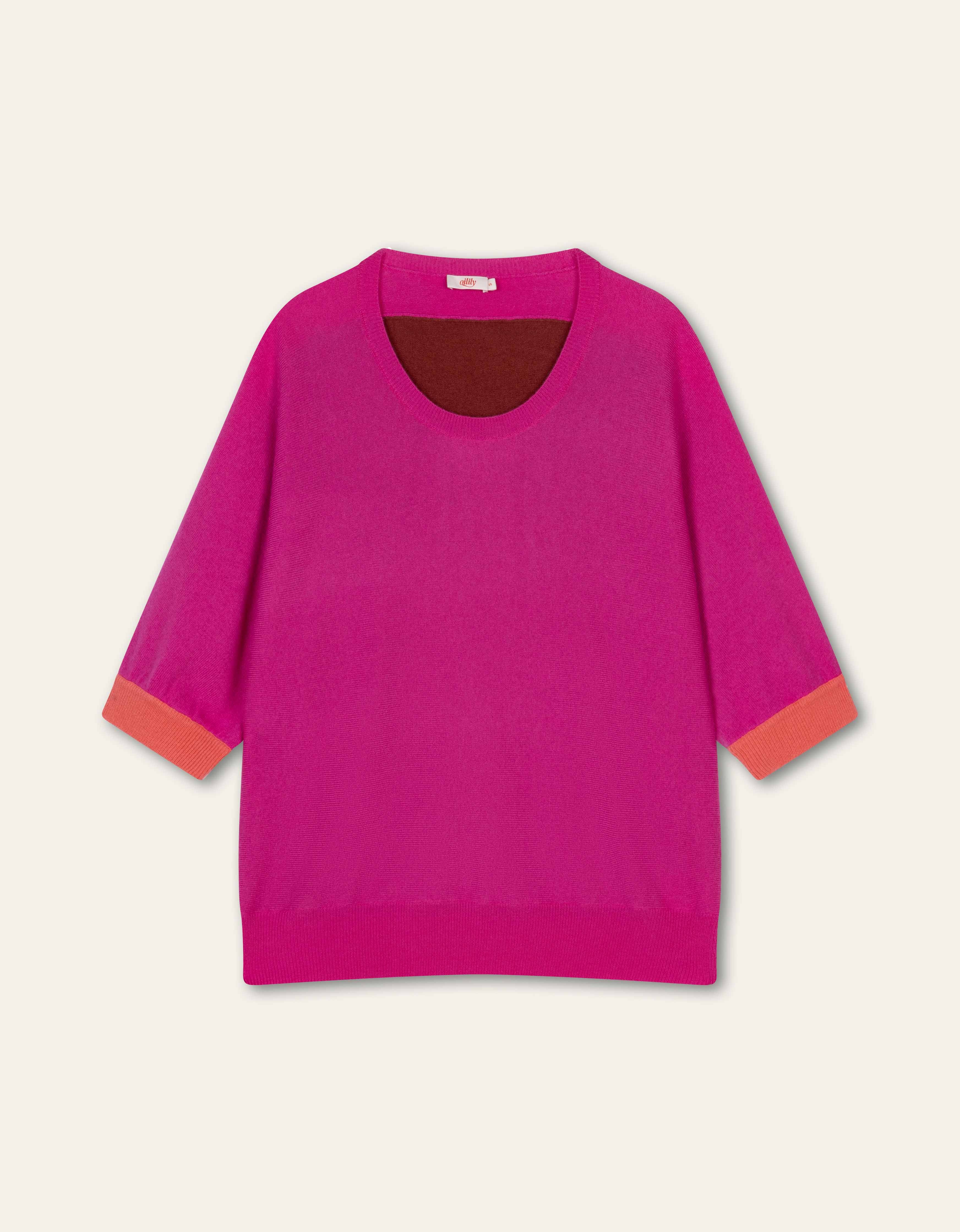 Lässiges Oberteil aus luxuriöser Wollmischung, mit Volumen am Rücken und einem Colourblock mit kontrastierendem Saum. Die Ärmel reichen bis knapp über den Ellbogen und können auf verschiedene Arten getragen werden, um einen verspielten Effekt zu erzielen.