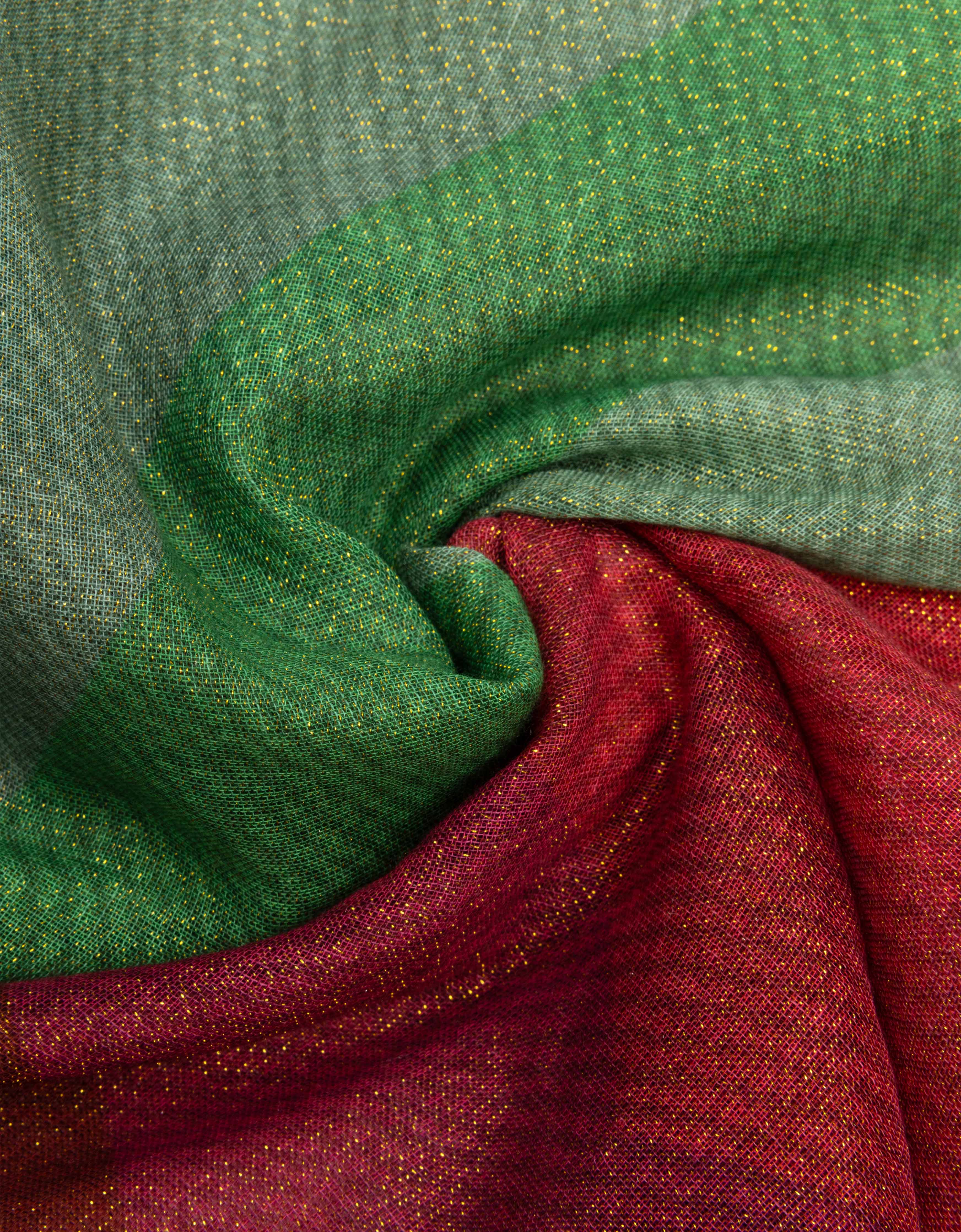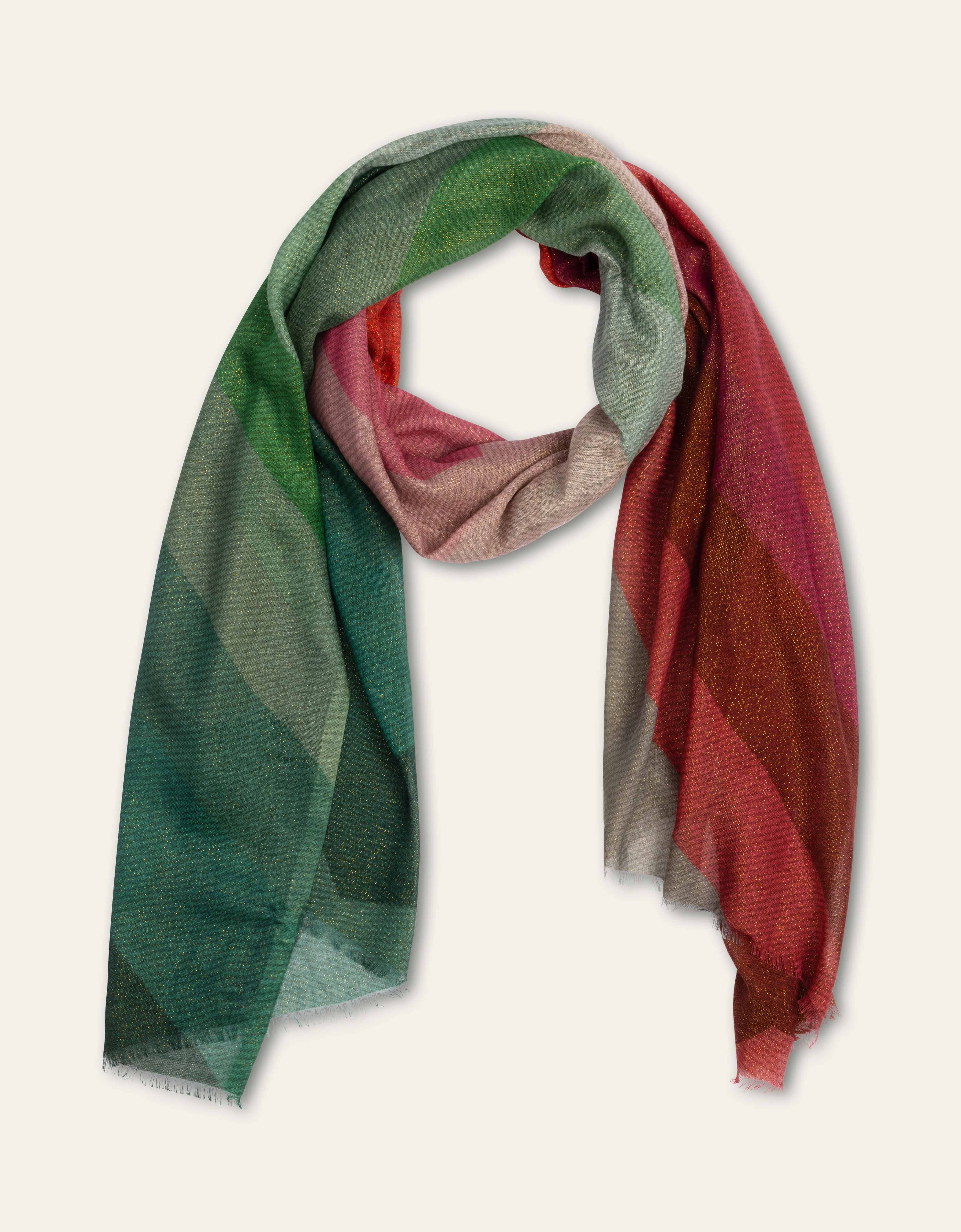 Durch den eingearbeiteten Goldfaden funkeln die edgy Streifen dieses Schals besonders schön, sobald Licht darauf fällt.