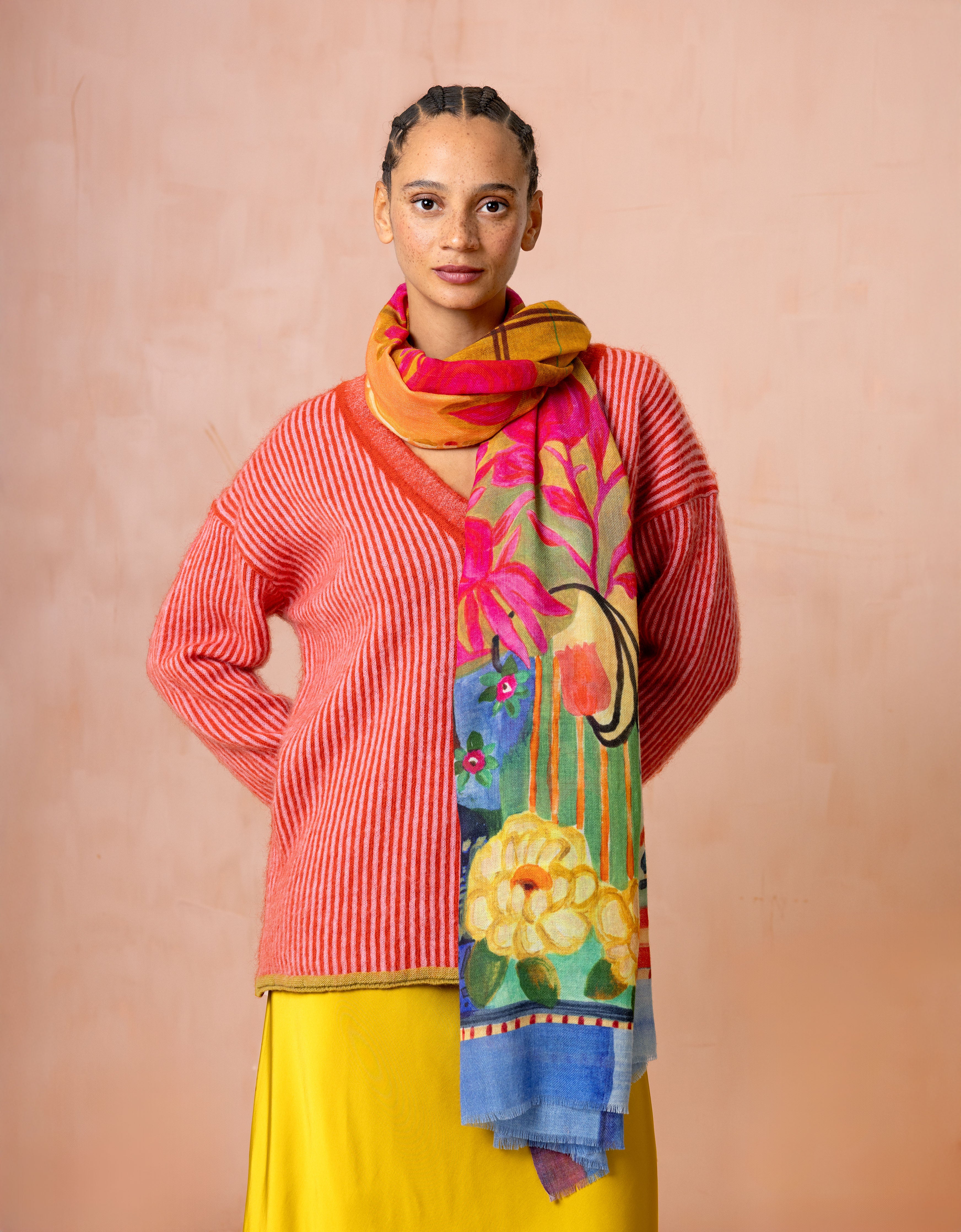 Der Thistle Cheese Print ist eine Hommage an die reiche Natur und Geschichte von Schokland und Schottland. Dieses aufwendig gemalte Design mit aller Liebe für beide Länder kommt auf dem weichen Schal besonders schön zur Geltung.
