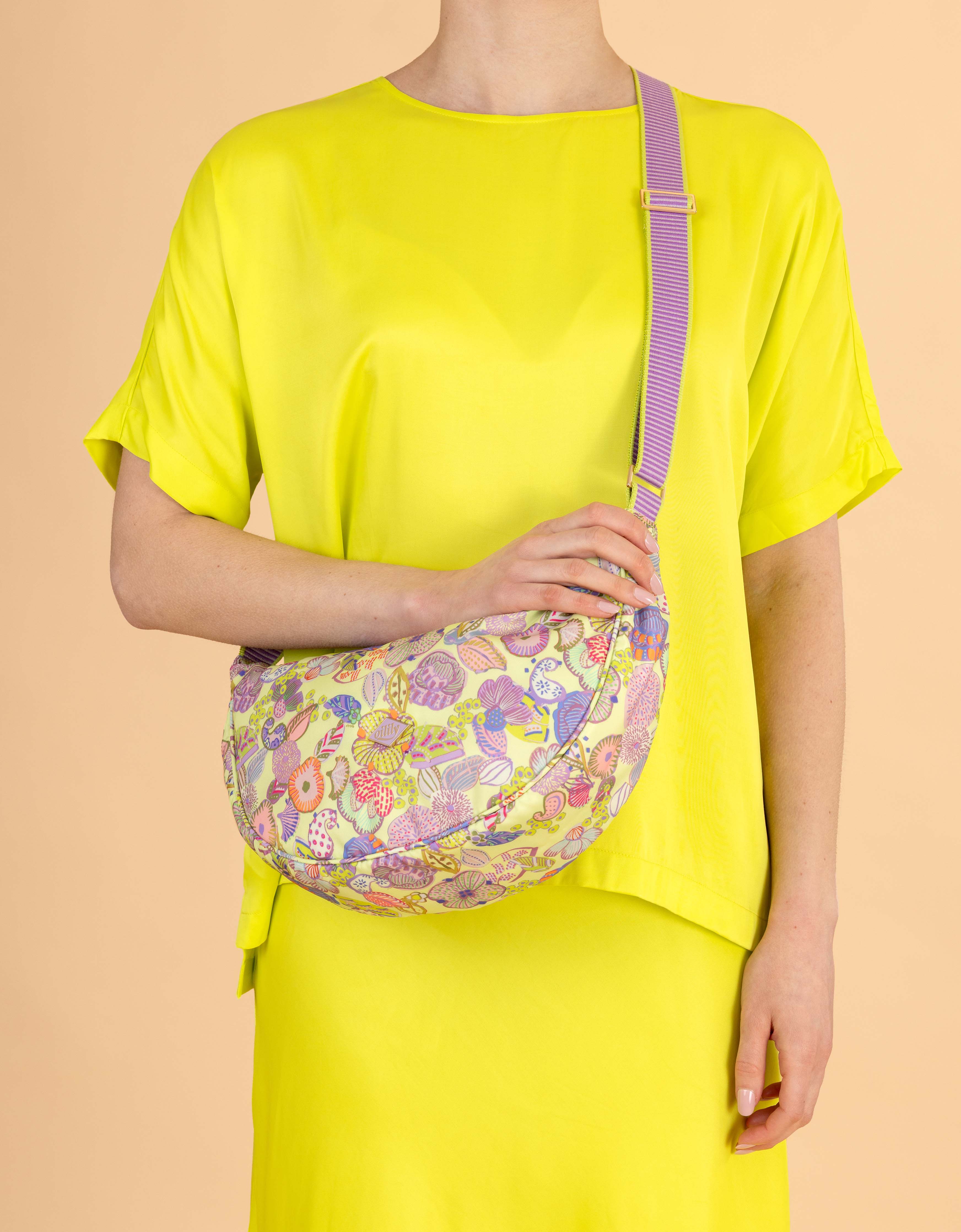 Die Sela-Umhängetasche hat den Baori Garden-Print und einen gewebten Schulterriemen.