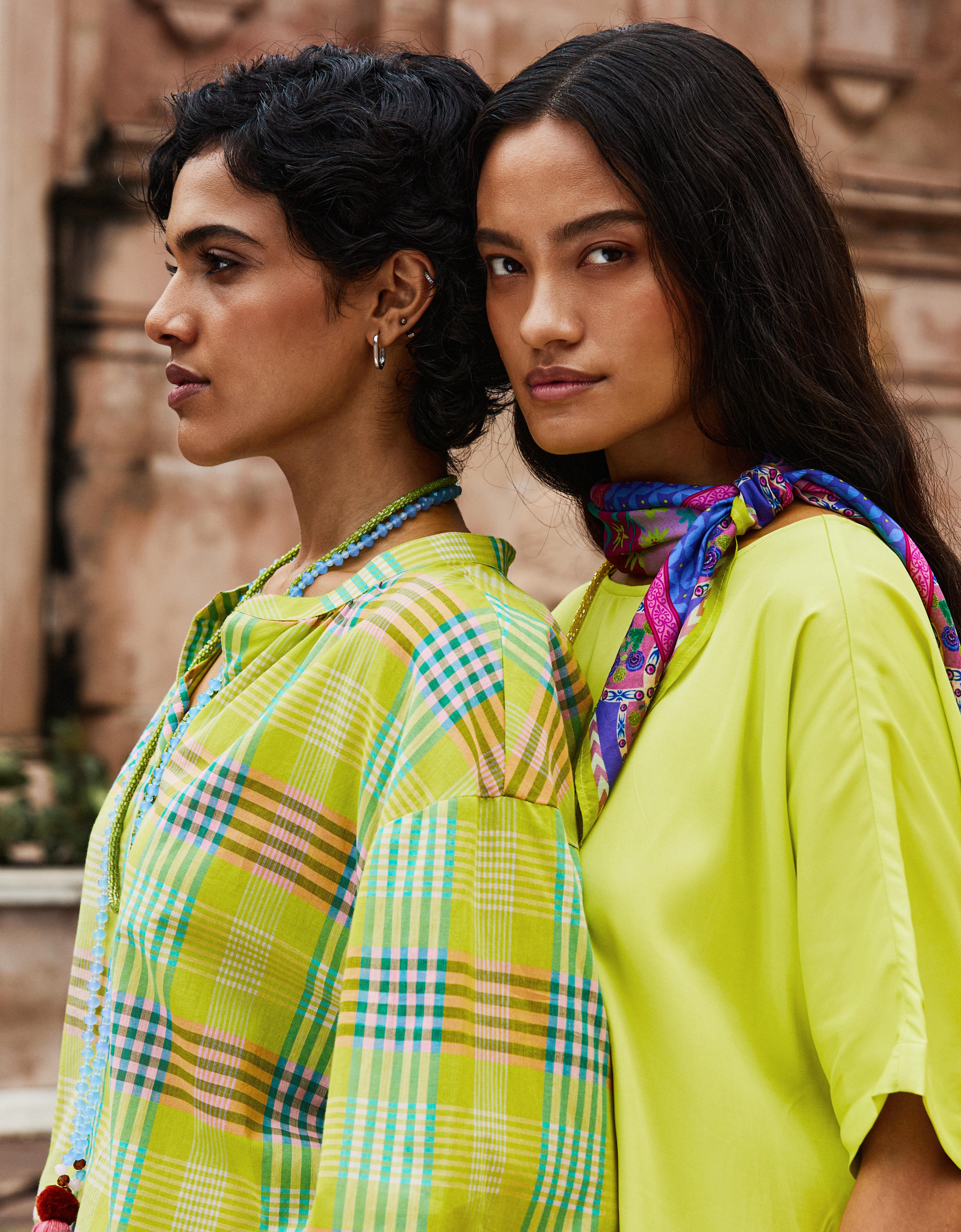 Sommerbluse aus Viskose, die sich schwer und dick anfühlt, in einfarbigem Gelb. Perfekt zu kombinieren als Set mit dem Rock in derselben Qualität für einen stilvollen, passenden Look.