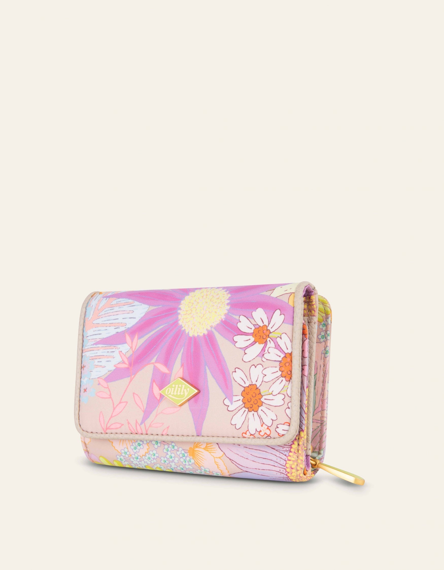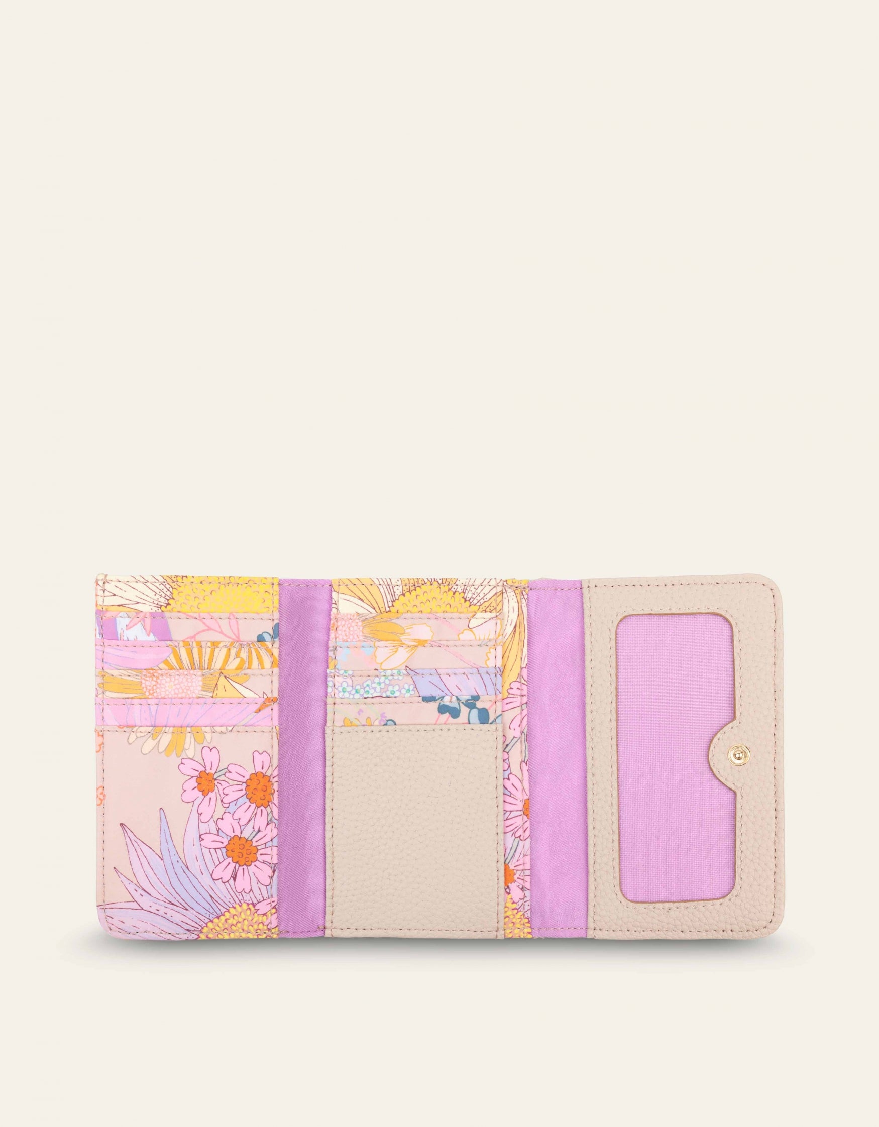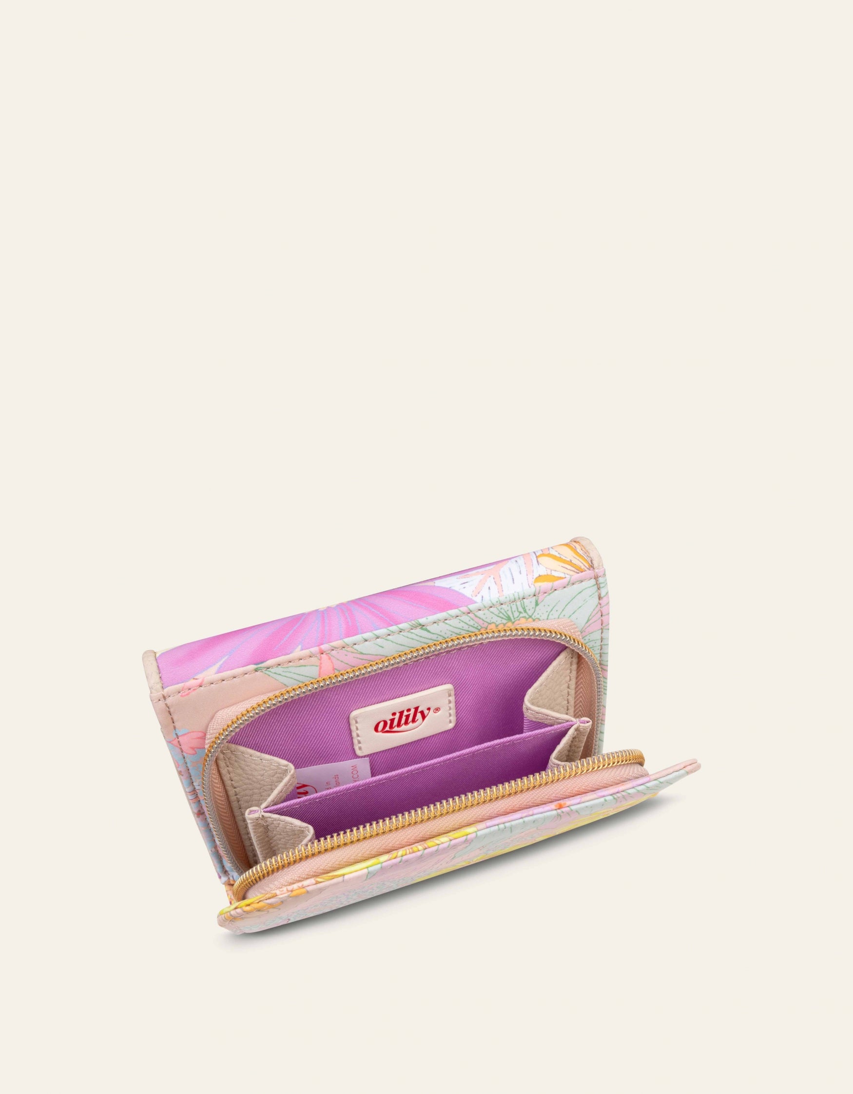 Eine faltbare Geldbörse mit Lucia-AufPrint. Mit dem Lucia-print ist jedes Stück ein Unikat, da die Platzierung der Details unterschiedlich sein kann.