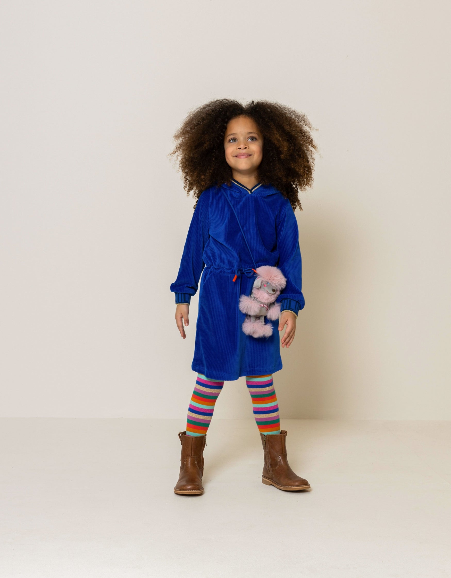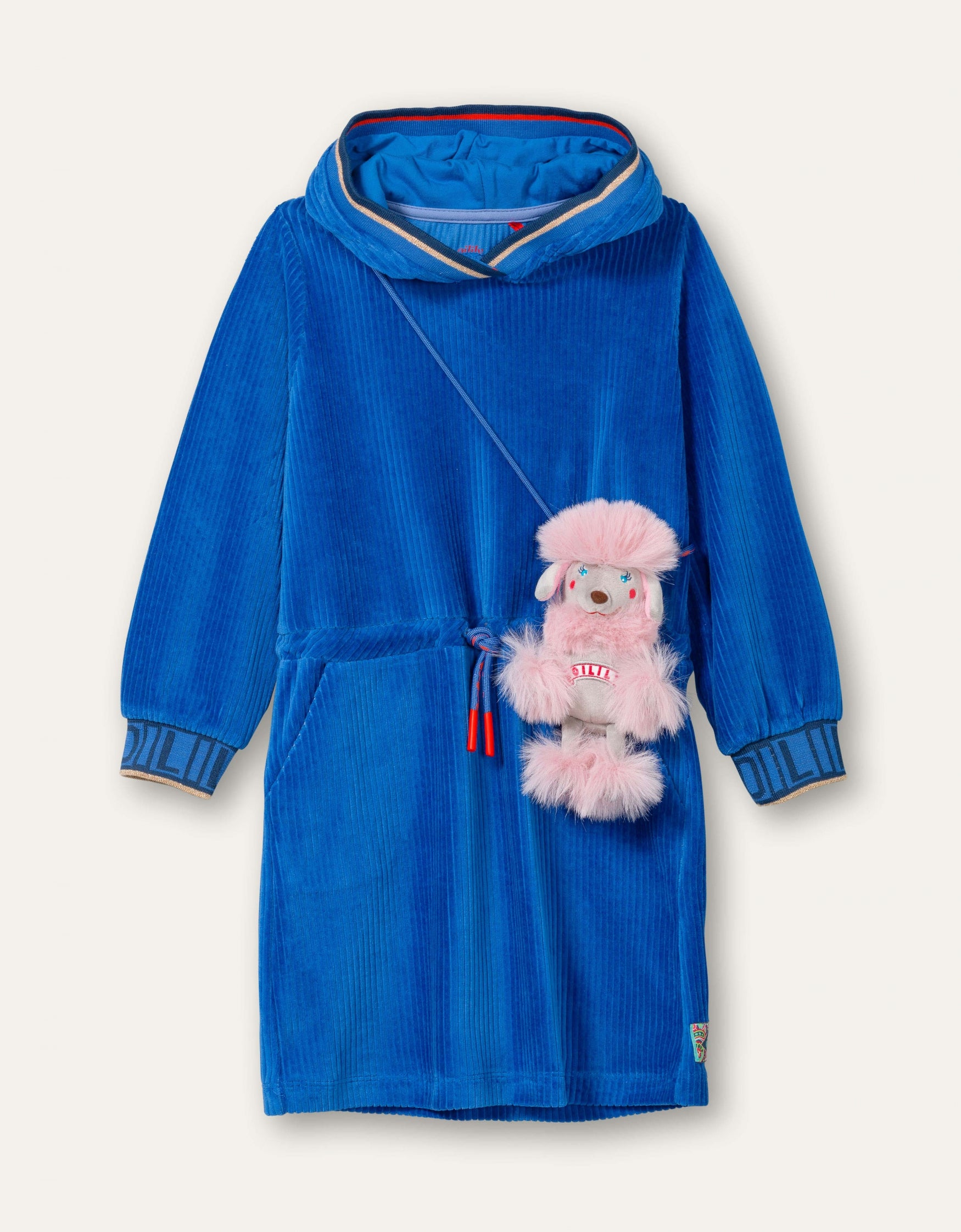 In diesem königsblauen Kleid mit goldenen Akzenten fühlst du dich wie Kuschelkönigin! Das Kleidchen ist aus weichem Nicky in Cord-Optik gearbeitet und hat coole Details wie den Oilily Tunnelzugbund, das Finish an den Ärmeln und die Kapuze. Die süße Pudeltasche bildet das i-Tüpfelchen. So hast du immer eine eigene The Softies Tasche dabei, die du überall hin mitnehmen kannst. - Mit Bio-Baumwolle - Abnehmbare Tasche - Lockere Passform - Hergestellt in Griechenland