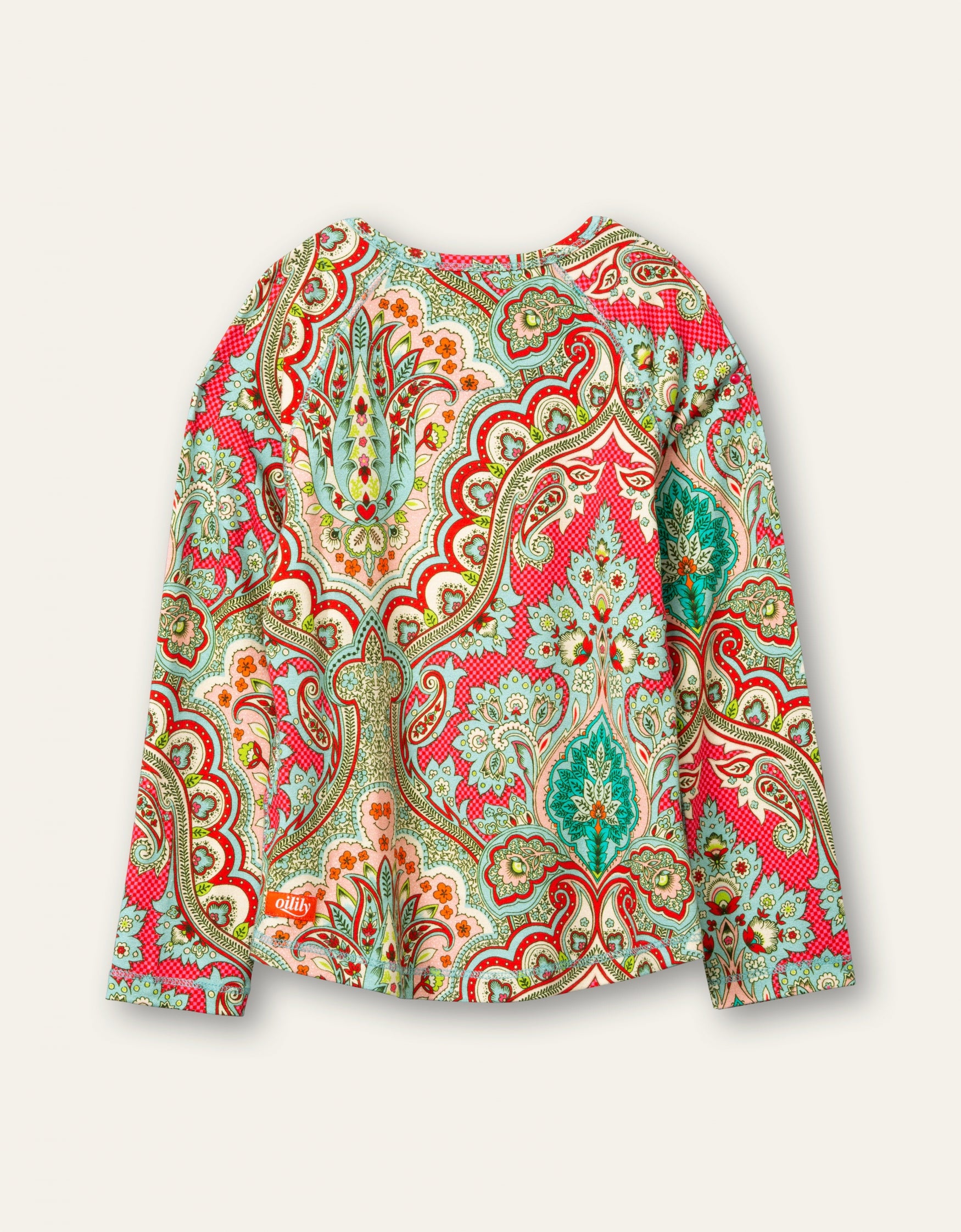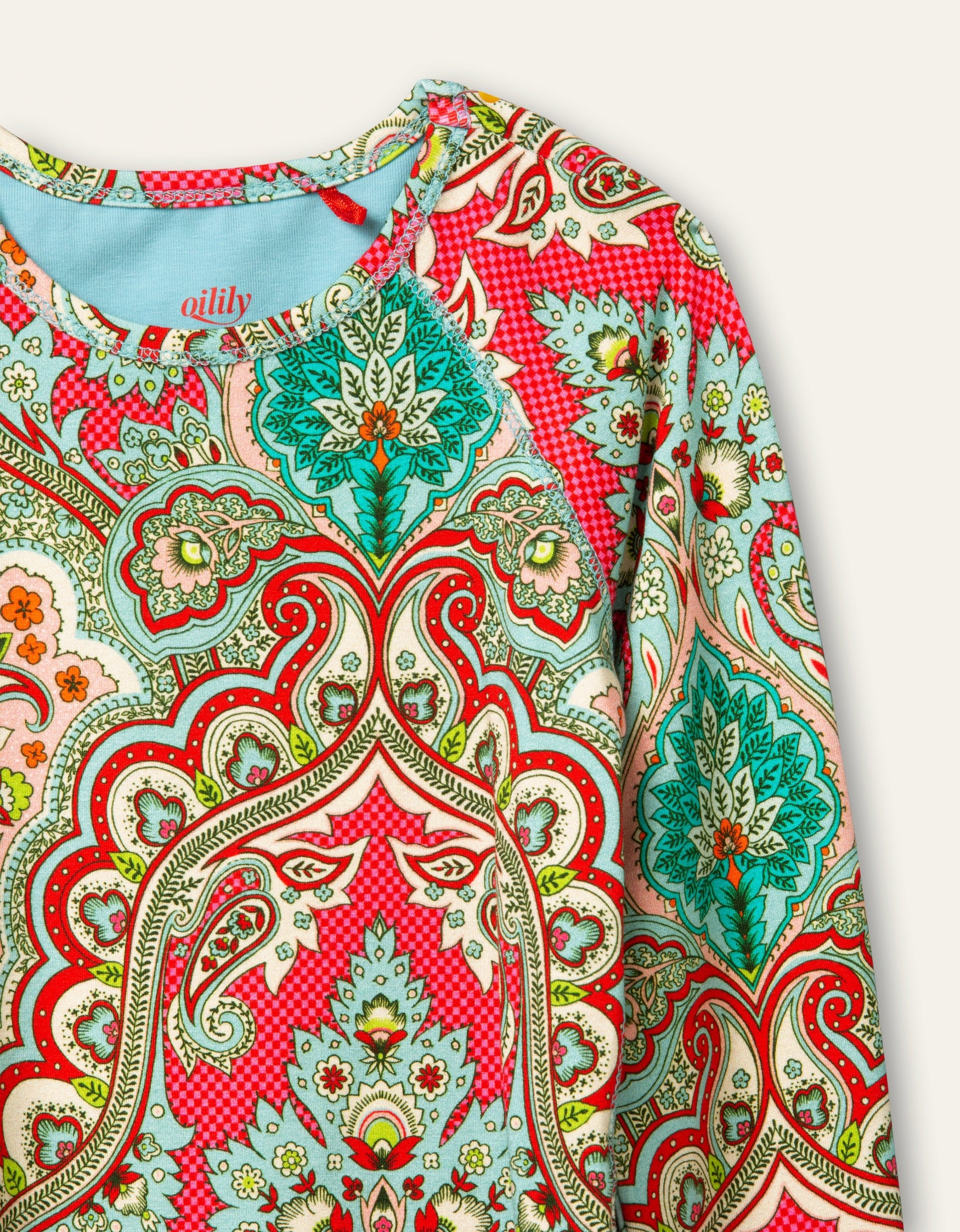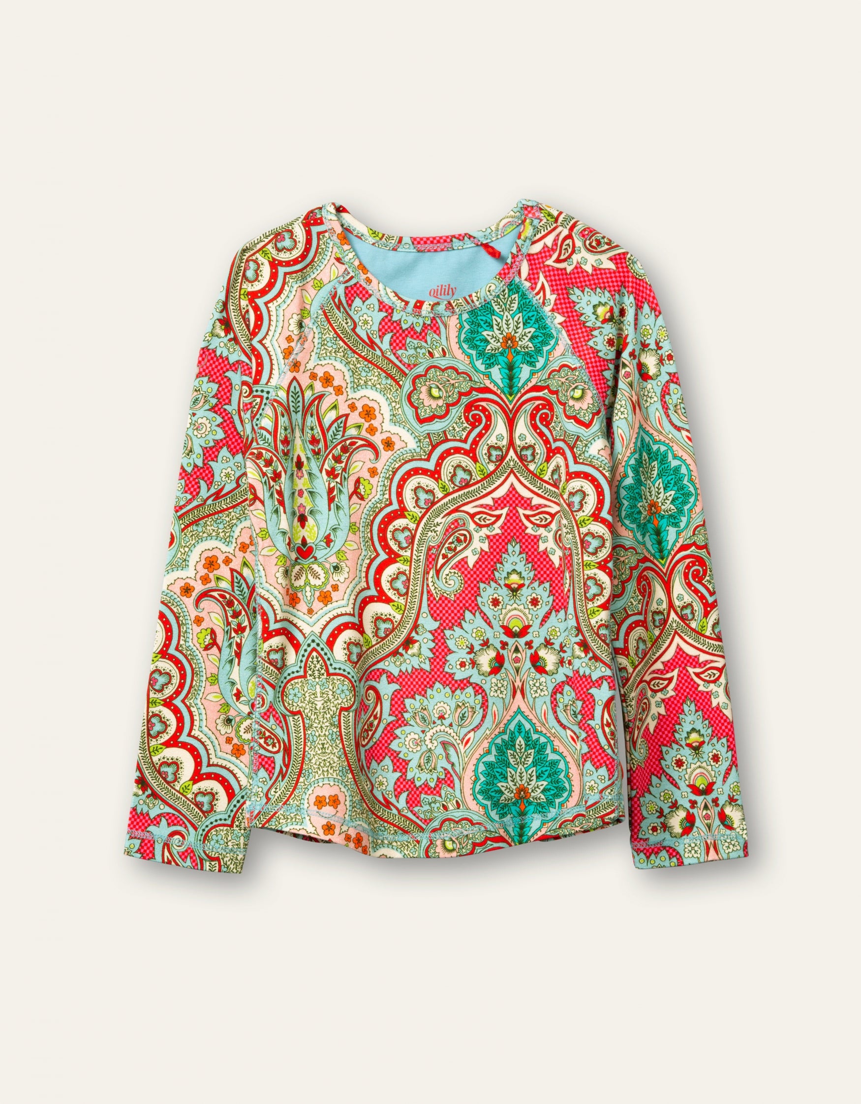 Dieses Shirt ist aus einem prachtvollen orientalischen Print gefertigt, der seine Farben und Formen sehr schön akzentuiert. Mit rundem Saum und markanten Blickfang-Nähten in Hellblau. - Hergestellt in Griechenland - Normale Passform - Viskose