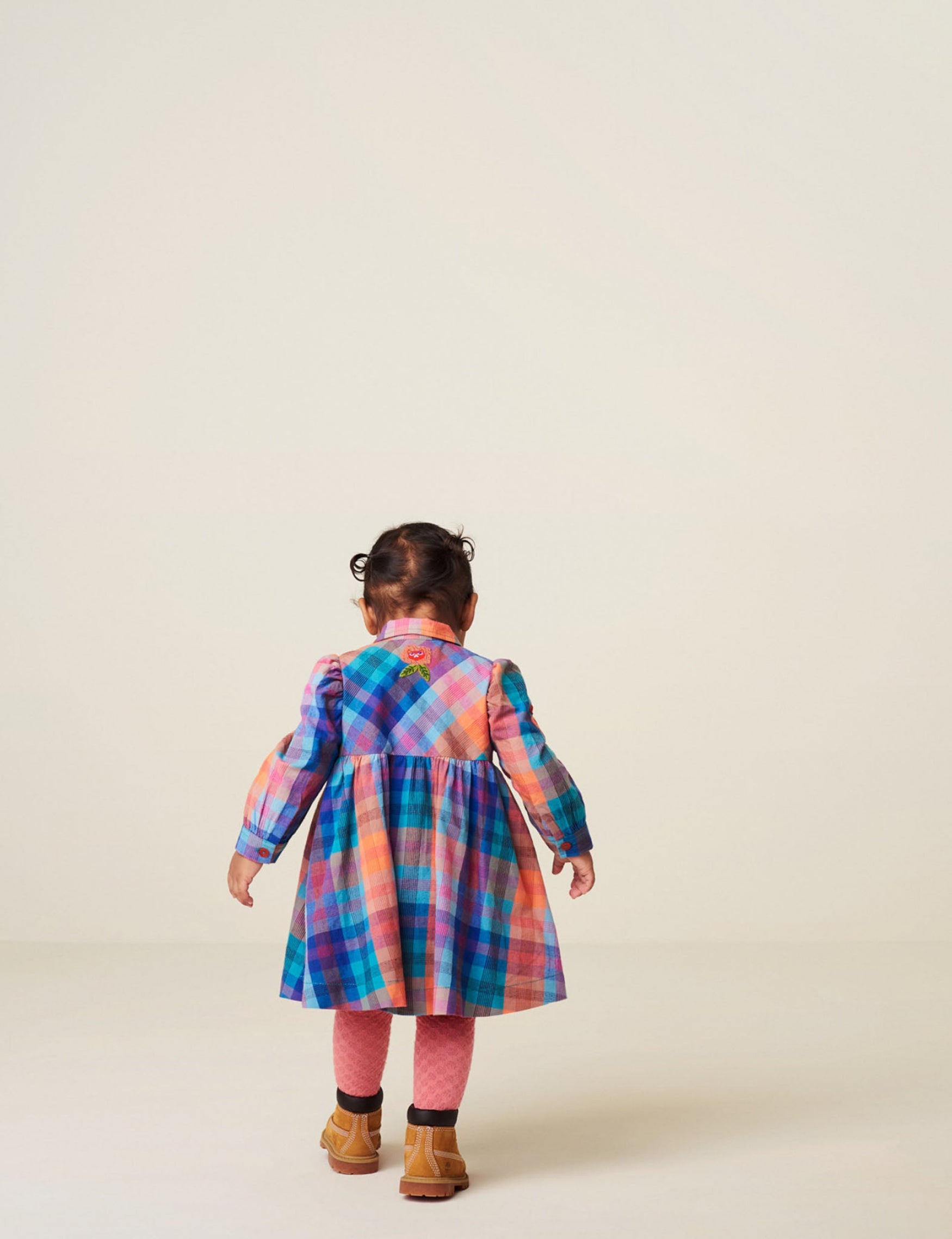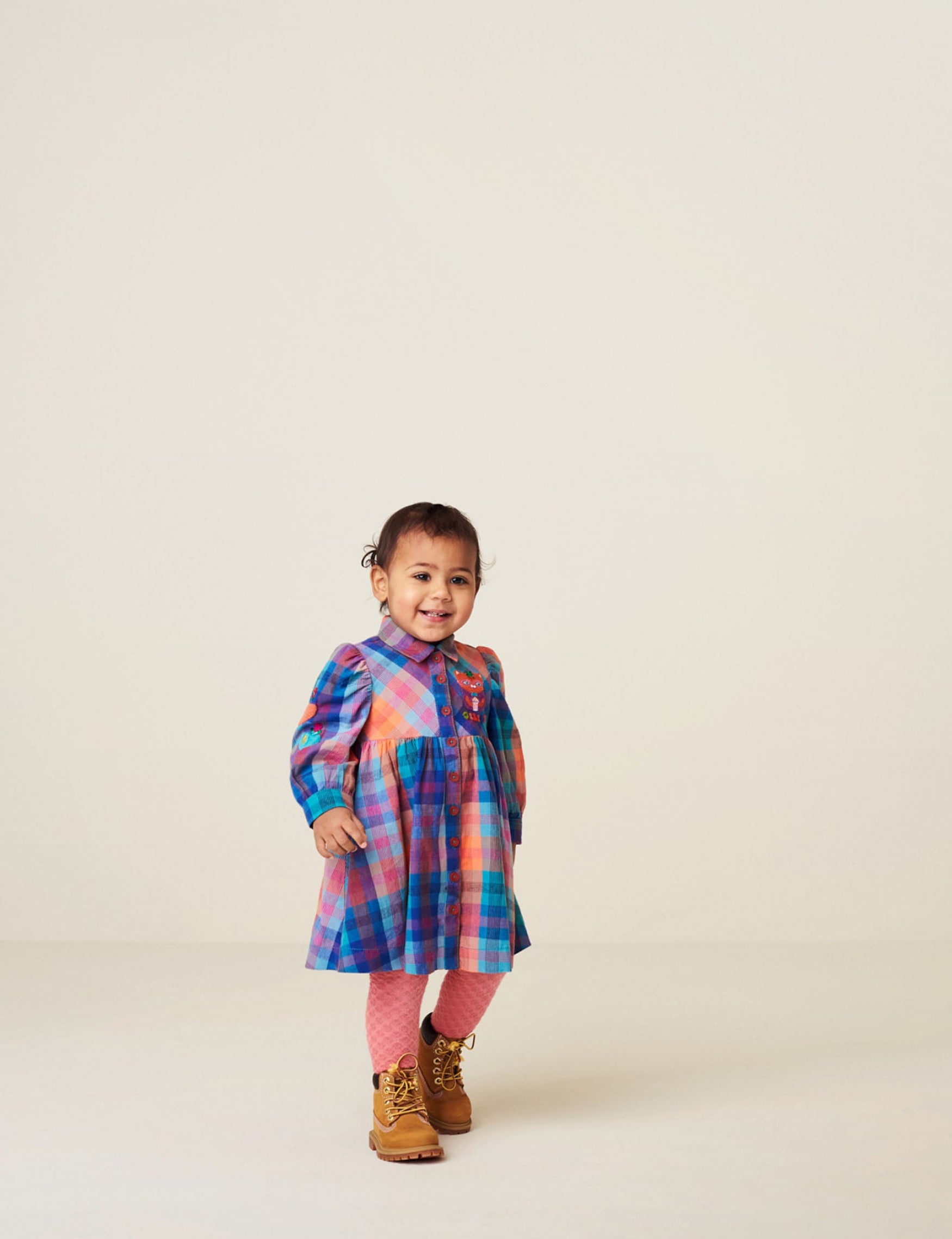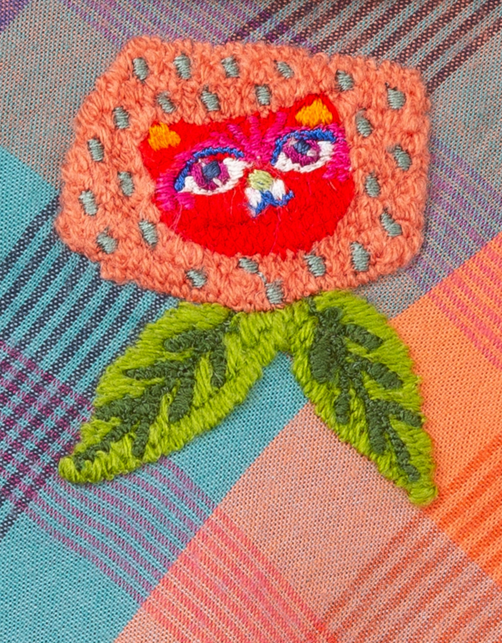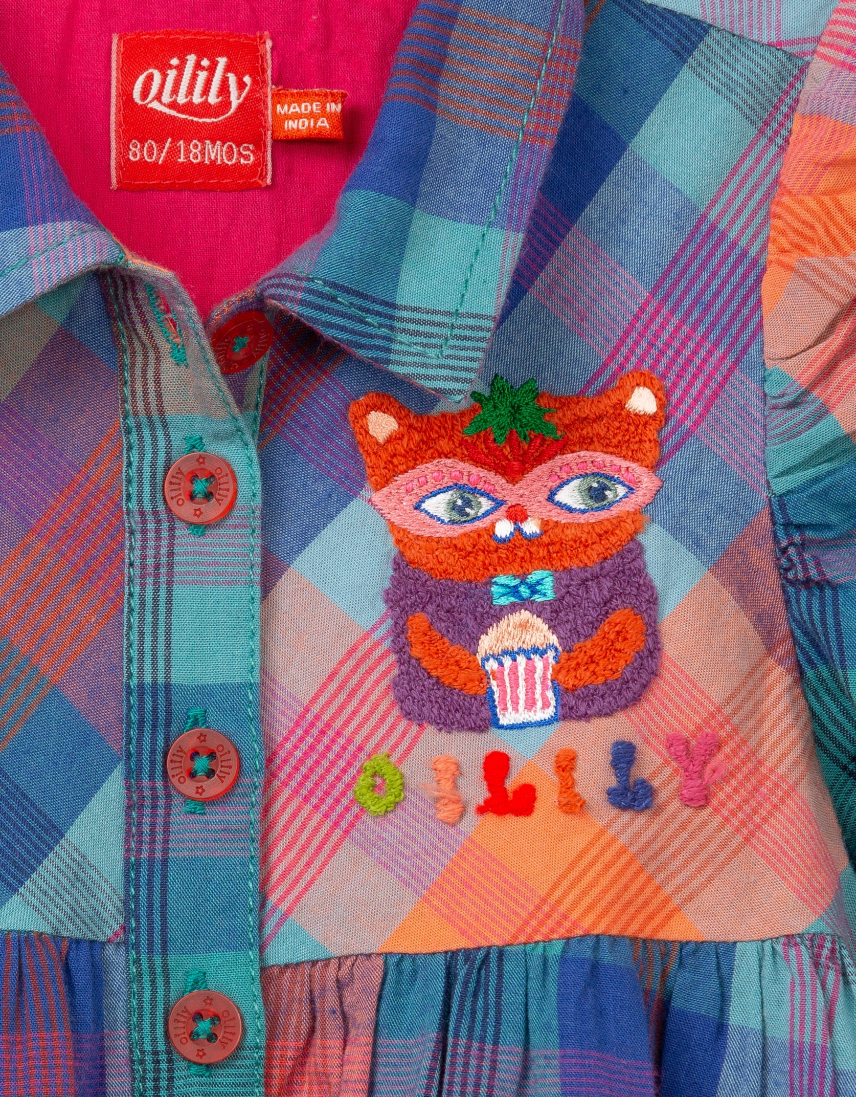 Dieses hübsche Kleid aus Baumwollstoff ziert ein verspieltes Karomuster und eine noch verspieltere kleine Katze, die genüsslich Popcorn isst. Ob sie ihn wohl mit dir teilt? - 100 % Baumwolle - Normale Passform - Gestickte Details an den Puffärmelchen - Seitliche Eingrifftaschen