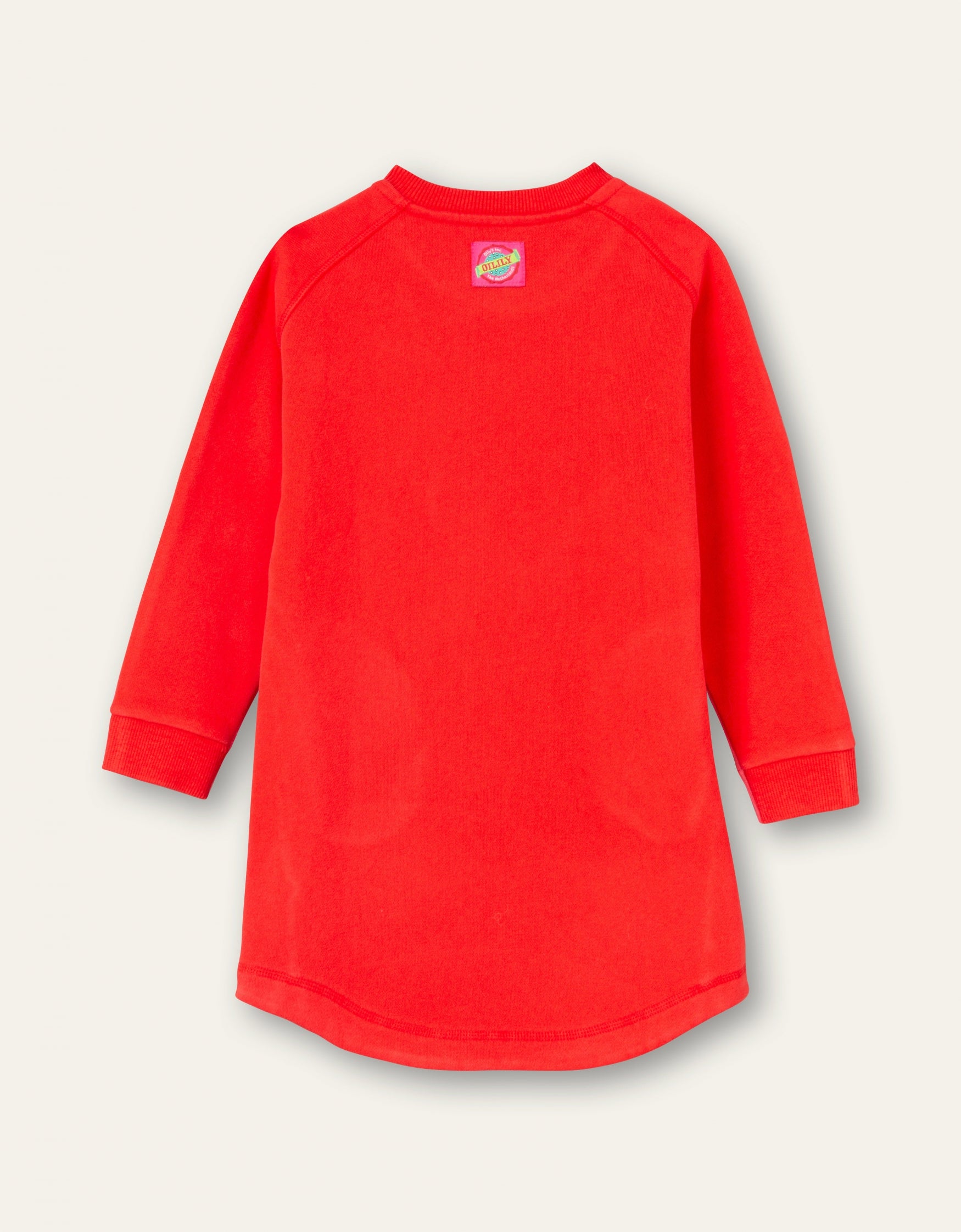 Unser Oilily-Emoticon! Benutze deine Vorstellungskraft, um die Bedeutung zu erraten, aber Eislecken muss etwas damit zu tun haben! Es ist groß und fett, sicherlich nicht zu übersehen. Dieses Pulloverkleid in Rot und Pink ist das ganze Jahr über zu tragen. 100% Organisch Baumwolle