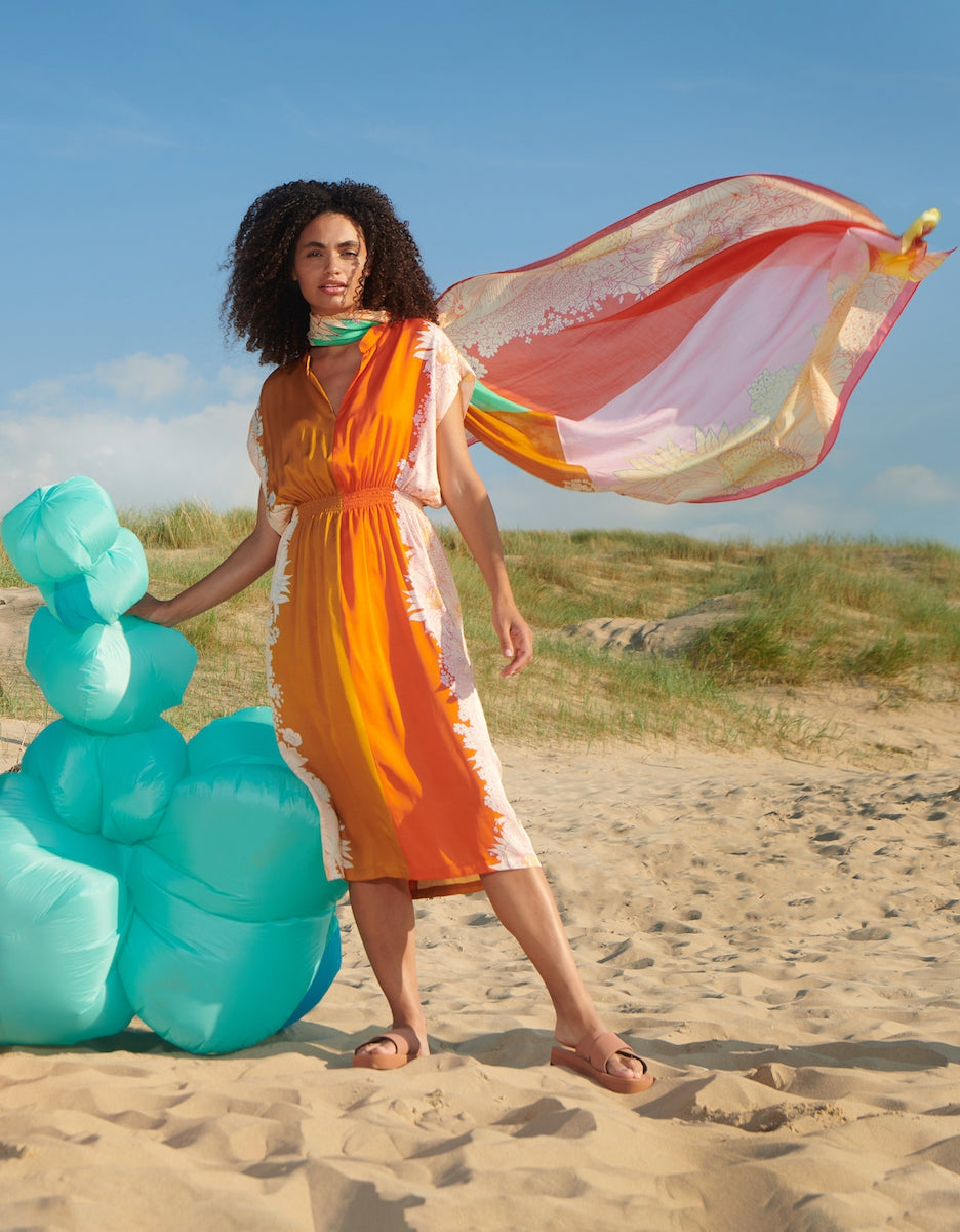 Die Zartheit der Lucia Flowers ziert die Kanten dieses Schals aus Baumwolle und Seide mit einem markanten Color