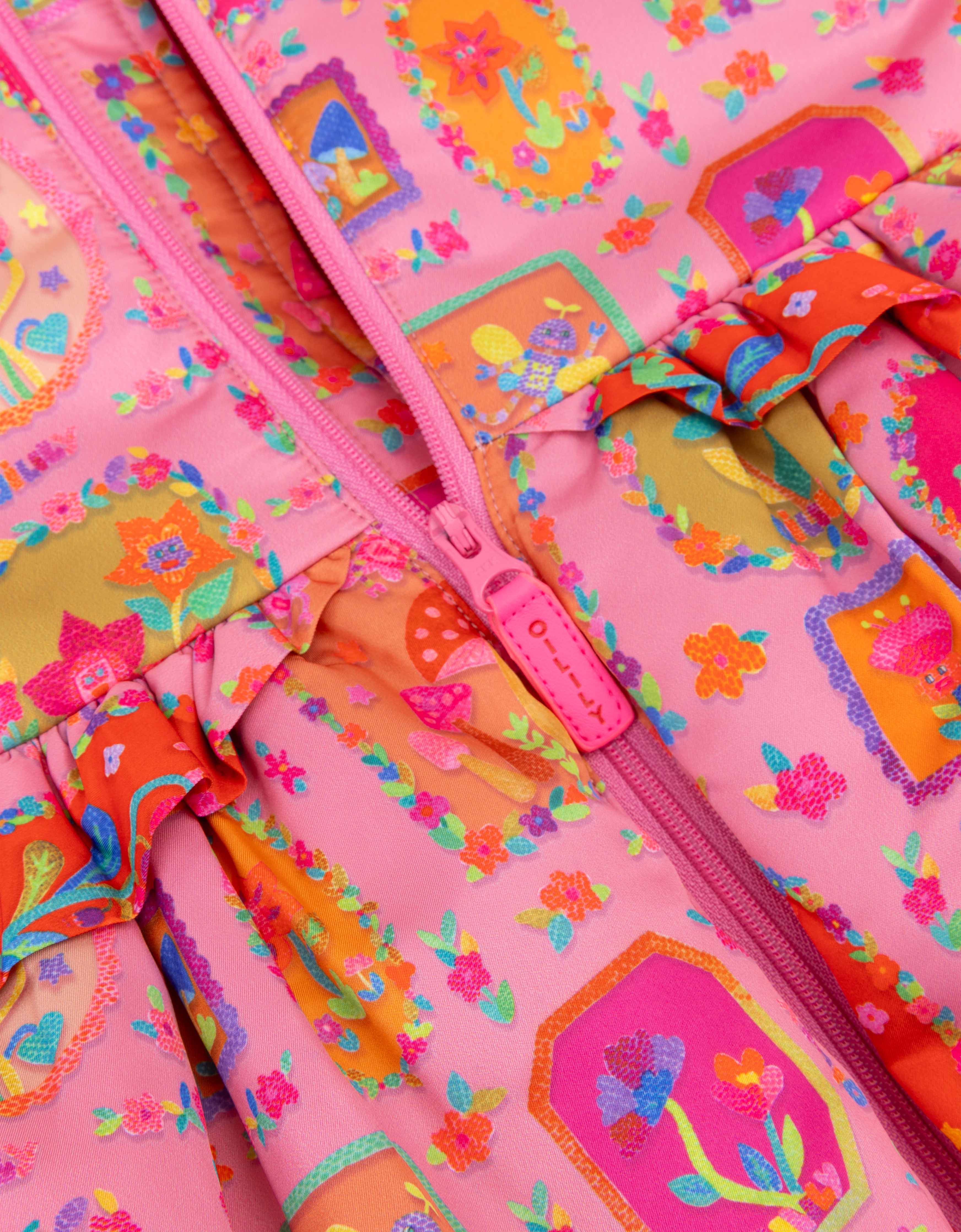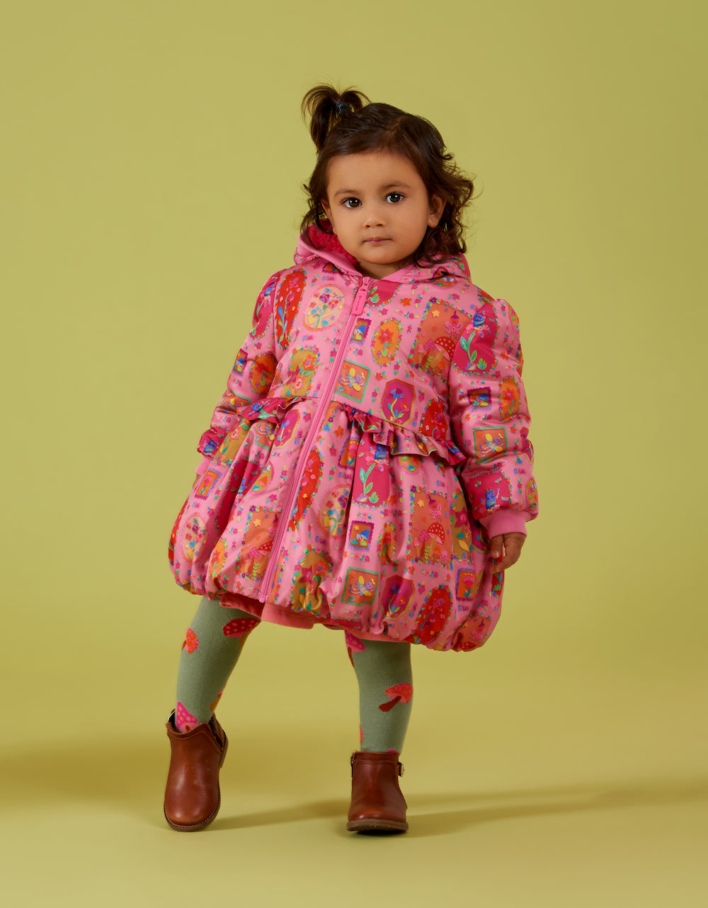 Rundum charmant ist dieser Mantel mit unserem Fairy Robots Print - ein futuristisches Märchen in einem Mix aus Natur und Robotern. Das Mäntelchen hat eine leichte A-Linie, Rüschen an der Taille und ein weiches Fellfutter.