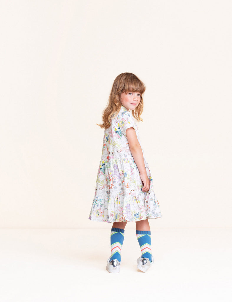 Wir haben diesen Print aus gehäkelten Blumen in allen möglichen Formen und Farben gemacht. Sie leuchten alle auf diesem süßen ausgestellten Wintermantel aus recycelten Materialien. Das Futter aus Kunstpelz in Oilily Rot befindet sich auch in der Kapuze.