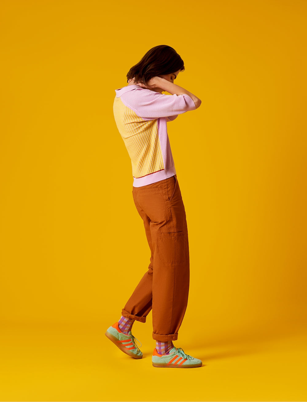 Dieser Pullover mit lockerem Poloausschnitt ist das perfekte Element zum Kreieren eines frischen, modernen Frühlingslooks. Der raffinierte Feinstrick hat einen modernen Mesh-Look, der am Rücken in einer anderen Farbe gehalten ist.