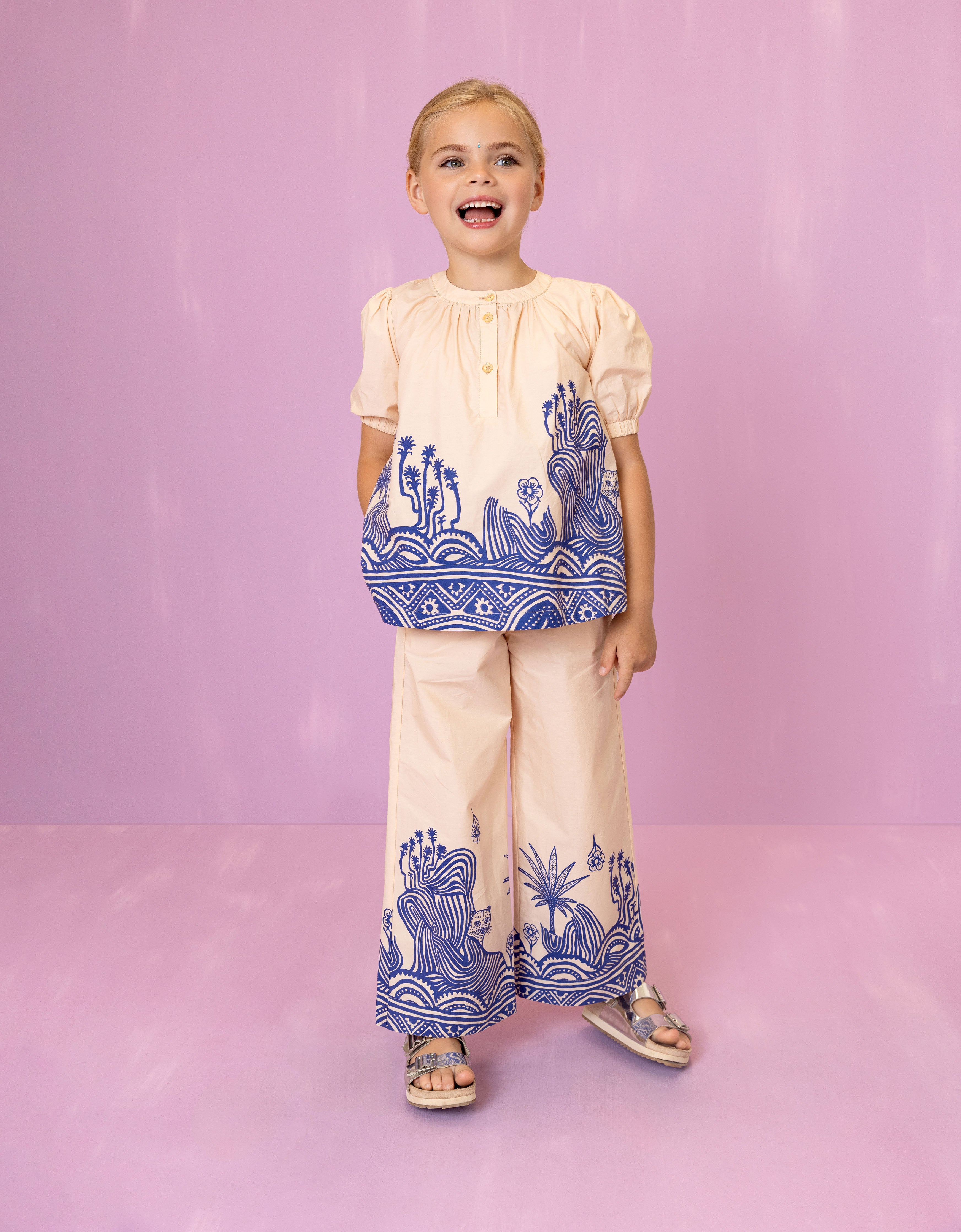 Baumwollhose mit einzigartigem Panel-Print, handgezeichnet mit Filzstift und inspiriert von einer indischen Landschaft.