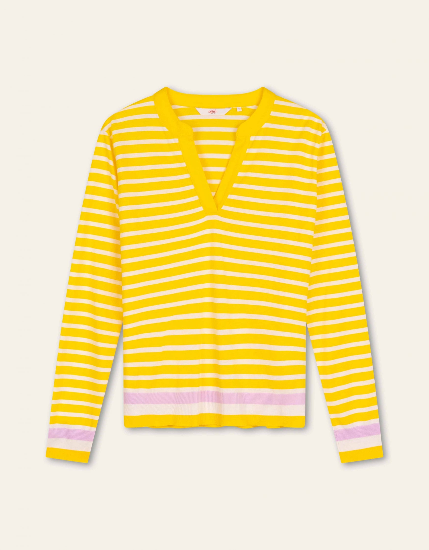 Soft, light and luxurious. This is how this open V-neck long-sleeved top feels and looks. At the hem the ribbed striped are knitted along for a deluxe finish. A premium piece for many moments.