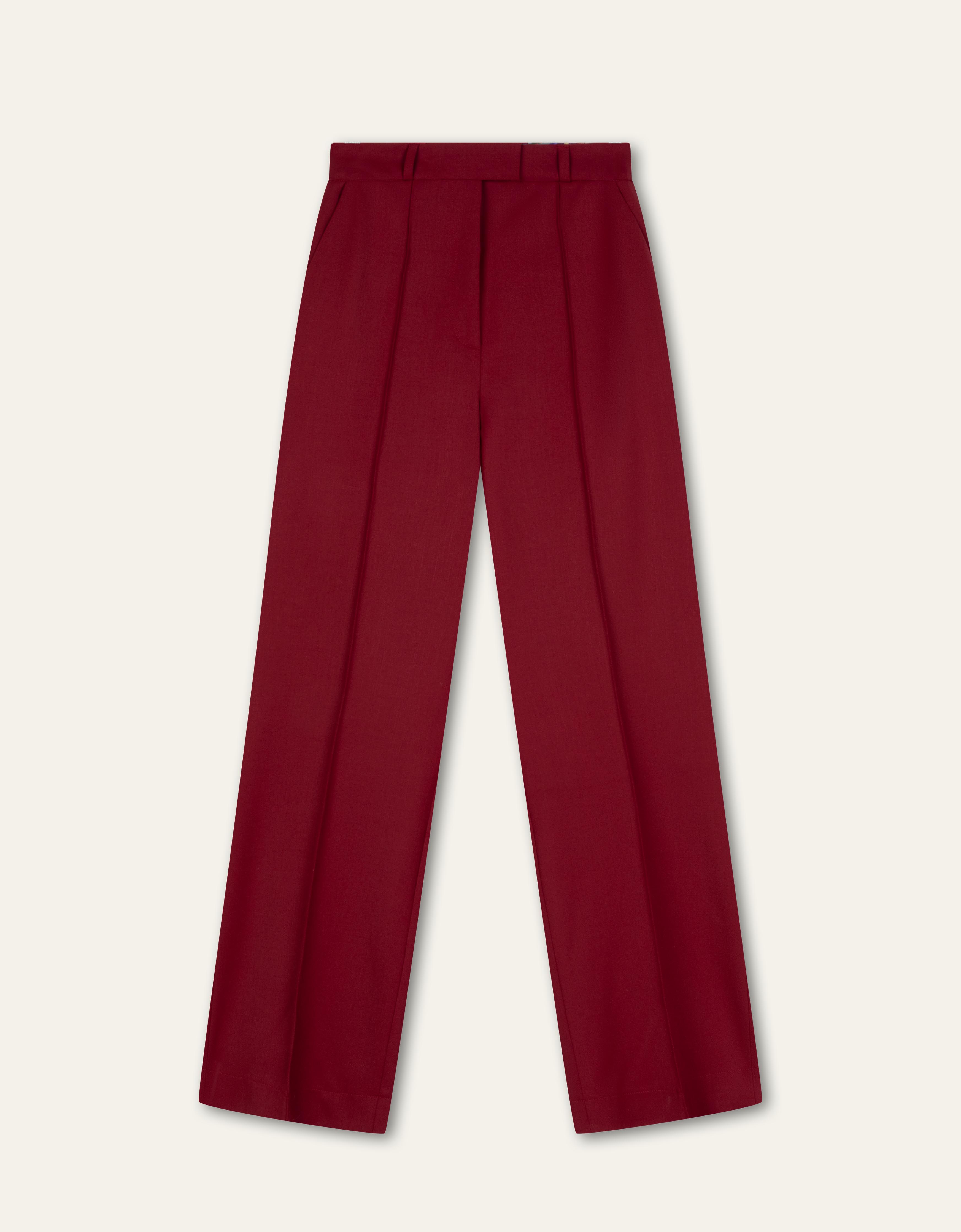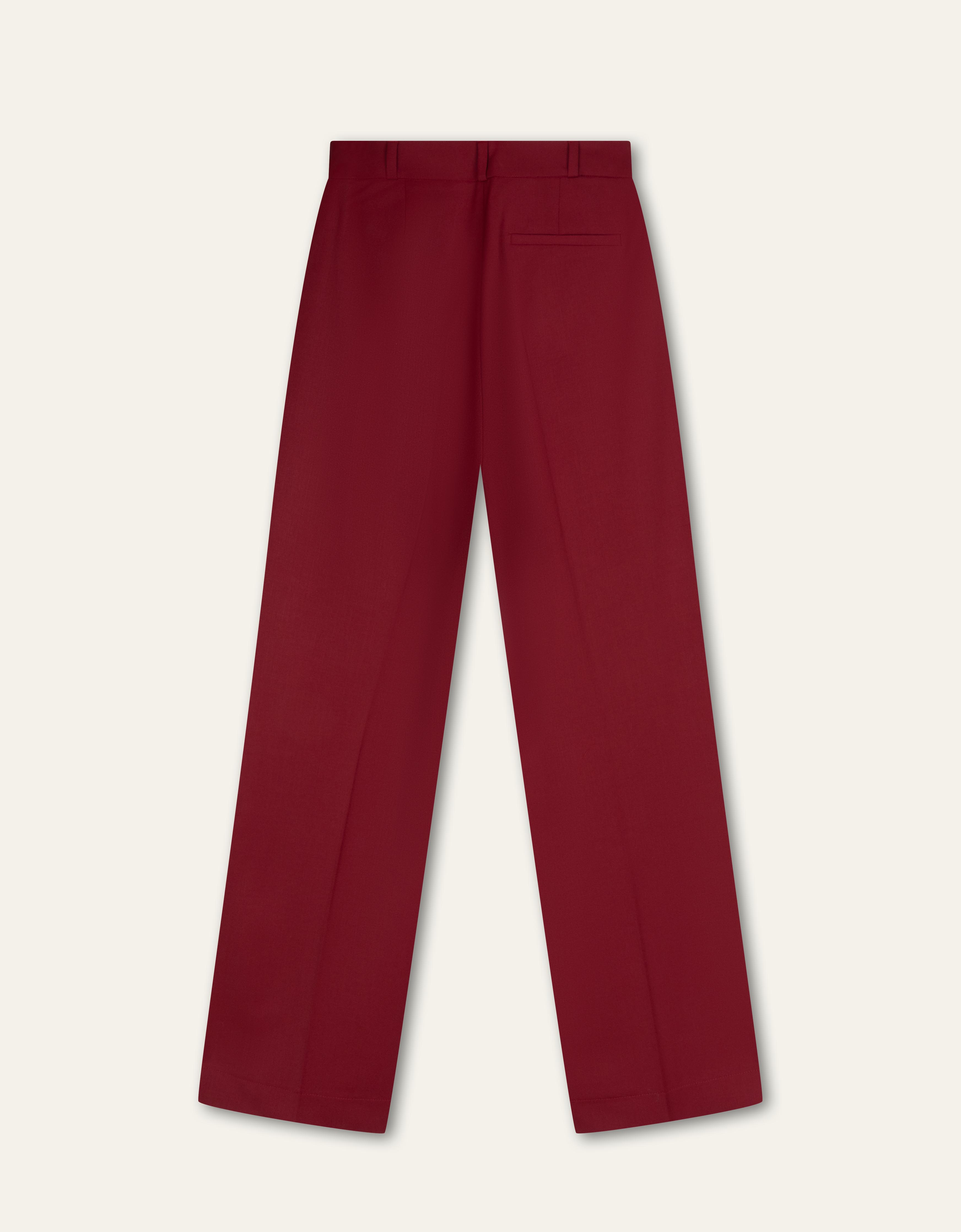 Lovely trousers for any occasion with a straight fit and a strong pleat along the front. With a blind zipper and a faux back pocket. The lining in the waist is playful with the colourful print Pieternella Strips.