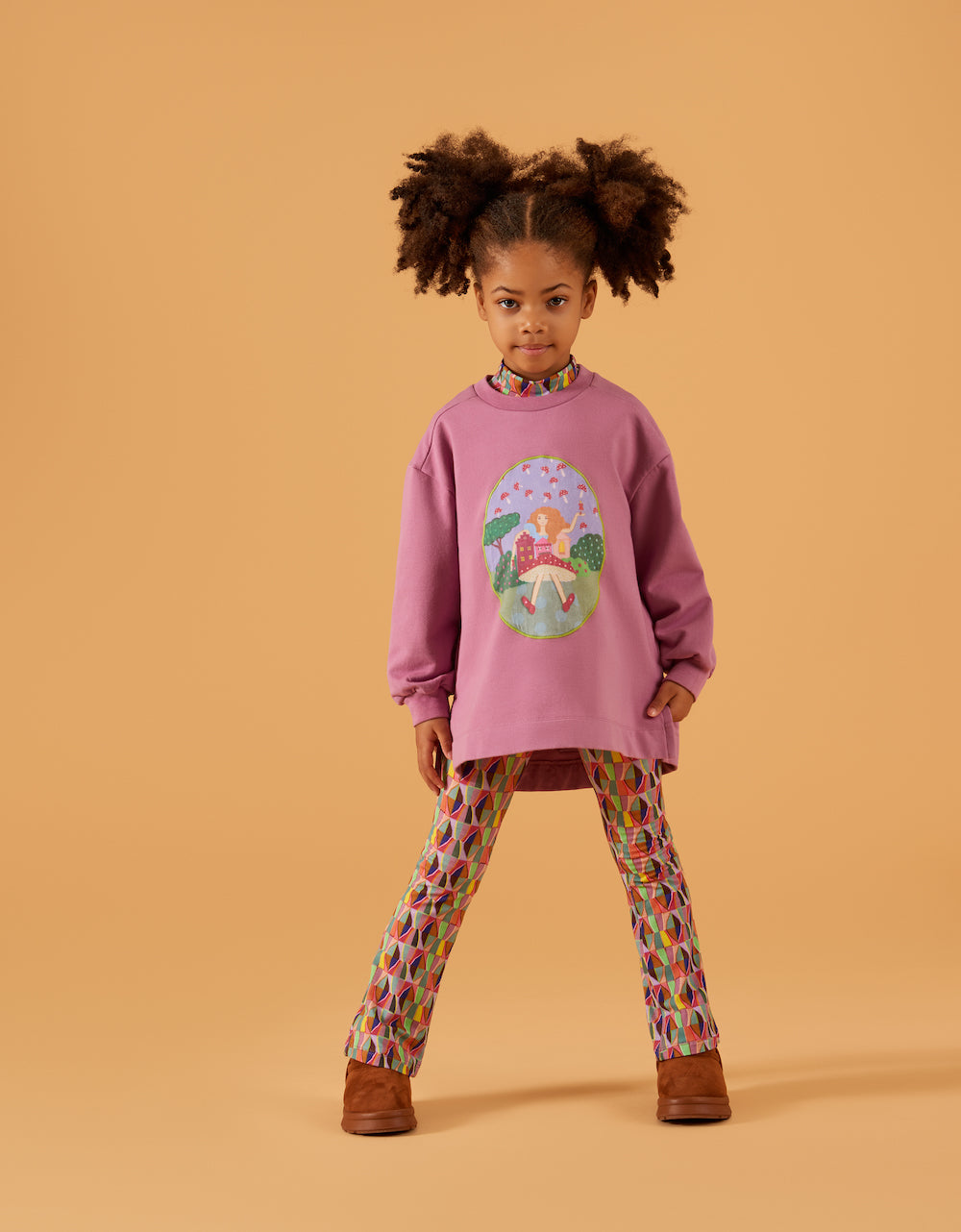 Hey, look there's Alice in her Wonderland of mushrooms. With funny houses around her and small mushrooms that are falling down like raindrops. Together you can go on an adventure in this longer length sweater.
