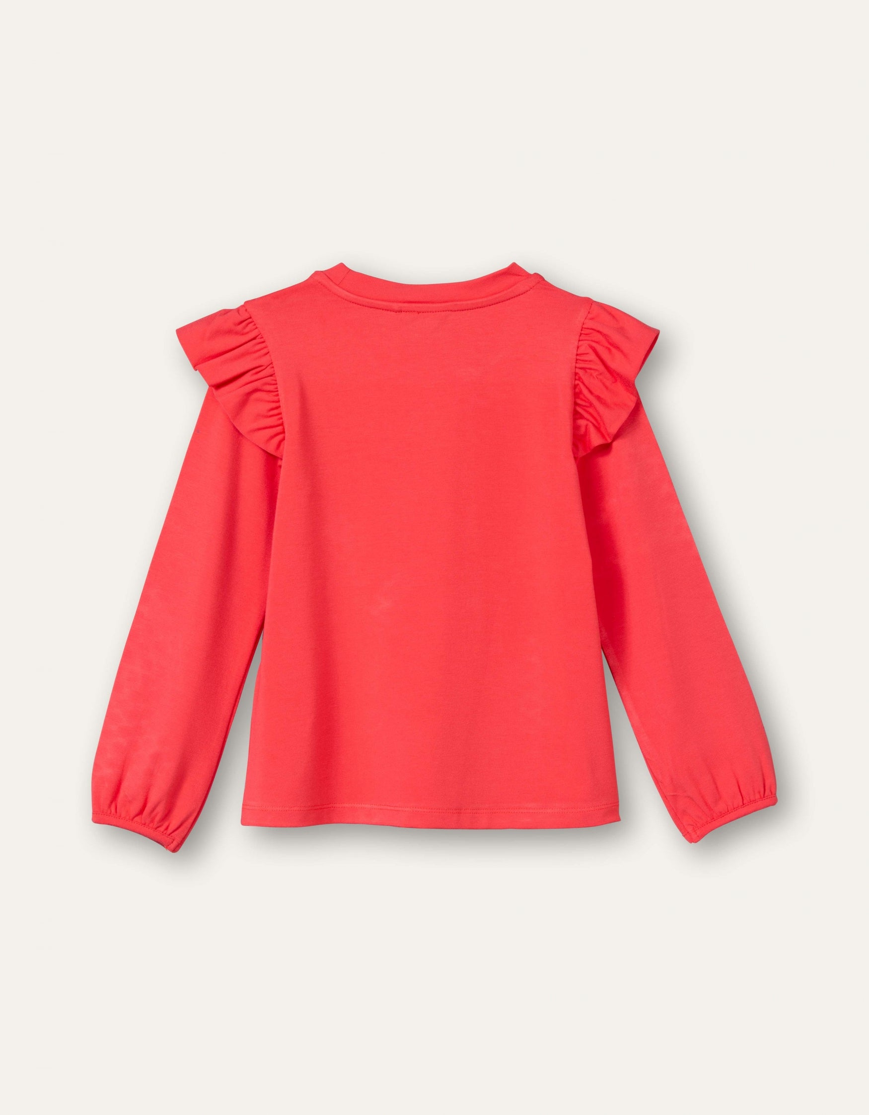 Less is more? No, more is more! This shirt is all-in – with big ruffles on the shoulders, rounded sleeves and glitter emoji logo at the centre of it all. - Cotton with stretch - Regular fit - Made in Greece