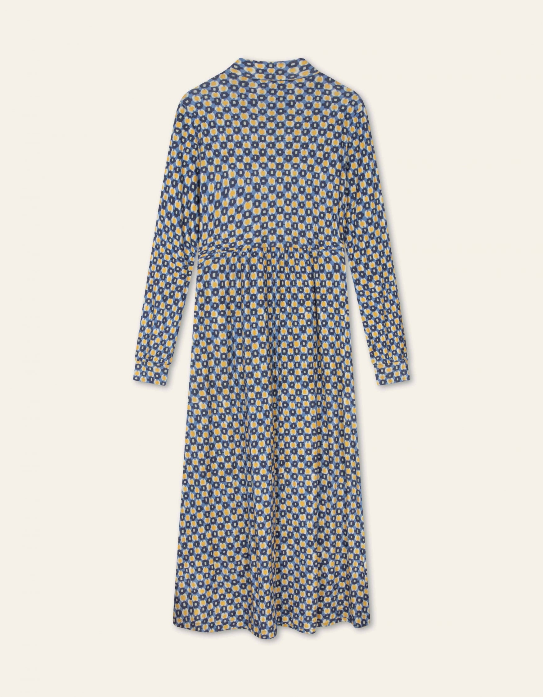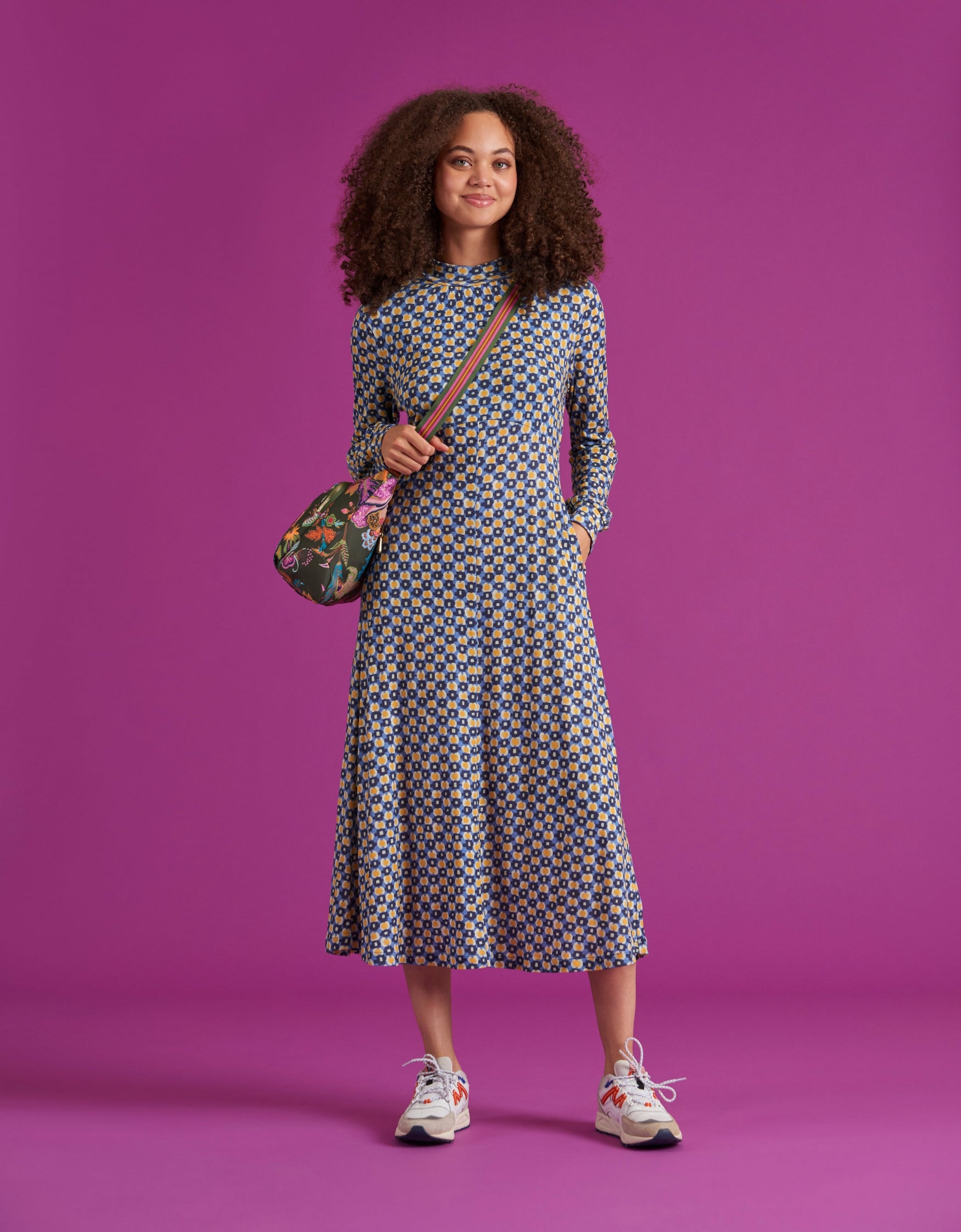 This knitted dress in Regatta blue turns every autumn and winter day into a party. The beautiful and soft yarns are a mix of tencel and wool.