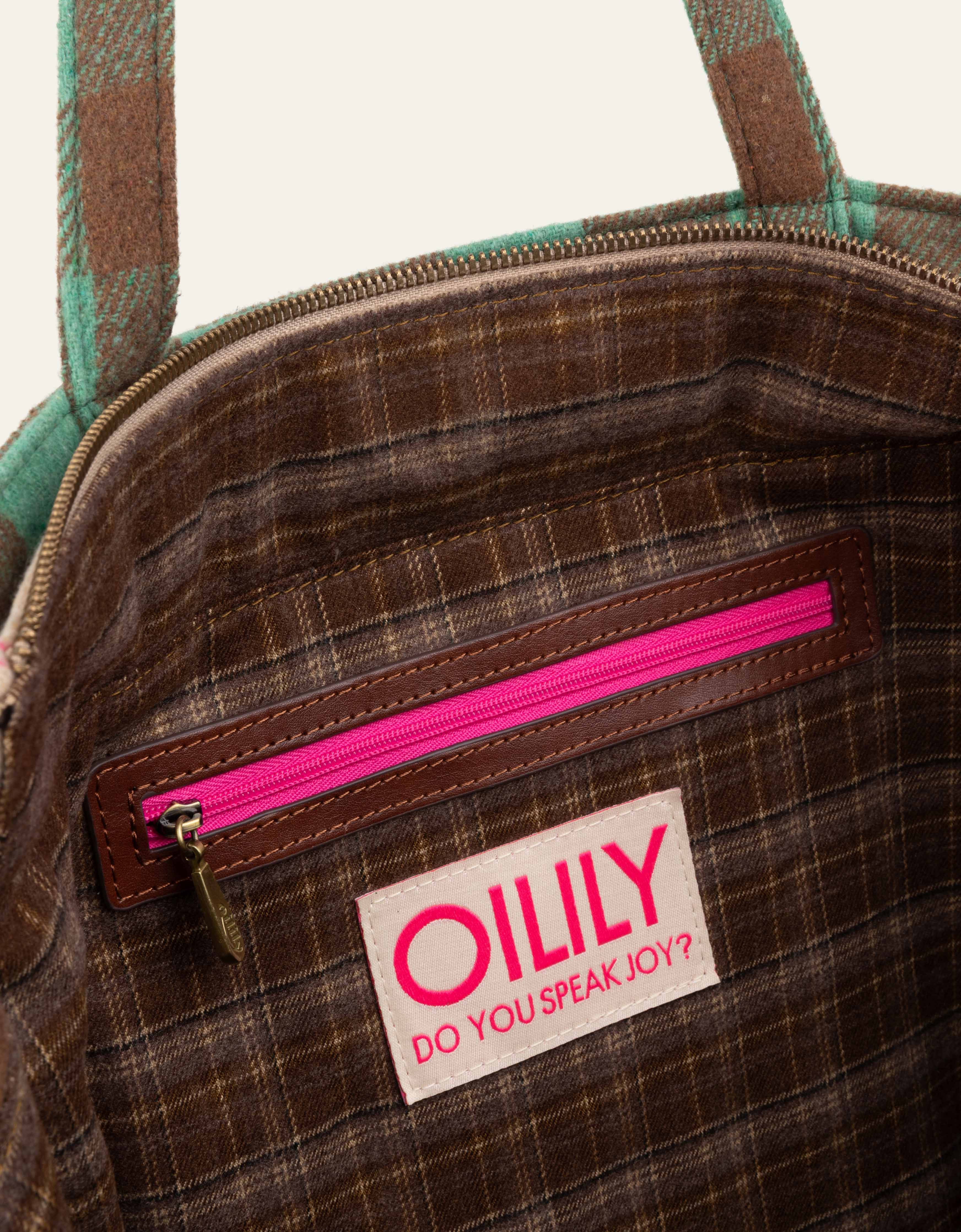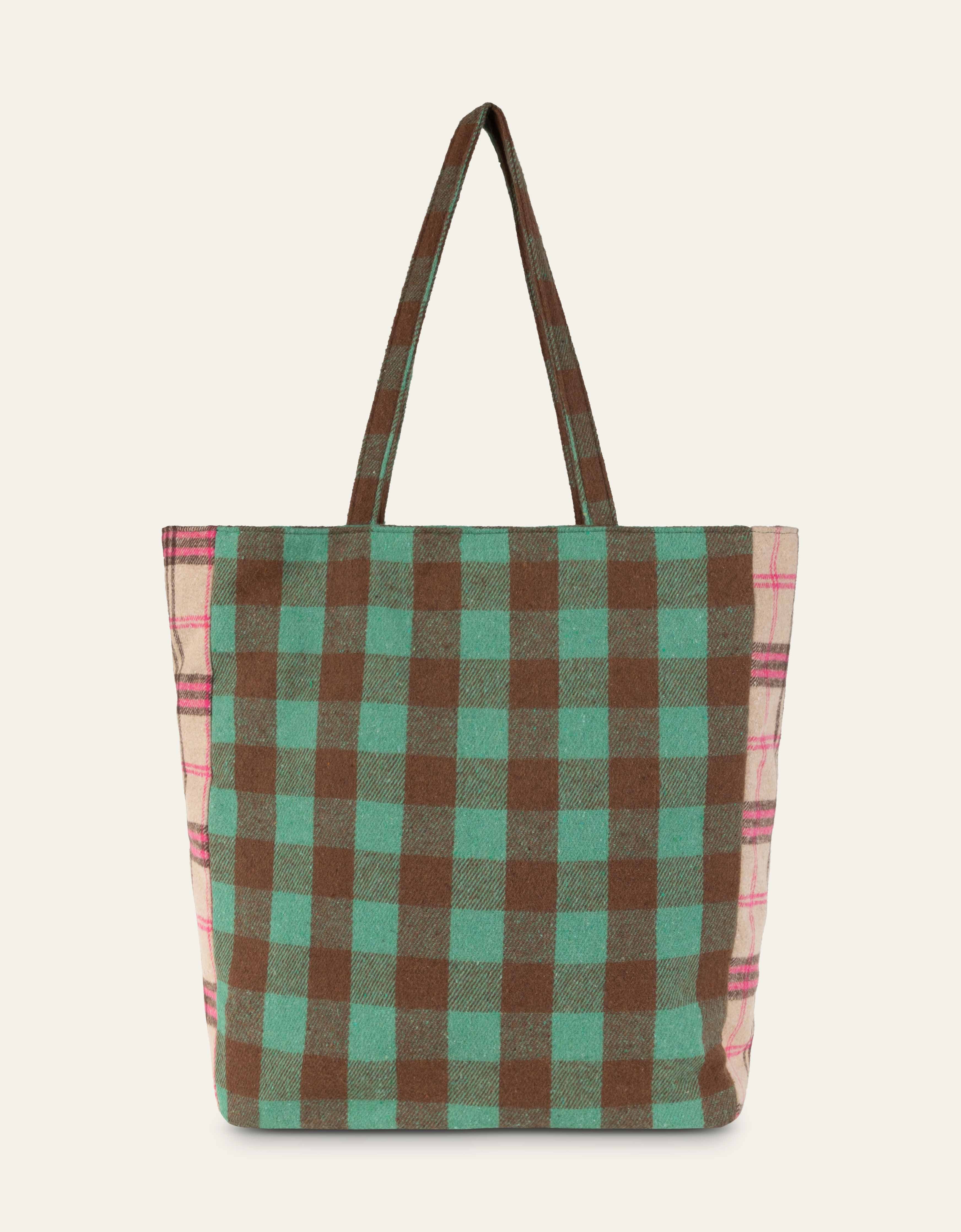 A shopper bag full of diamonds with a storytelling patch depicting the wonderful outdoor life.