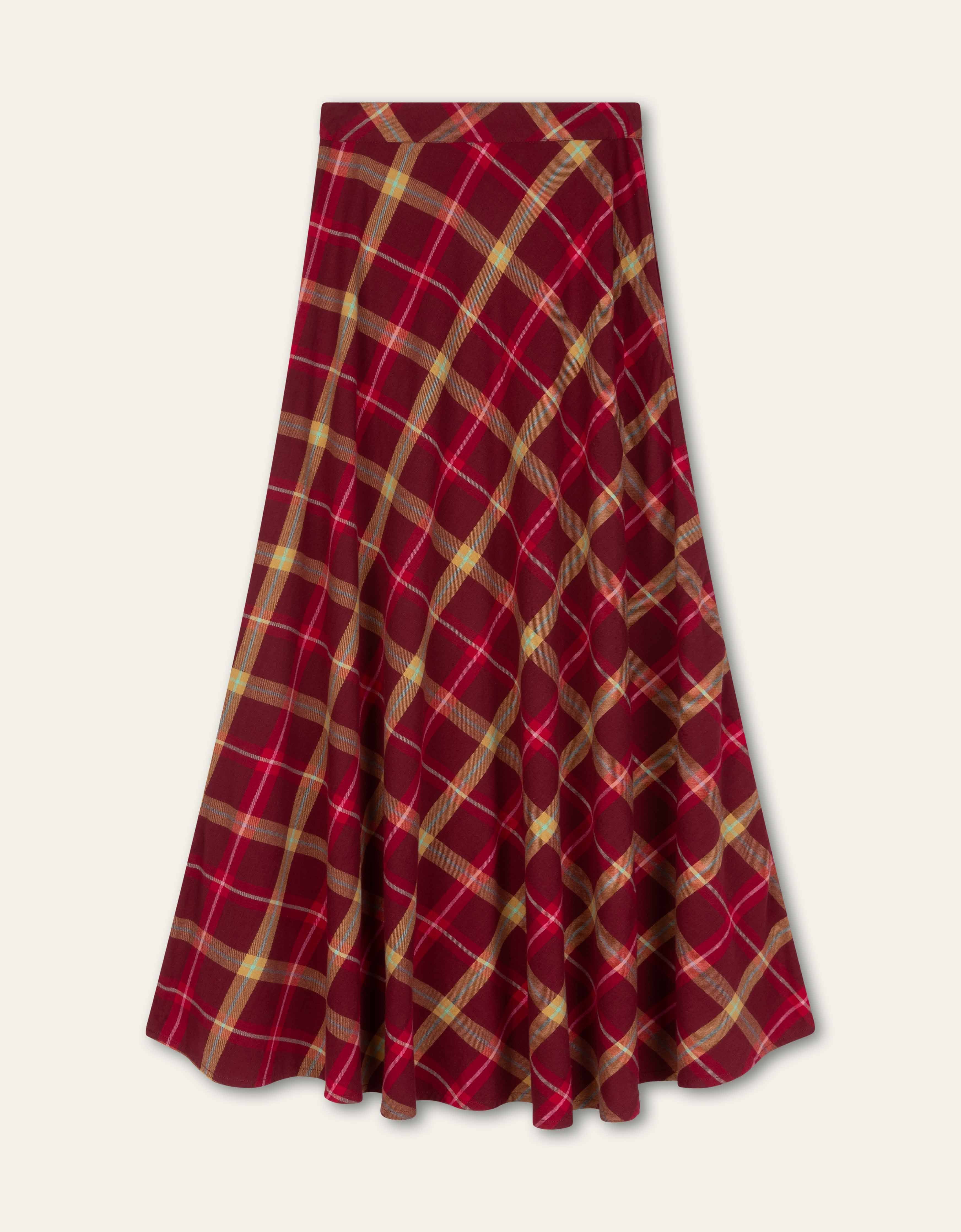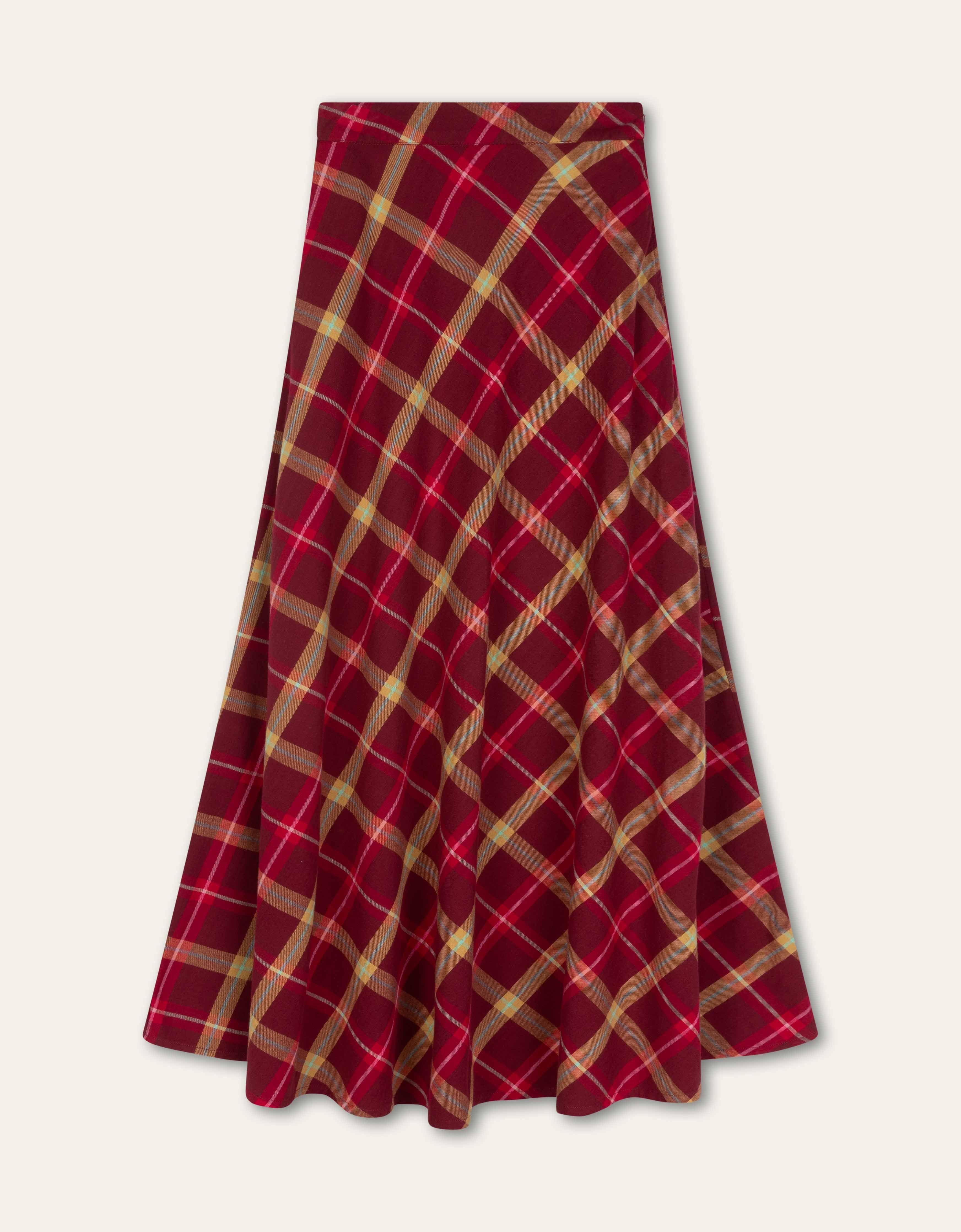 Check these checks! This long skirt has a captivating diagonal check. You close the skirt with a blind side zipper and it has a thin stretchy waistband.