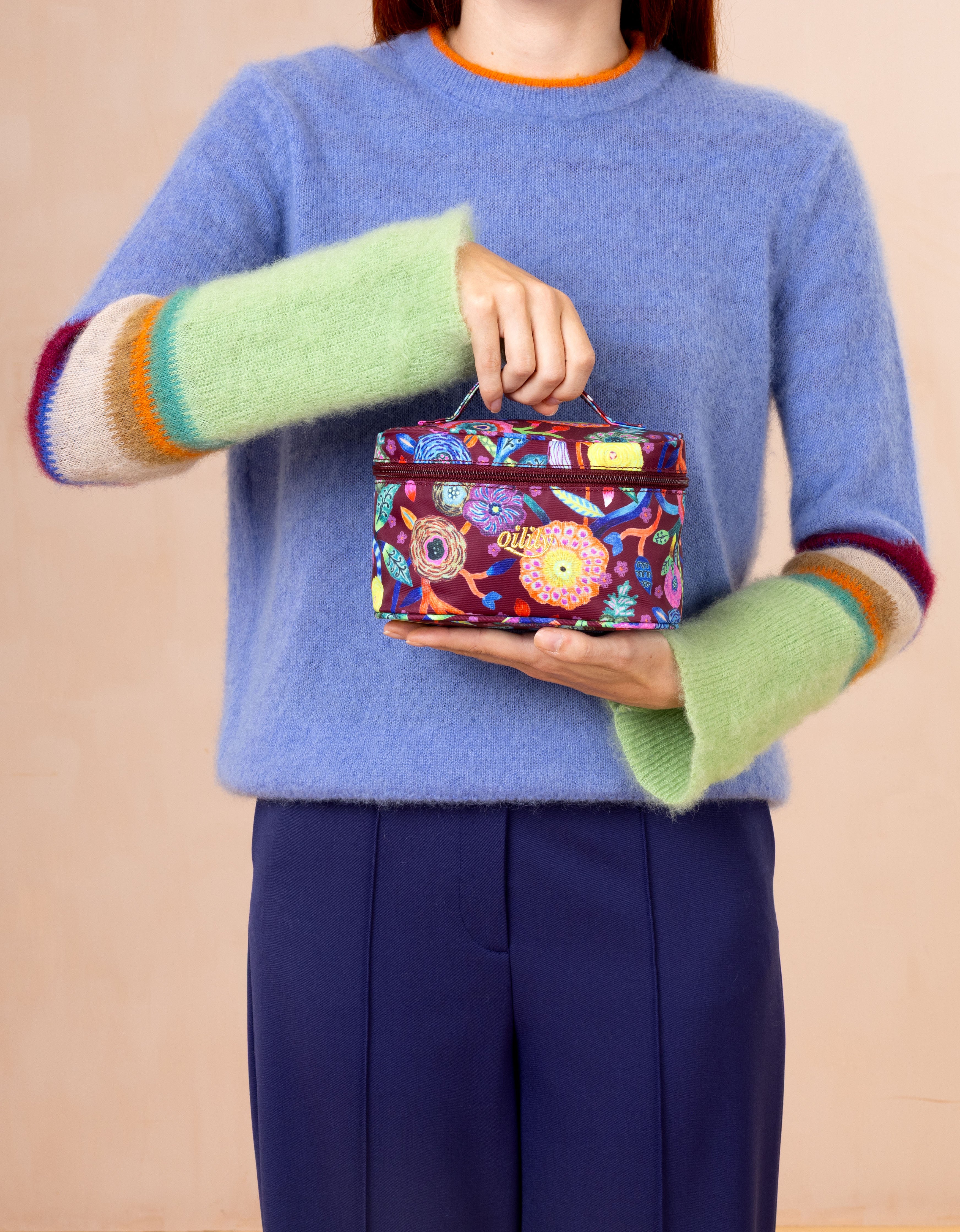 - Main compartment with zip opens wide and contains a pocket with Velcro fastening