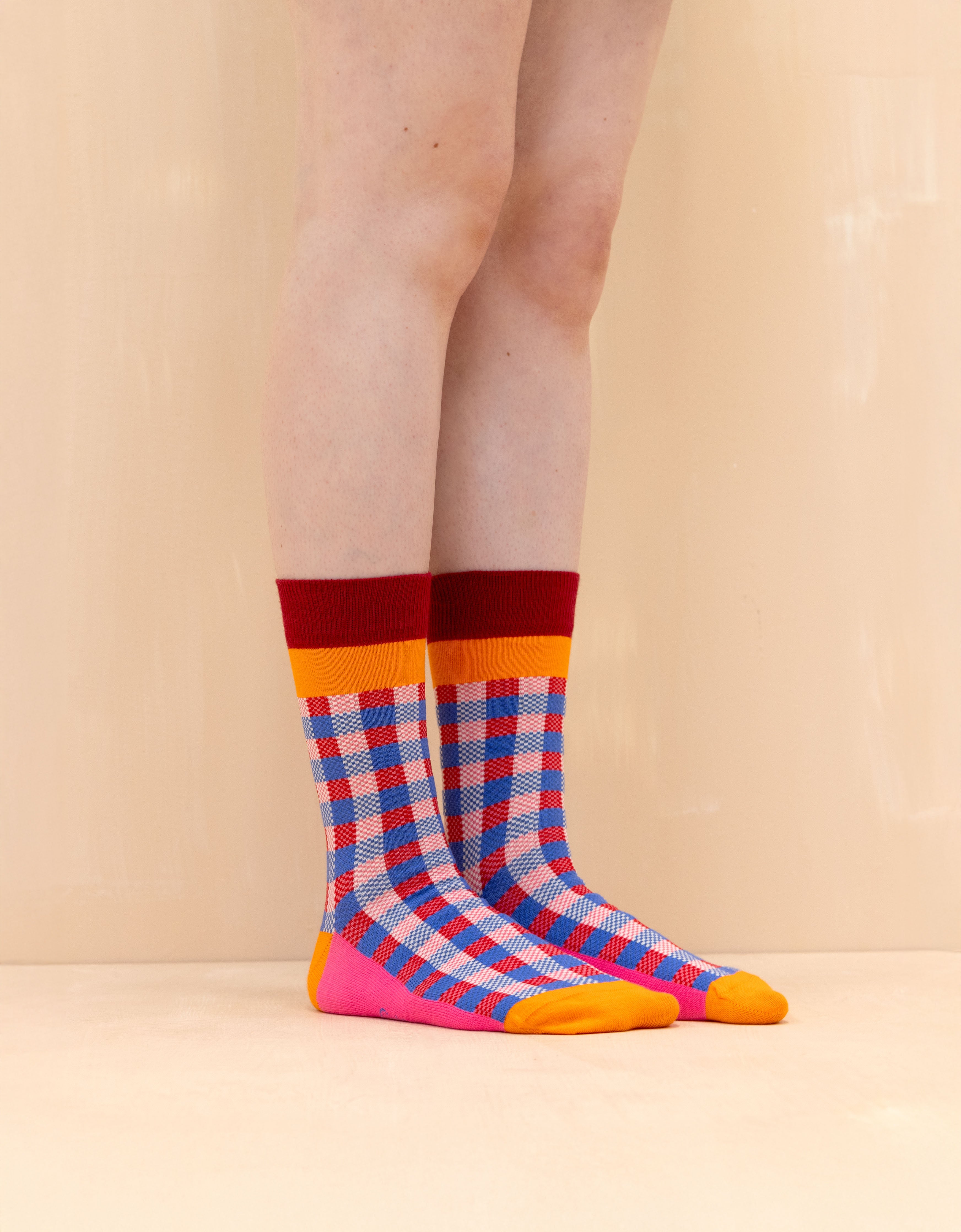 Lovely socks to warm your feet in cosy colours with checks and colourblocking.