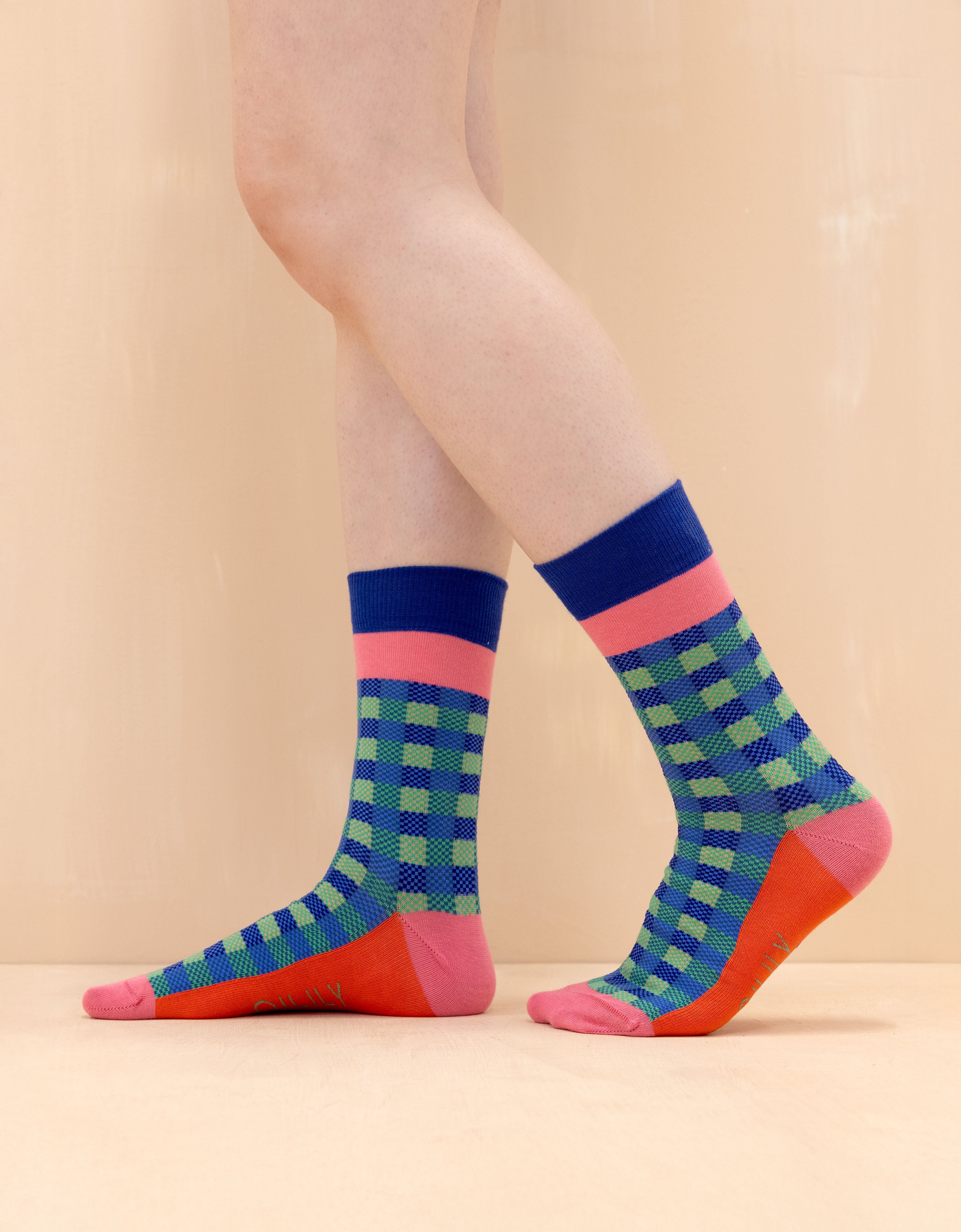 Lovely socks to warm your feet in cosy colours with checks and colourblocking.