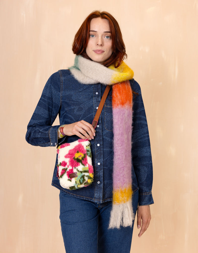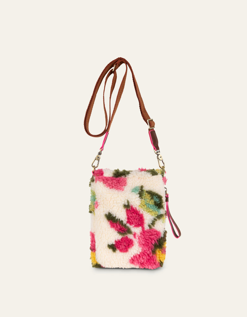 A fresh and colourful cross body bag with Carnation print. The bag is lined with recycled polyester and has topstitched seams in the flap, giving it an 'airy' effect.