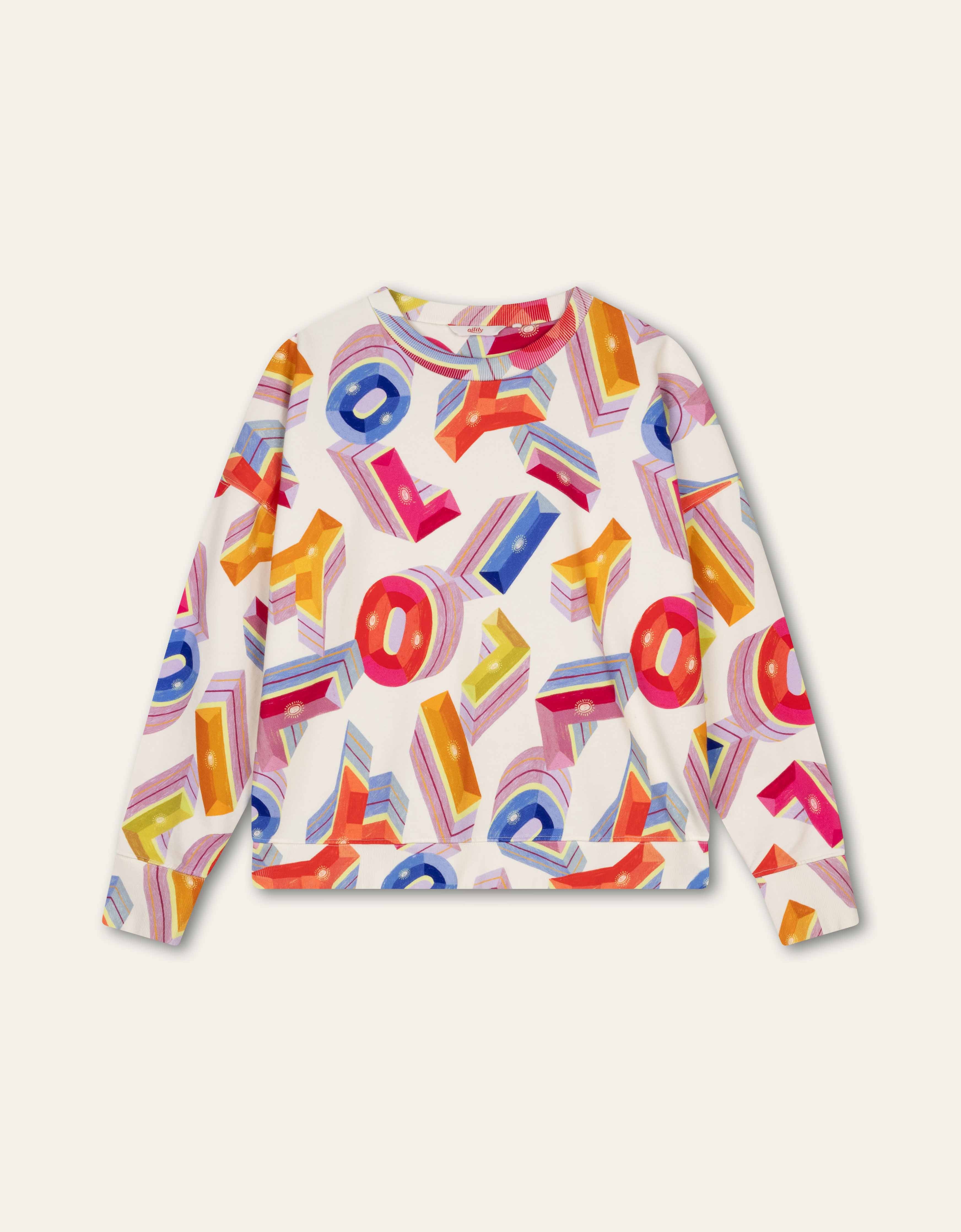 Sweater with hand-drawn letters inspired by Indian fruit trucks.