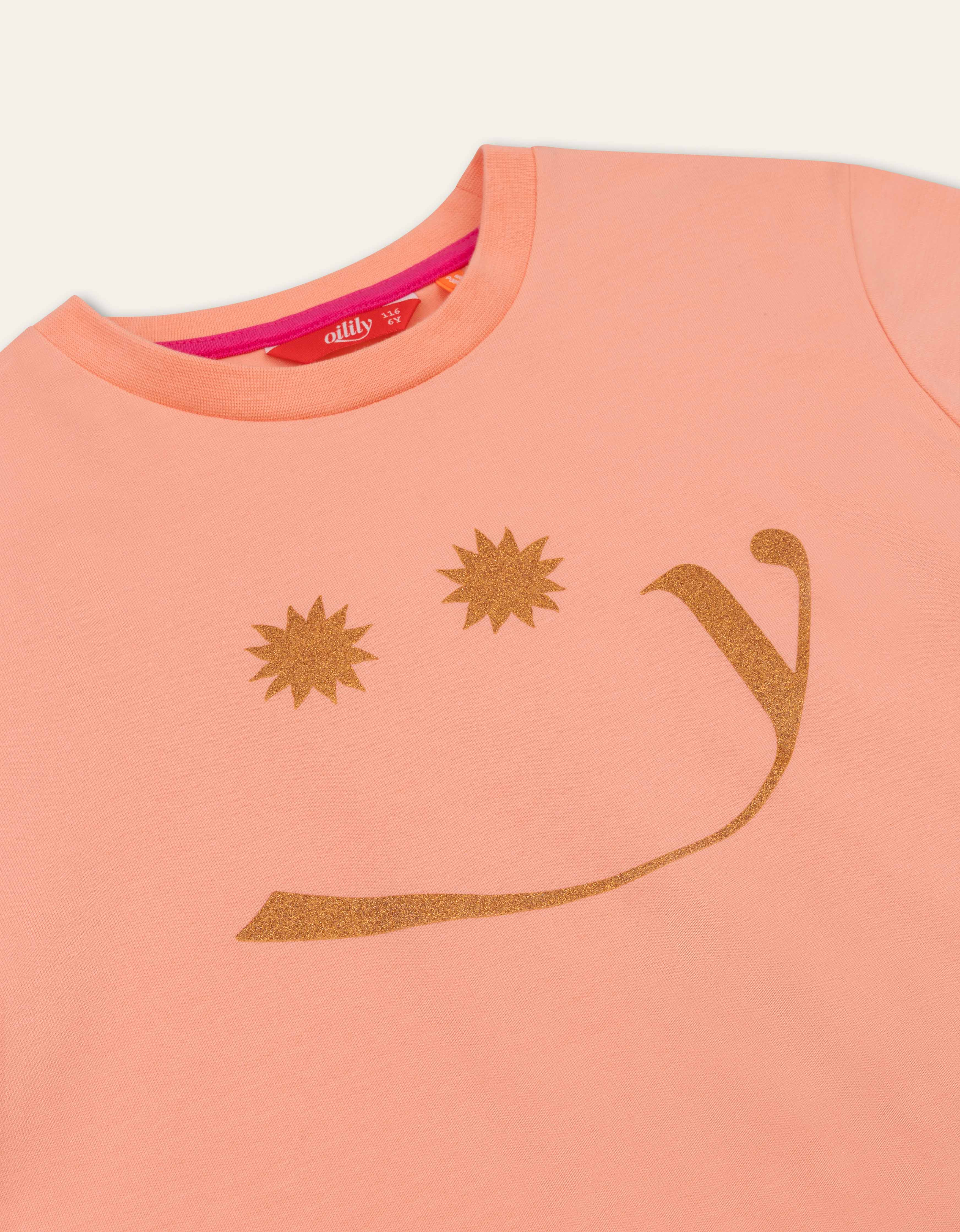 Our famous Oilily smiley face shines on this T-shirt. With eyes like suns, this basic shirt gets a cheerful twist.