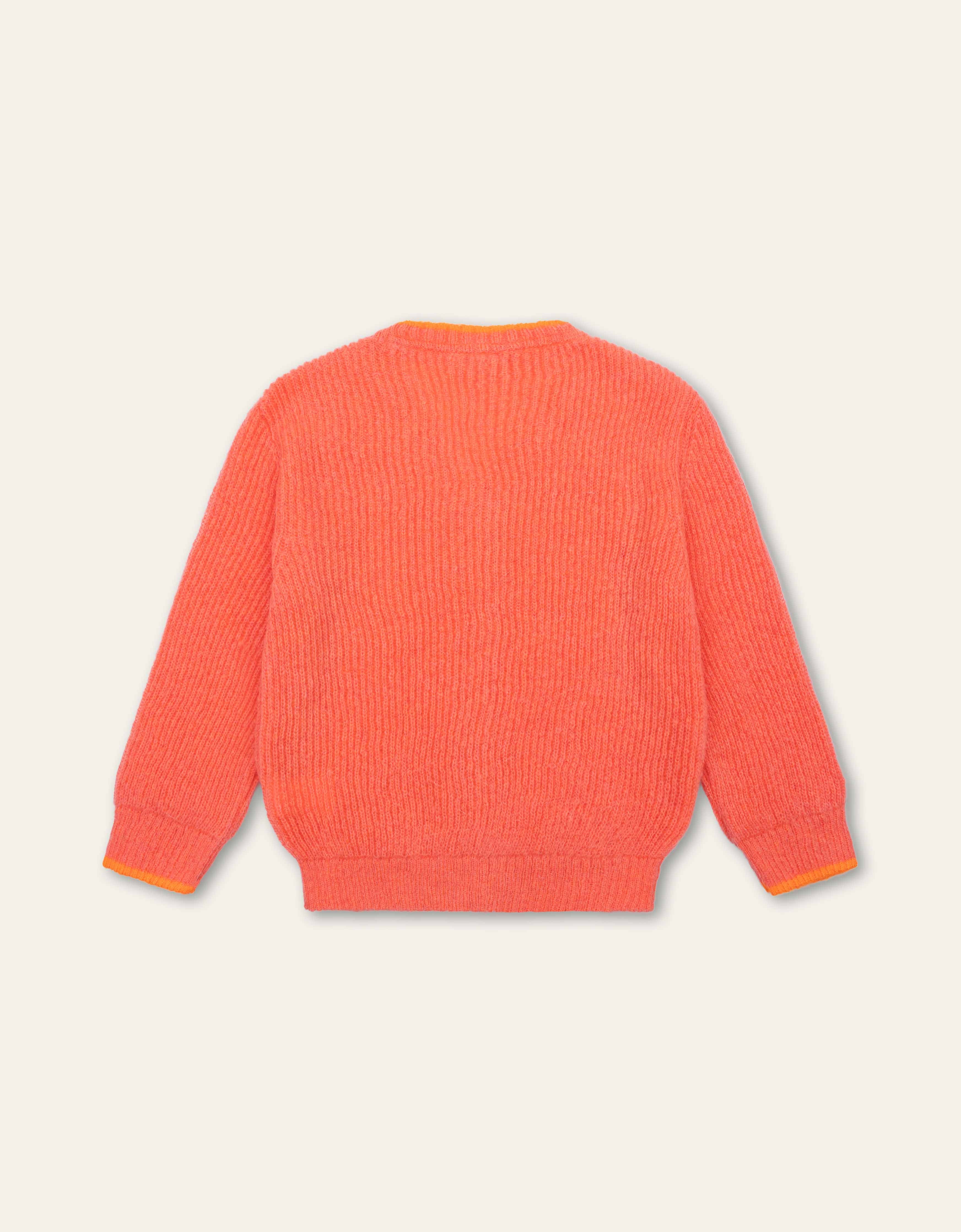 Mohair cardigan in vibrant colours, with a cheerful trim along the hem. Non-itchy, soft and with a beautiful V-neck.