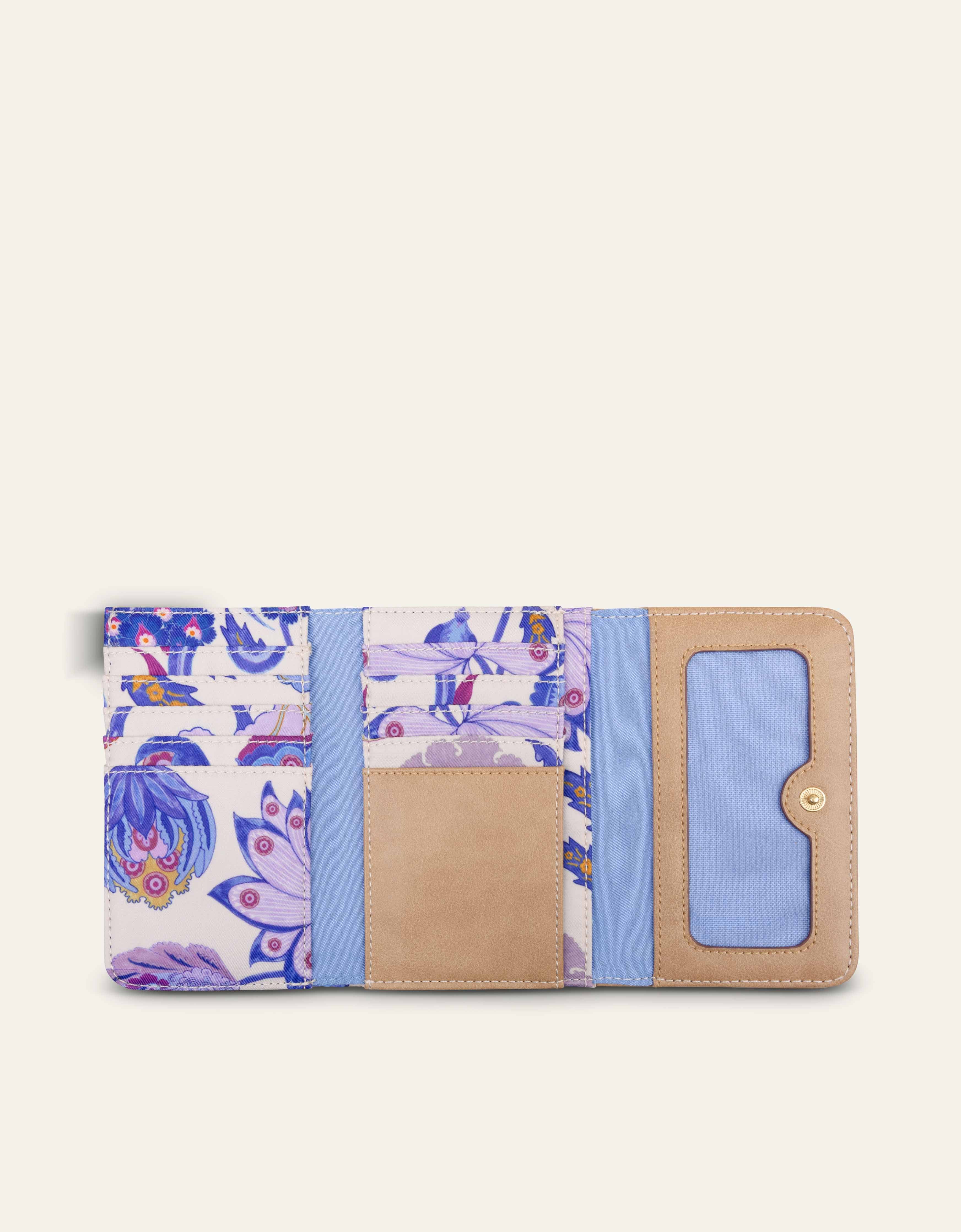 - When opened: 2 compartments for banknotes, 4 slip pockets, 10 slip pockets for credit cards and a mesh pocket