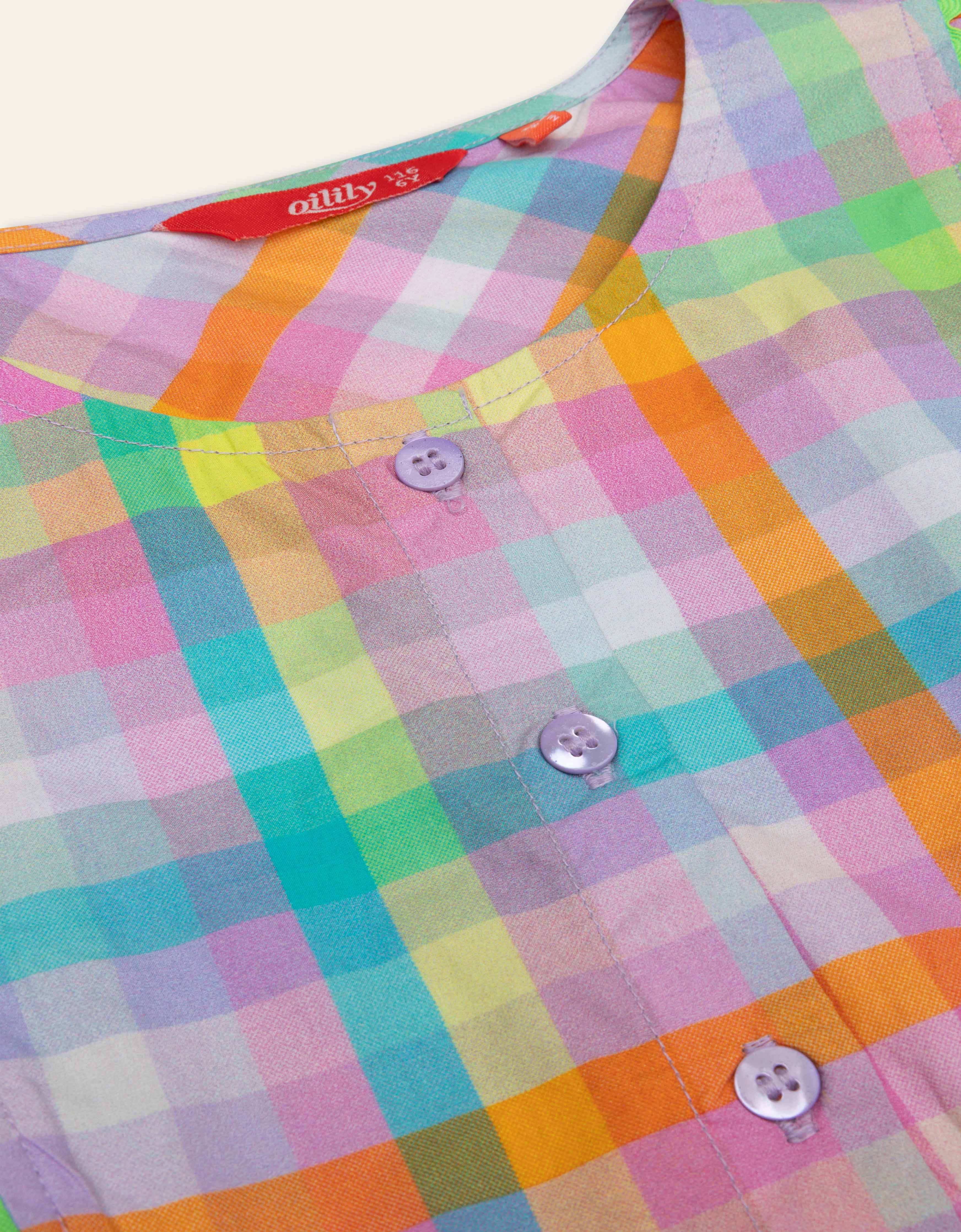 Print Candy Check is a check in bright and sweet colours. It makes this sleeveless blouse with ruffles and scalloped details a real eyecatcher.