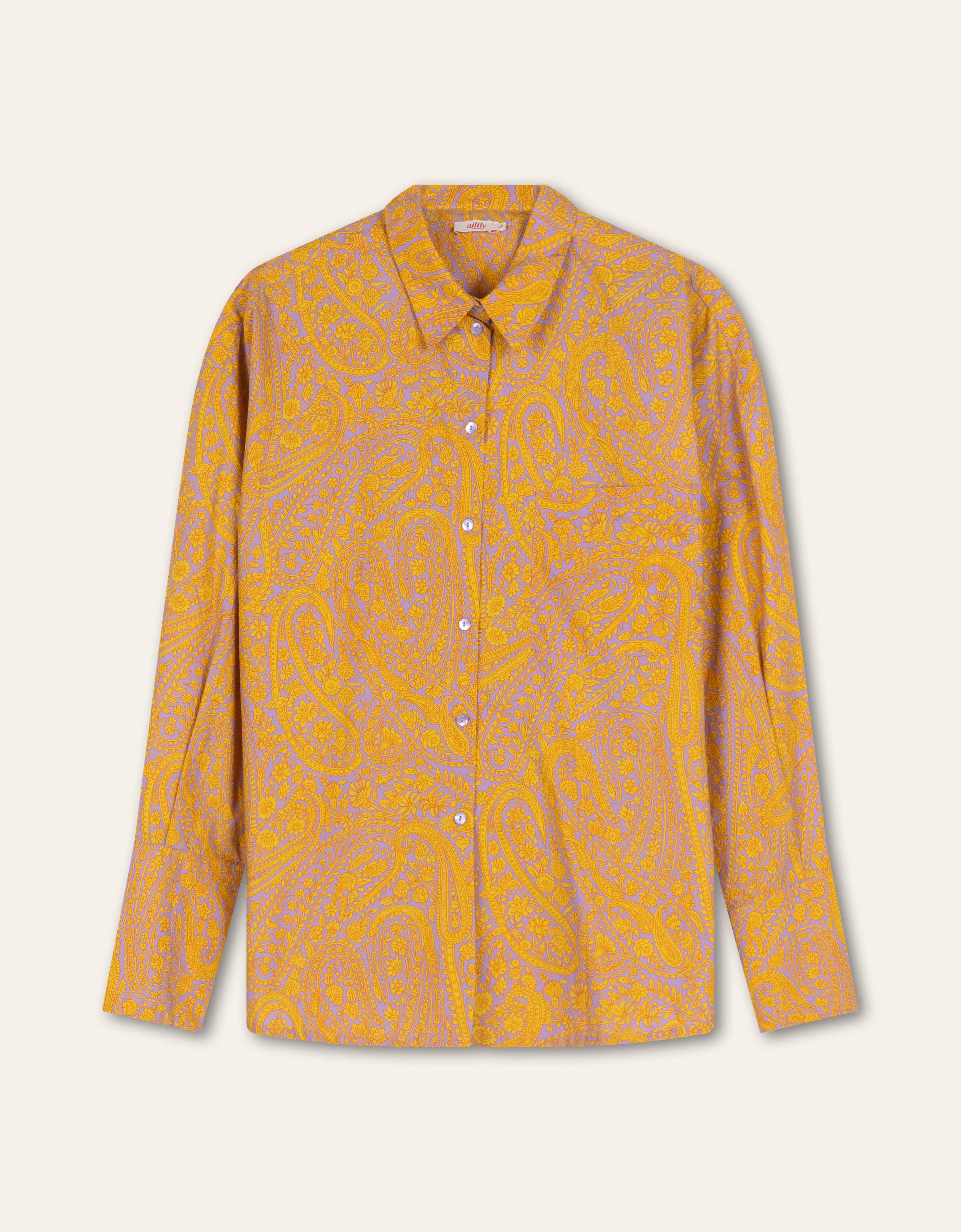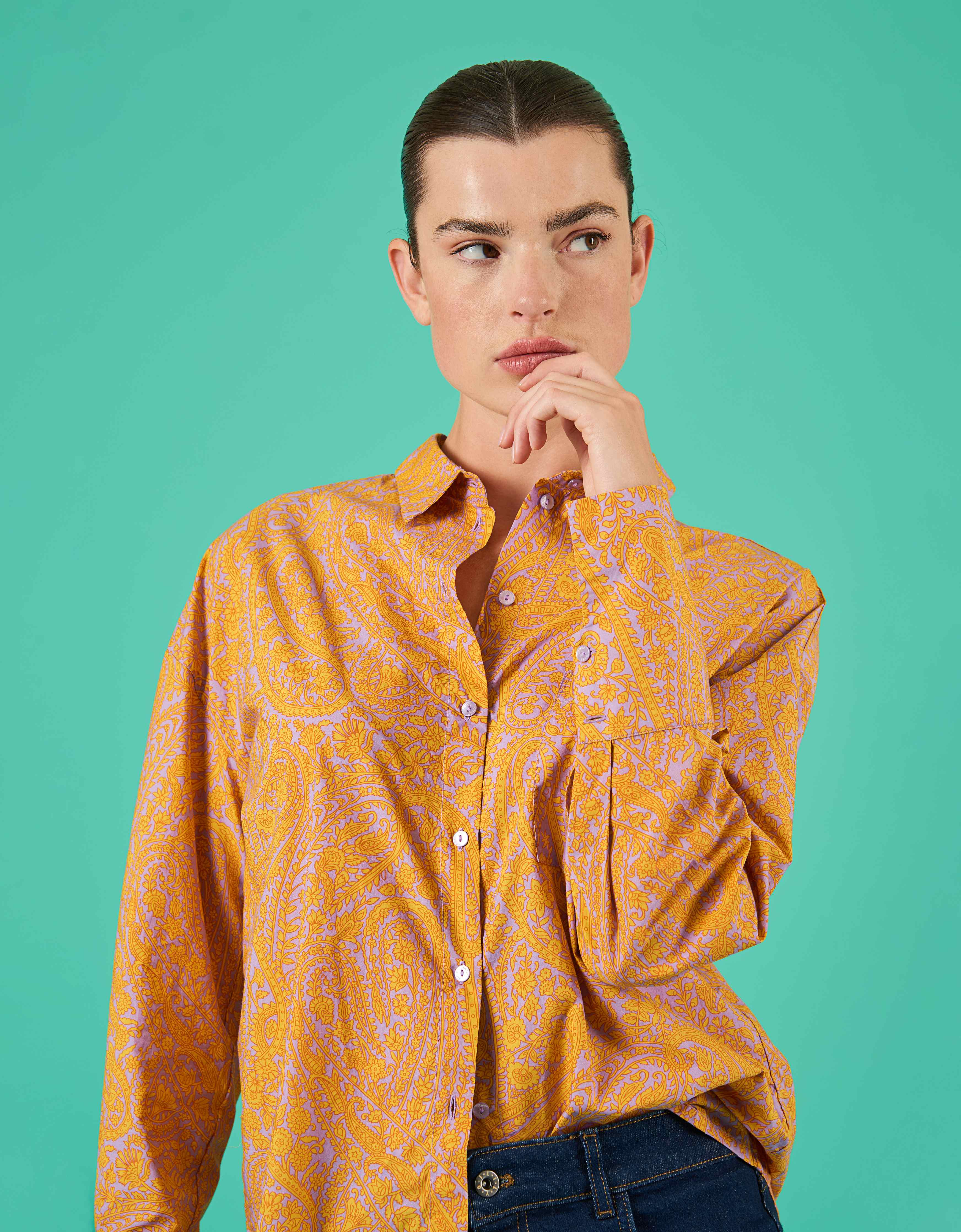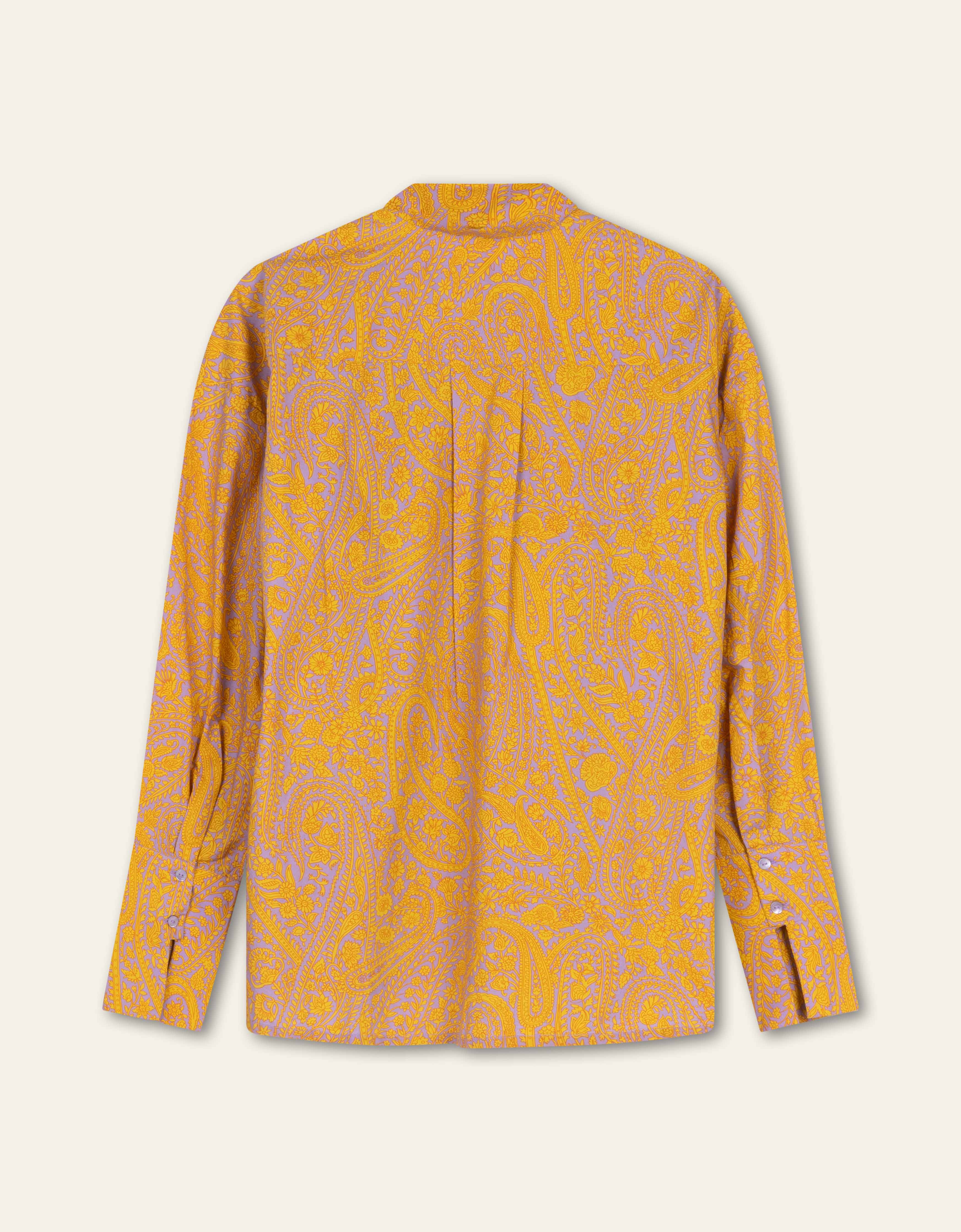 Pretty paisley peaks on this blouse with small flowers that have hidden smileys. The elegant, long cuffs with small splits make it easy to play with the length of your sleeves.