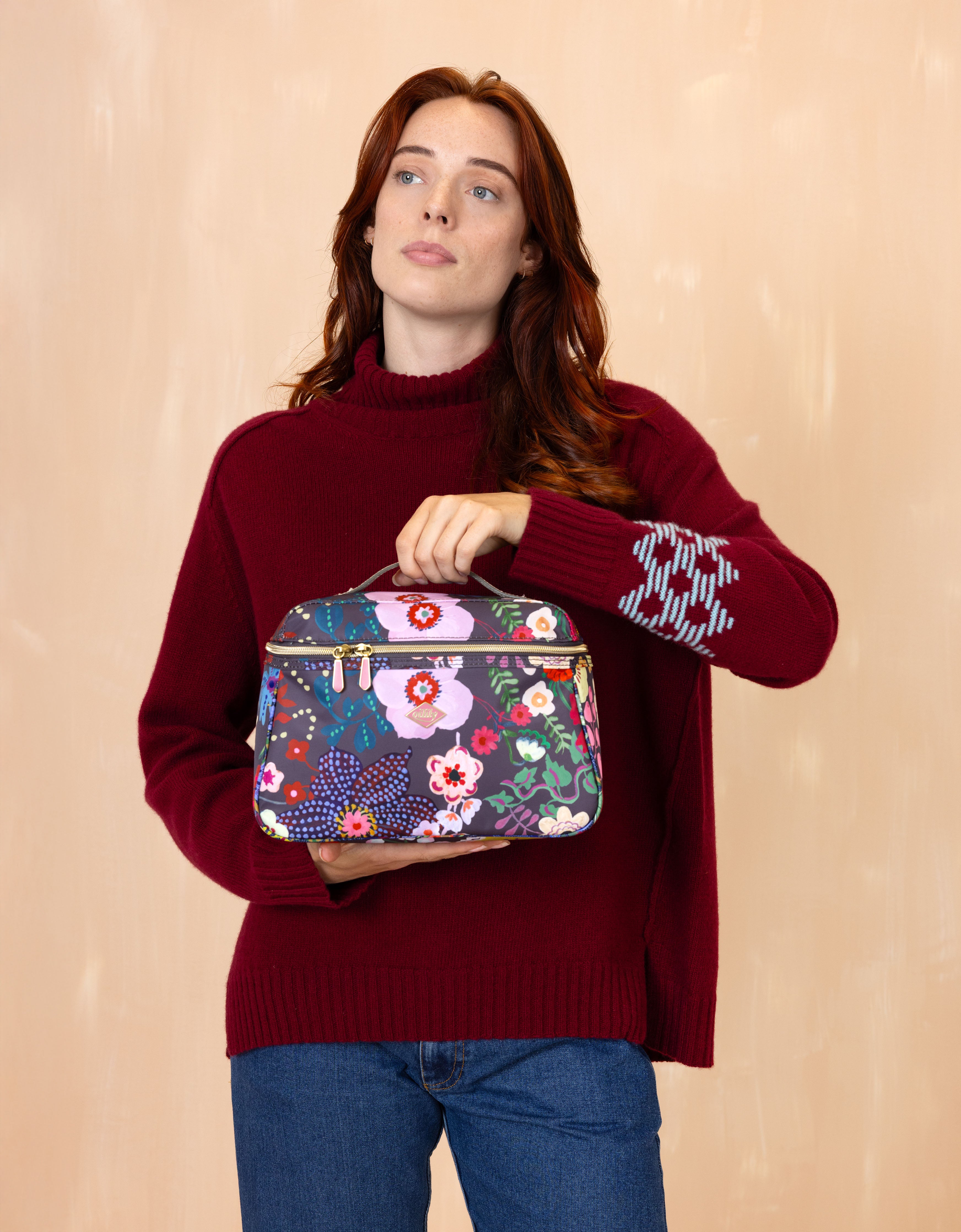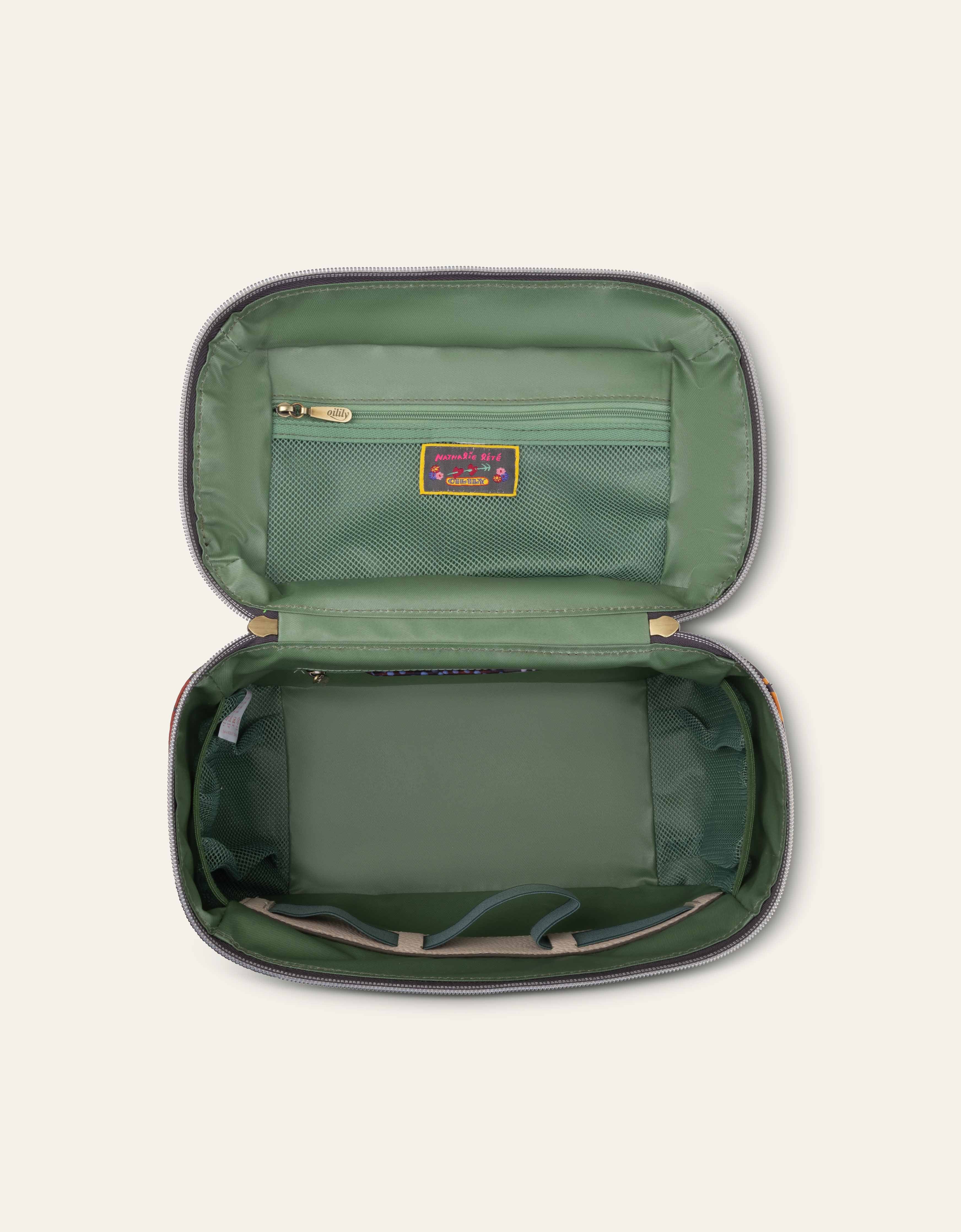 The Cocos Beauty Case in Tide Spirits print is spacious, well-organised and designed to carry all your beauty essentials in style. The print was designed by artist Nathalie Lété, known for her colourful and dreamy style. The sturdy handle on top makes it easy to carry, while the zipped main compartment is cleverly organised so that everything stays neatly in place.