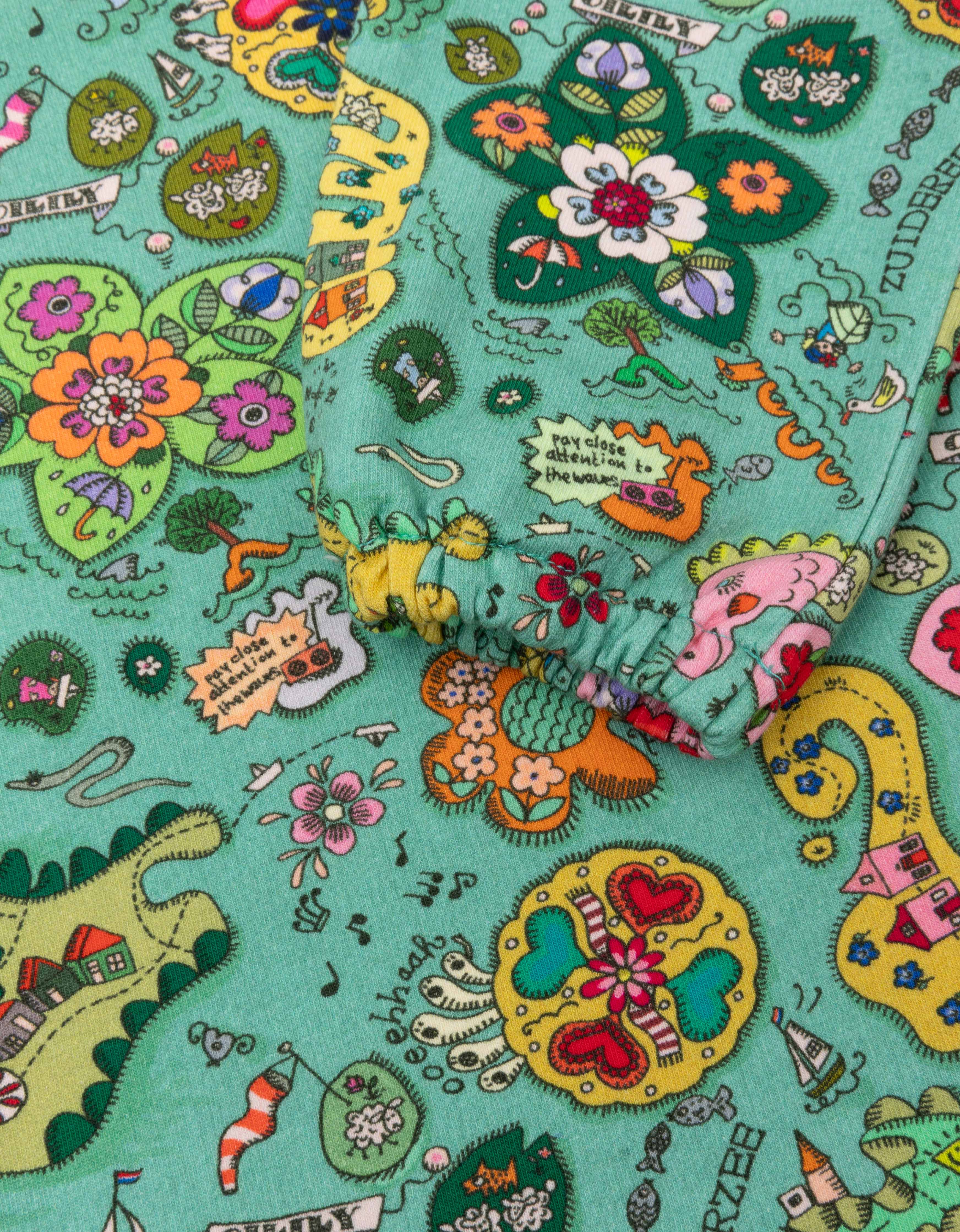 There's so much to discover on this cotton dress with our print Schokland Islands. You'll find flowers, sheep, boats and even the monster Nessie from Scotland on this longgone island.