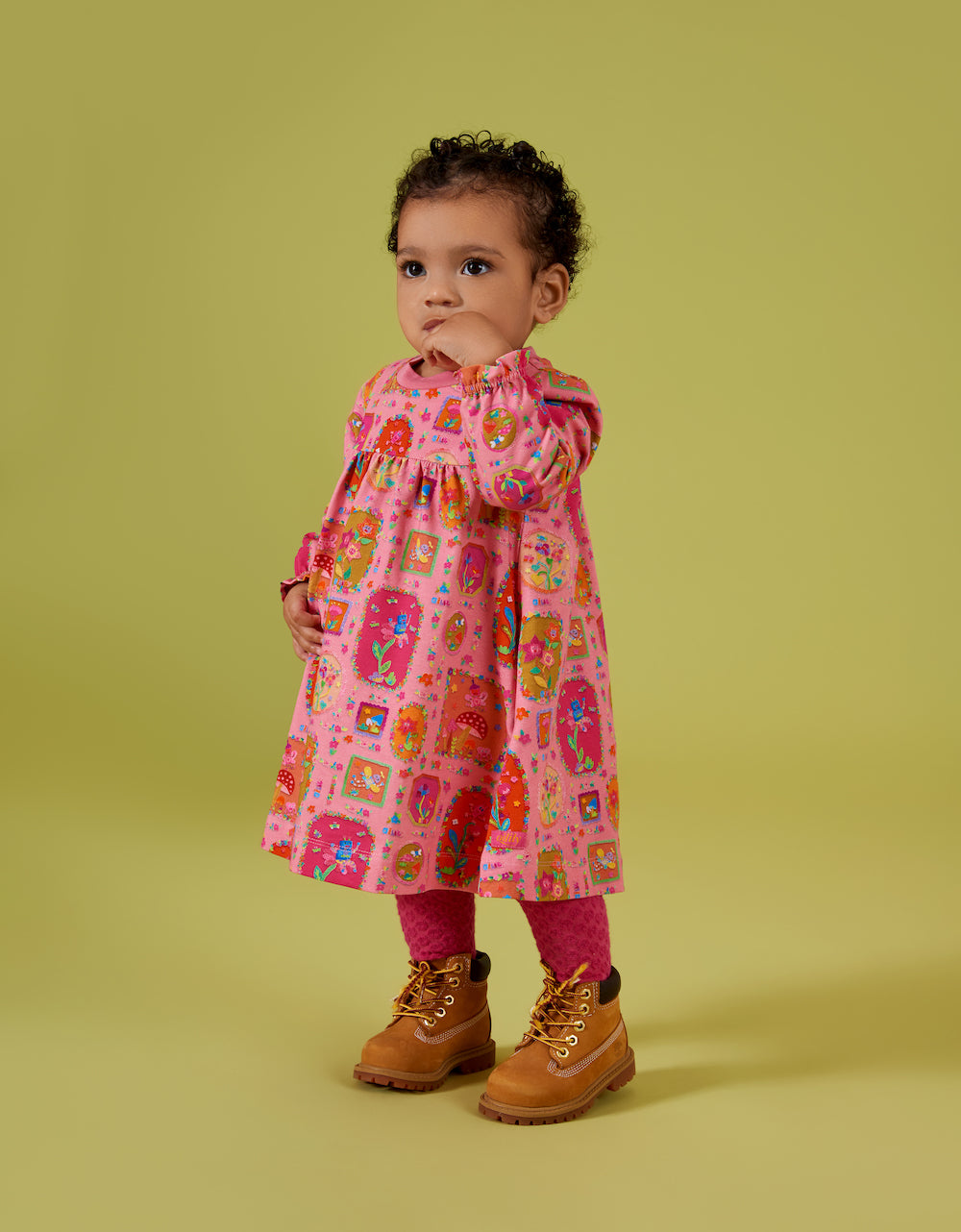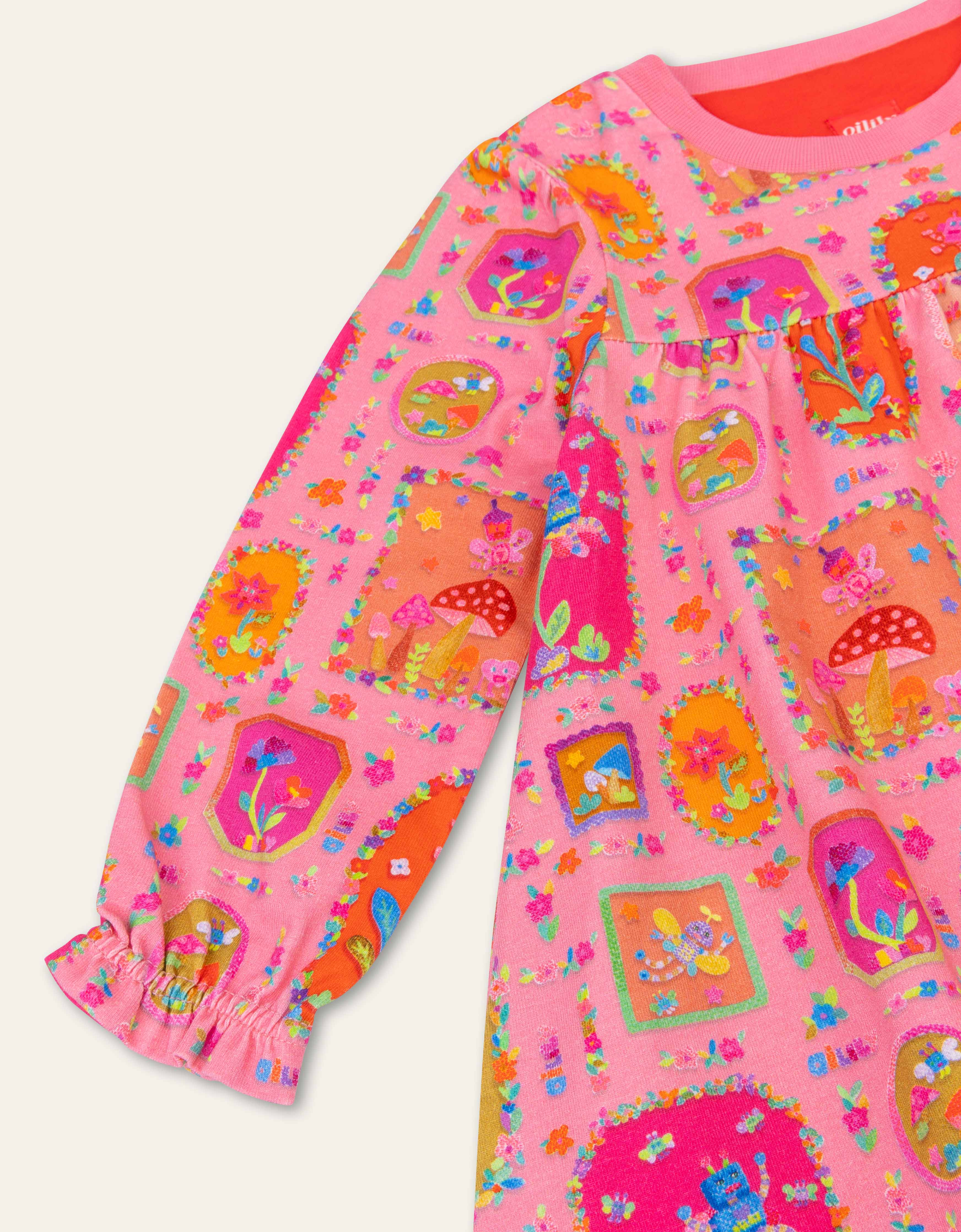 Fairy Robots is a print that tells a futuristic fairytale of nature and robots, with robotic bees, flowers, mushrooms and butterflies. Discover it all on this cotton dress with pretty shoulder detailing.