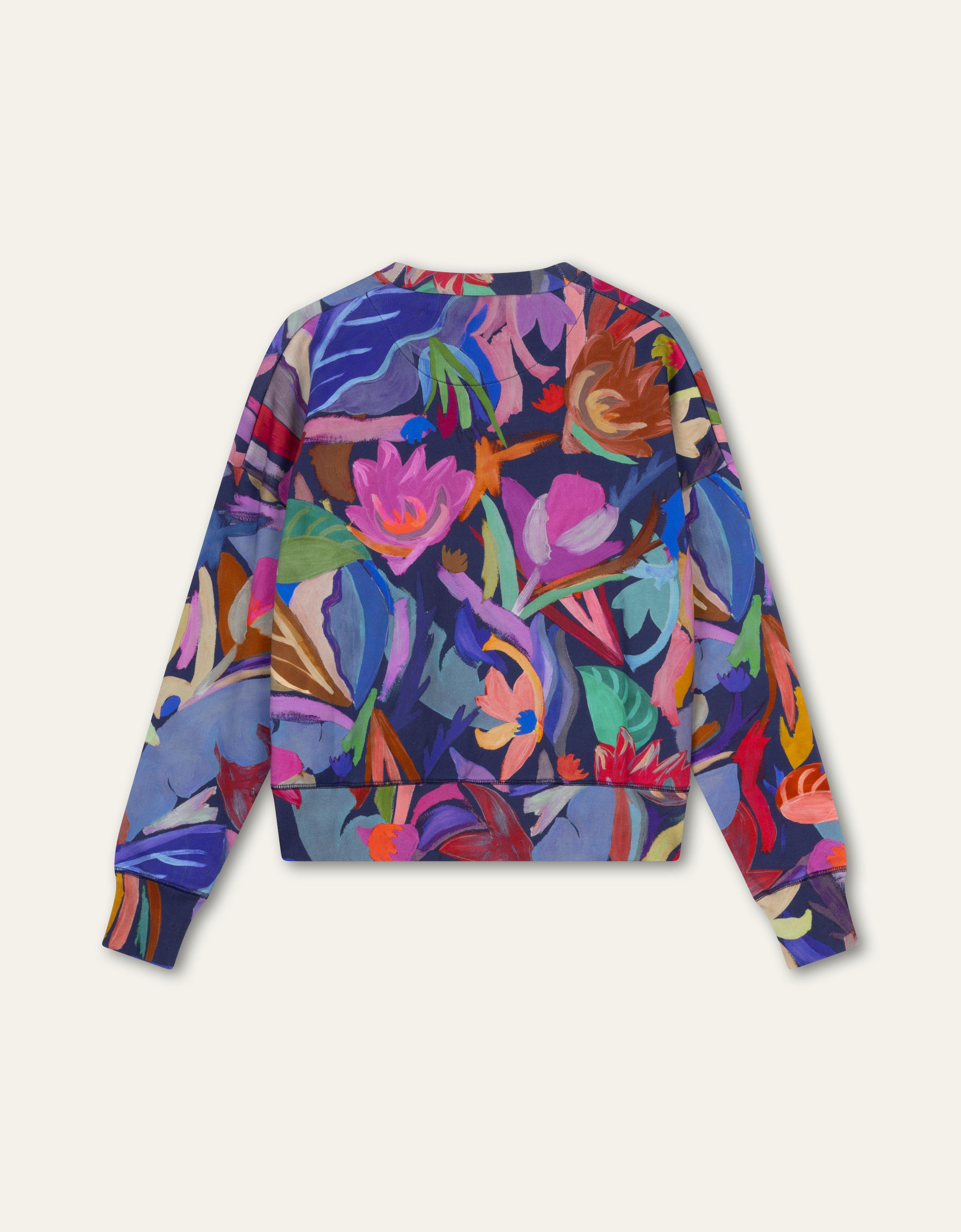 A lovely, roomy, oversized sweater in our favorite Loch Lily pattern. The lush flowers against a dark background give this sweater beautiful depth.