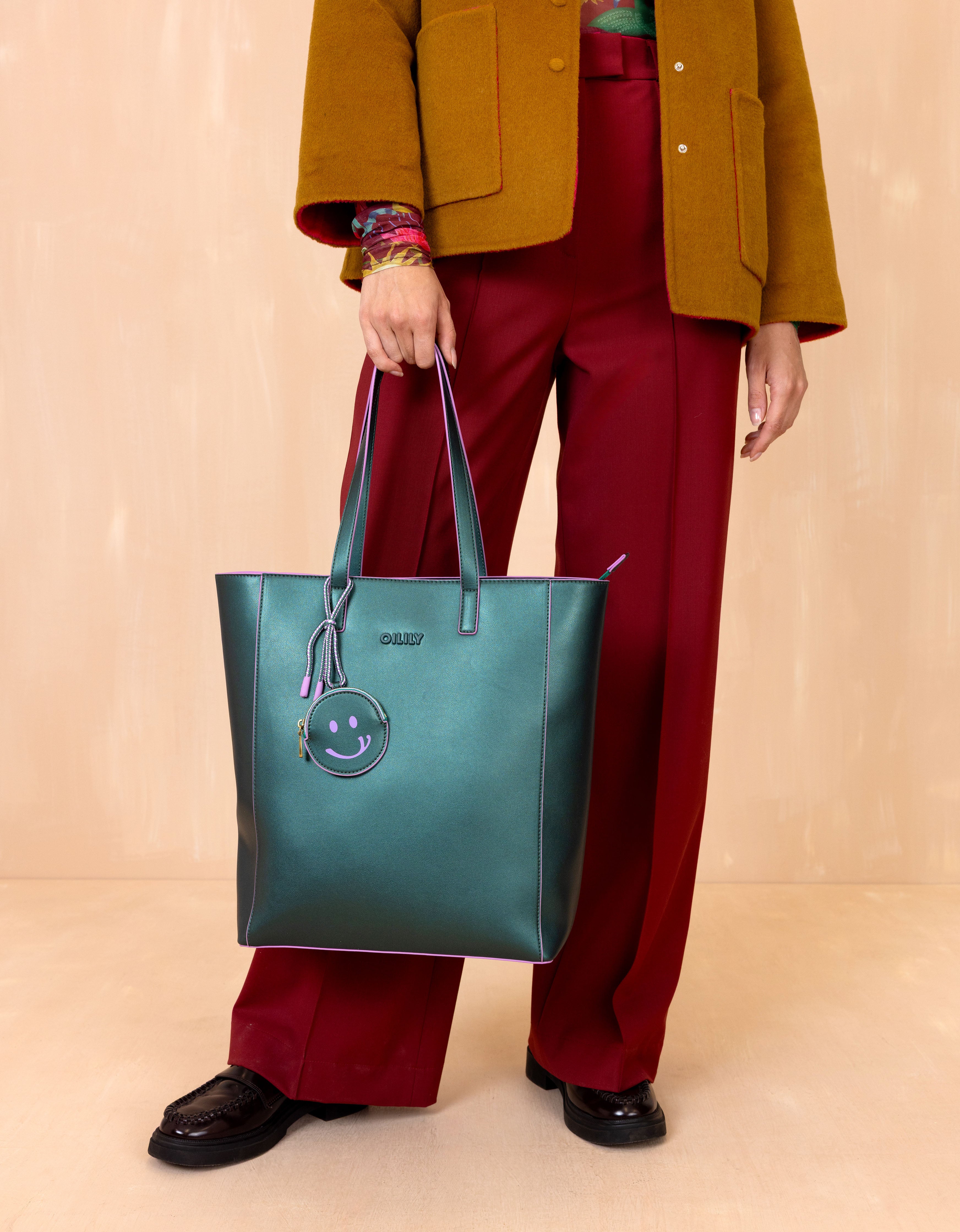 A metallic shopper made of faux leather