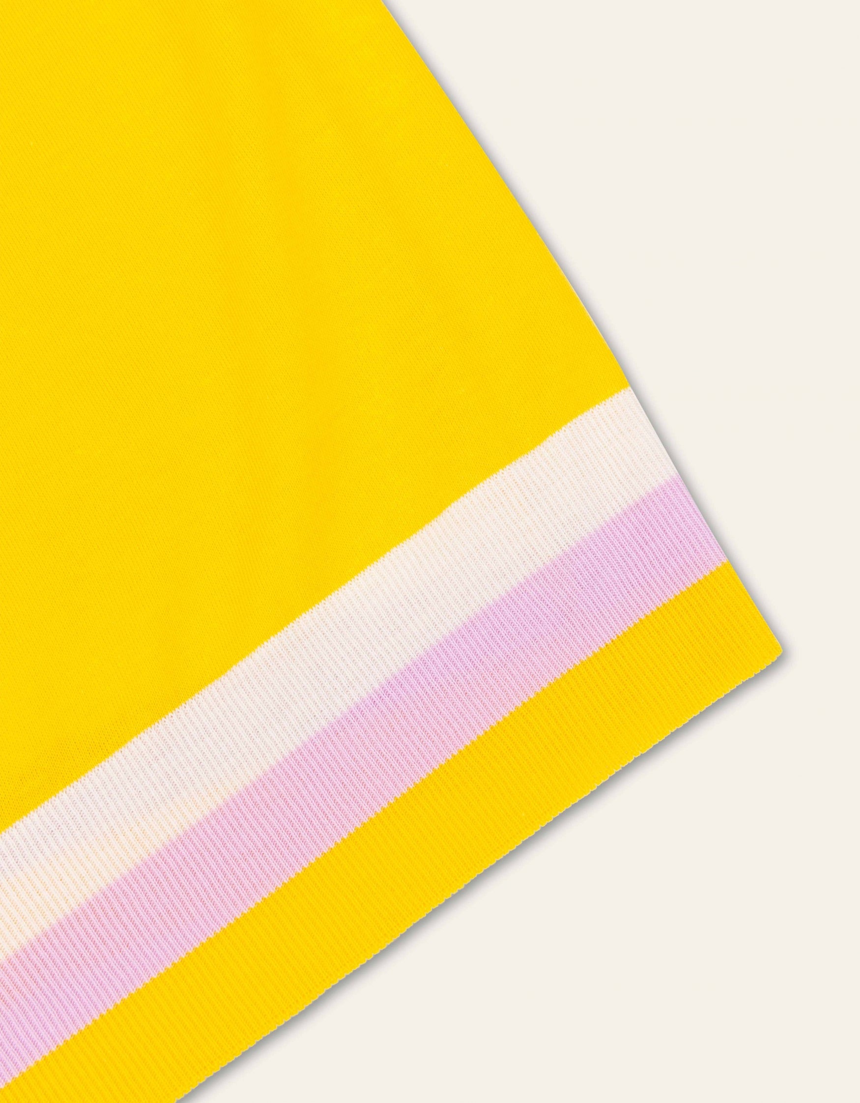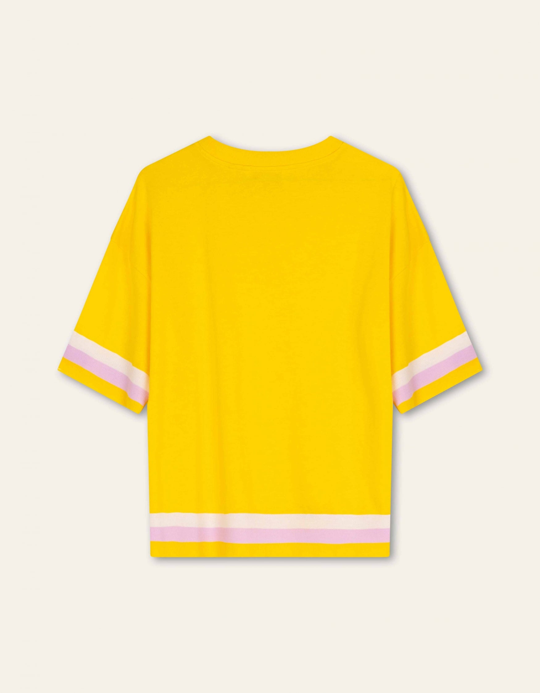 Soft, light and luxurious. This is how this short-sleeved top with rounded neckline feels and looks. At the hem the ribbed striped are knitted along for a deluxe finish. A premium piece for many moments.