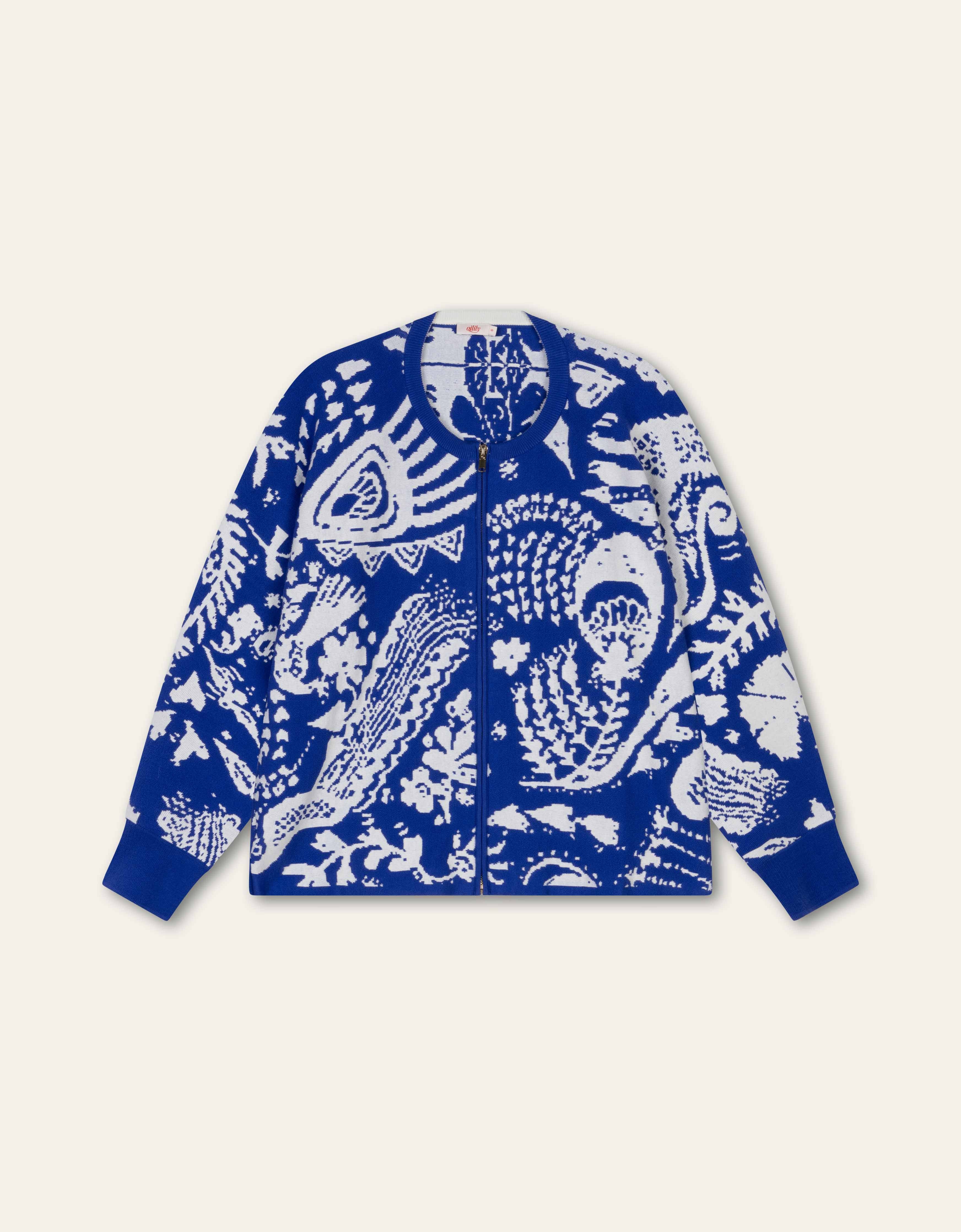 Supercool bomberjack van dubbelzijdige, compacte gebreide stof met subtiel ingebreid reliëf. Het achterpand krijgt extra volume dankzij de vleermuismouwen, die het silhouet speels doen uitlopen. Schuif de mouwen omhoog voor nog meer volumineus effect. Binnenkant gespiegeld voor een verrassend dubbelzijdig design.