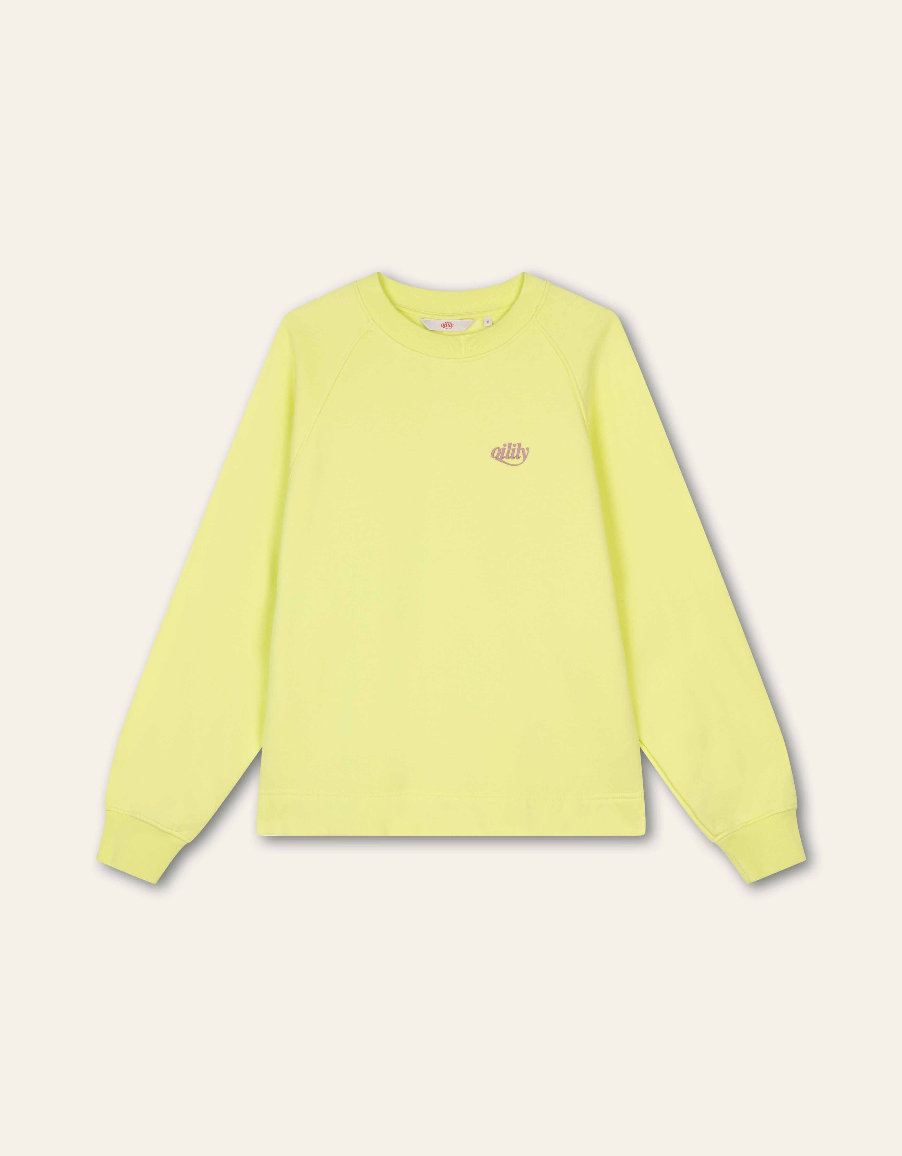 Luchtige zomersweater in lime kleur met vleermuismouwen en een losse pasvorm. Geborduurd Oilily-logo. De naad loopt op de rug in plaats van zijkant en de sweater heeft subtiele zijsplitjes en geen elastiek aan de onderkant voor een natuurlijke, vloeiende look.
