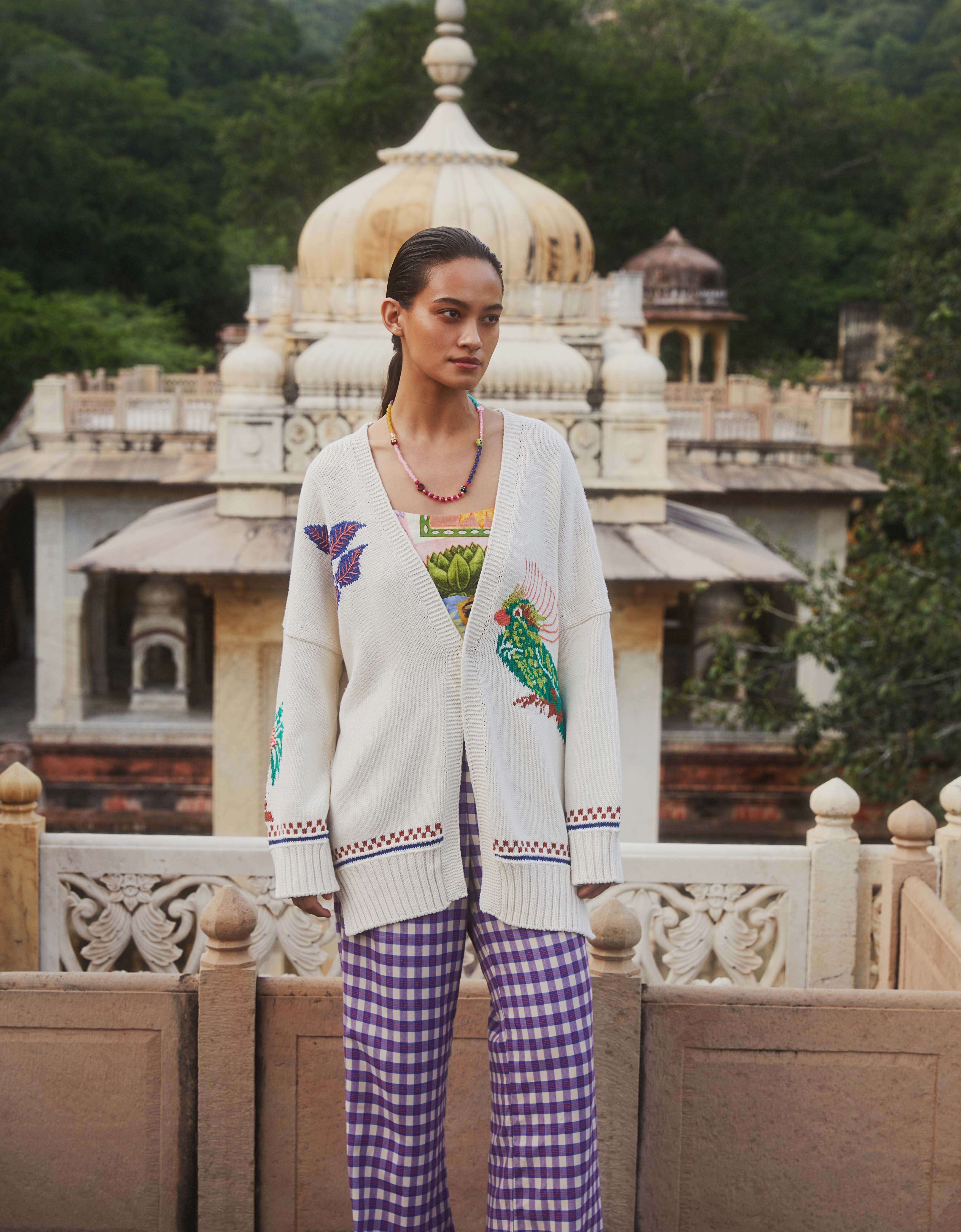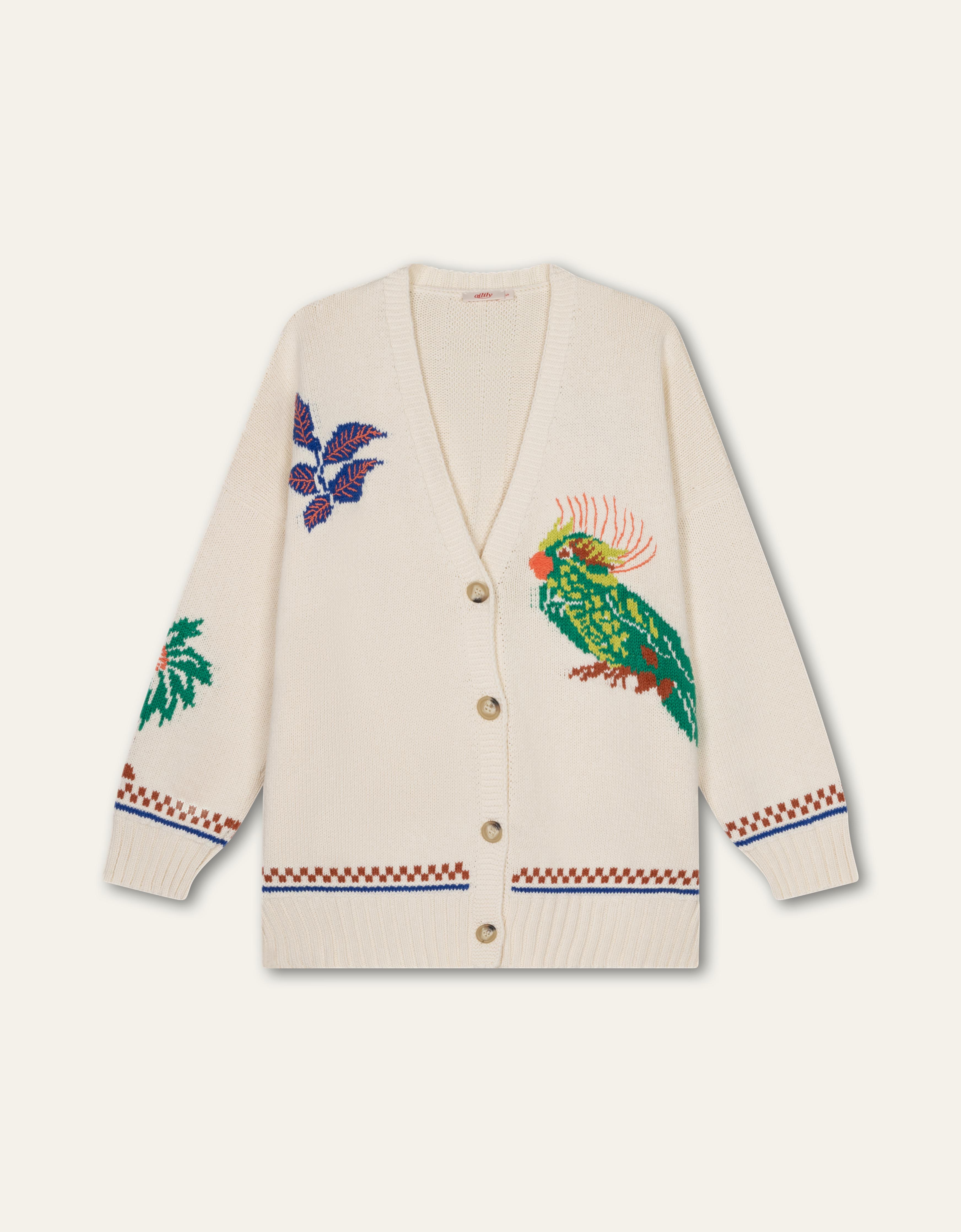 Stijlvol en comfortabel vest, voorzien van kleurrijke, ingebreide India-geïnspireerde elementen, knopen aan de voorkant en een diepe V-hals. Een veelzijdig en duurzamer vest dat makkelijk te combineren is.